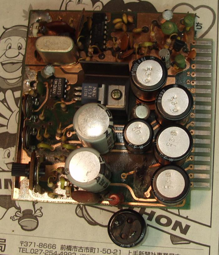 | 3. コンデンサーがショウトして、基盤が焼損している |