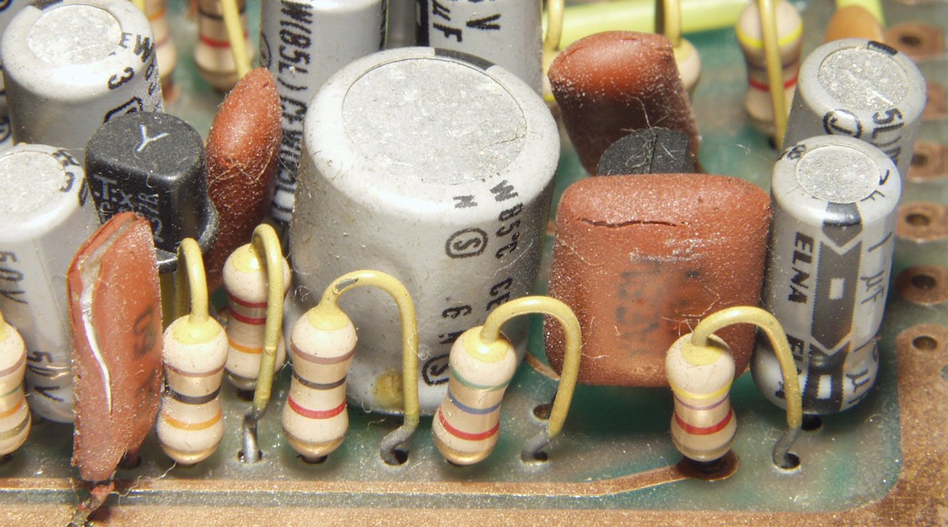 | F−1A. 経年変化でヒビの入った、フイルムコンデンサー その1 |