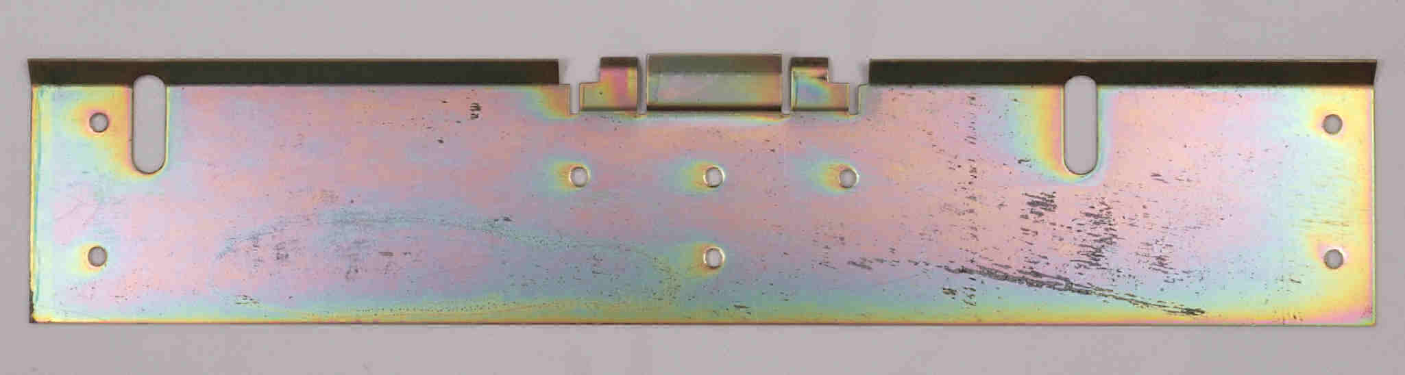 P2. 修理後 裏パネル。 F型アンテナ端子・3Pインレット取付穴加工、SP端子当板取付。この後、RCA端子当板取付。