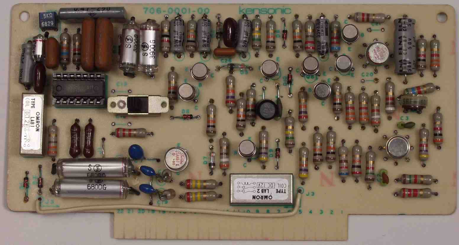 | C62. 修理後 L出力AMP基板 電解コンデンサー4個、フイルムコンデンサー4個、TR(トランジスタ−)9個交換 |