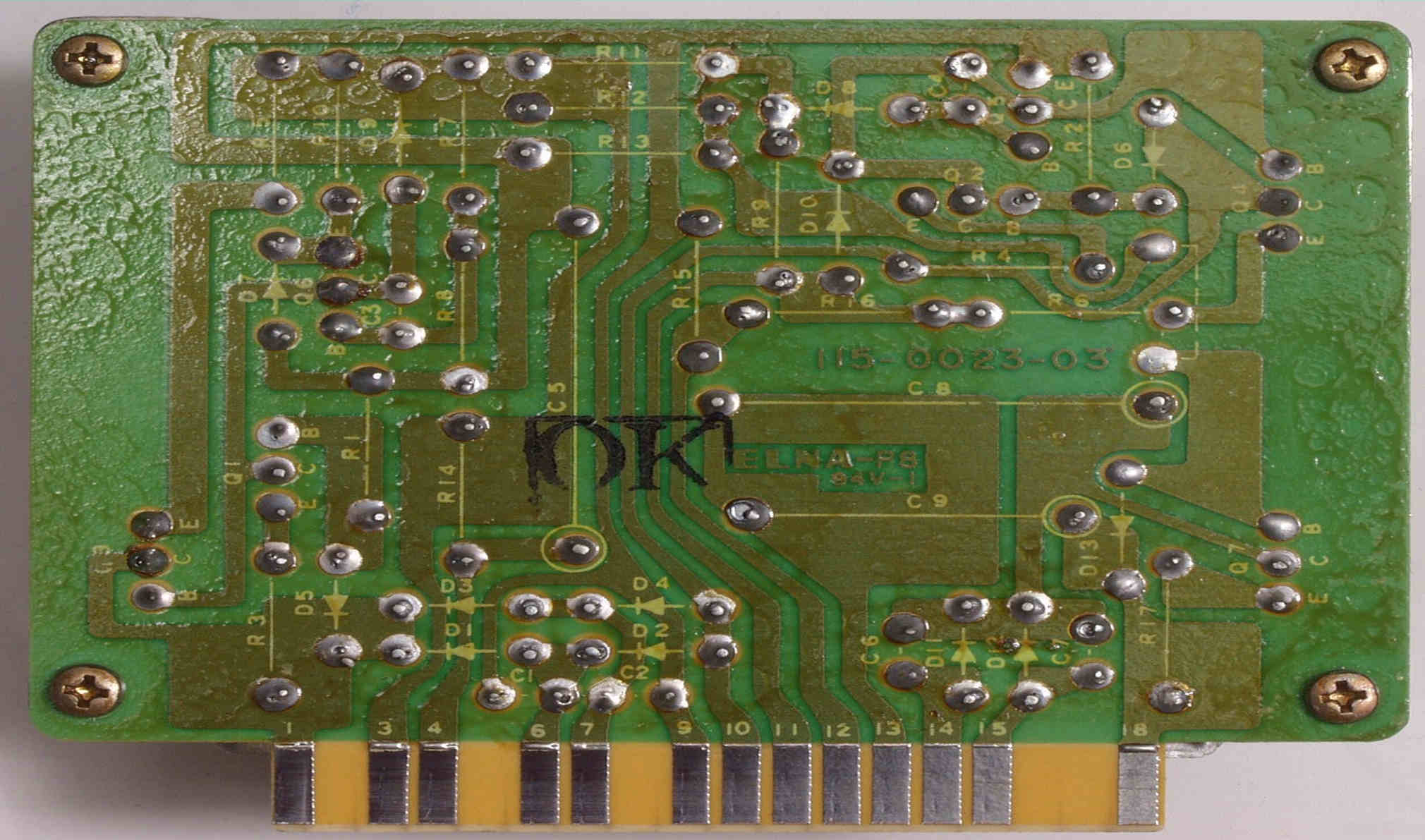 | C14. 修理(ハンダ補正)後 フロント・エンド=RF、MIX、IF・OUT基板 裏 |