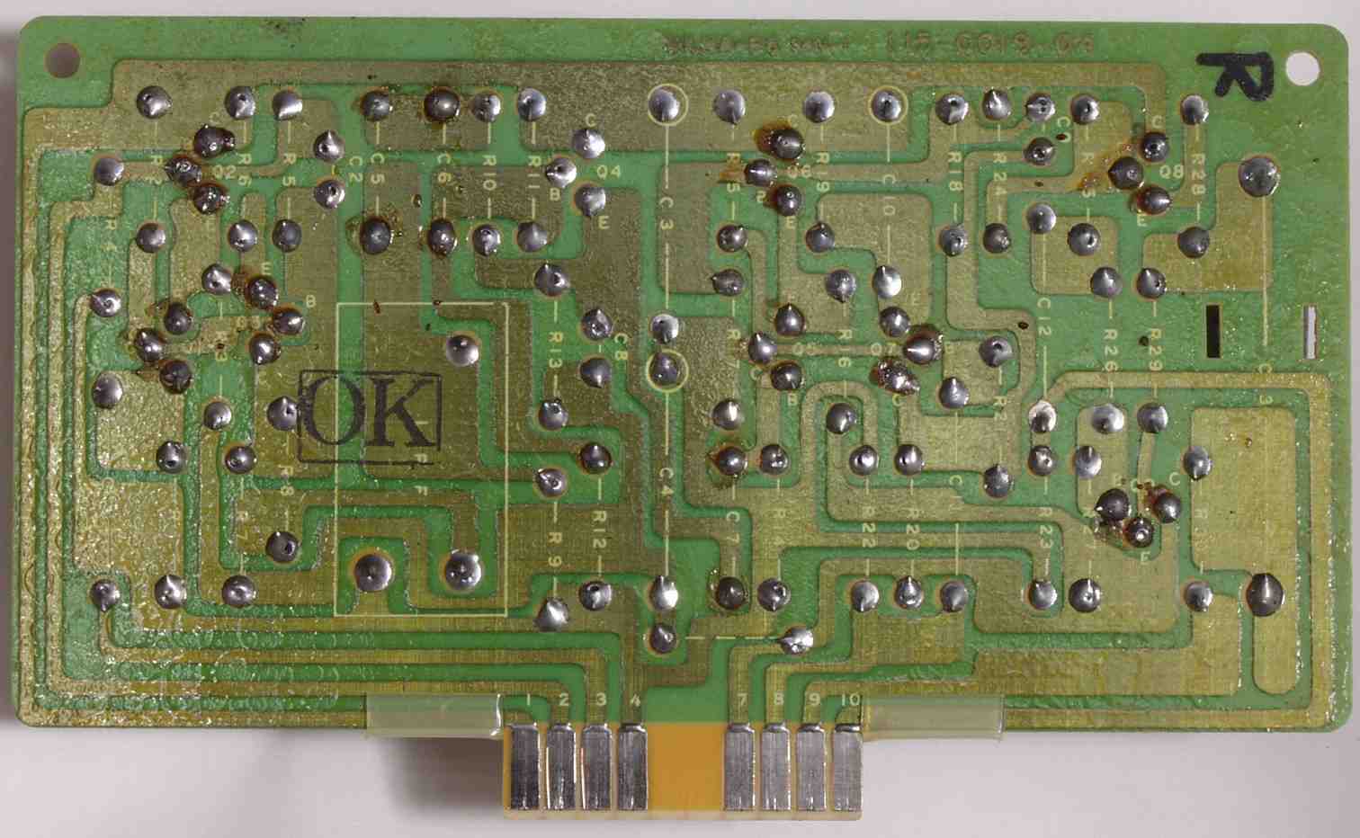 | C74. 修理(ハンダ補正)後 R出力AMP基板裏 全ハンダやり直し |