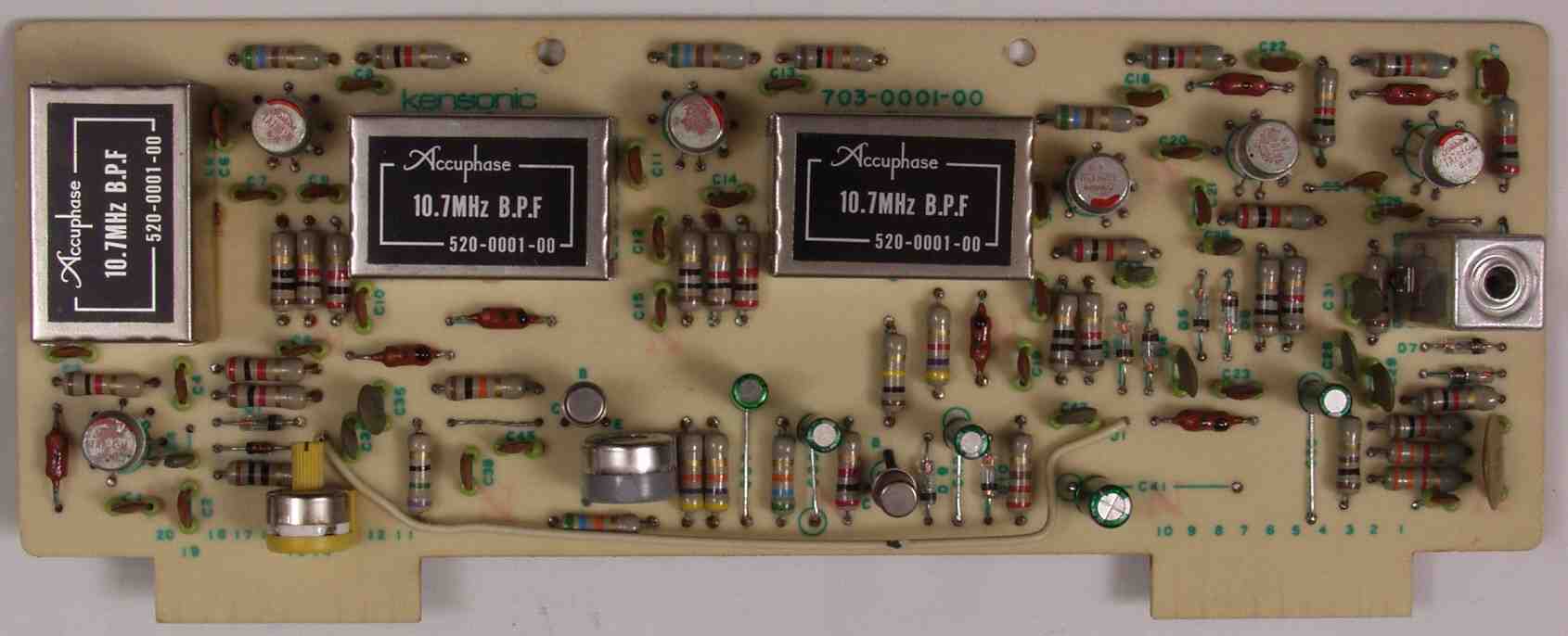 | C42. 修理後 AM−IF増幅・検波基板 電解コンデンサー5個交換、半固定VR2個交換 |