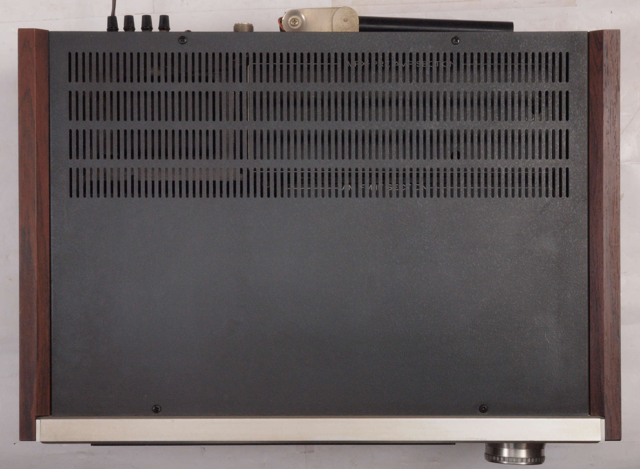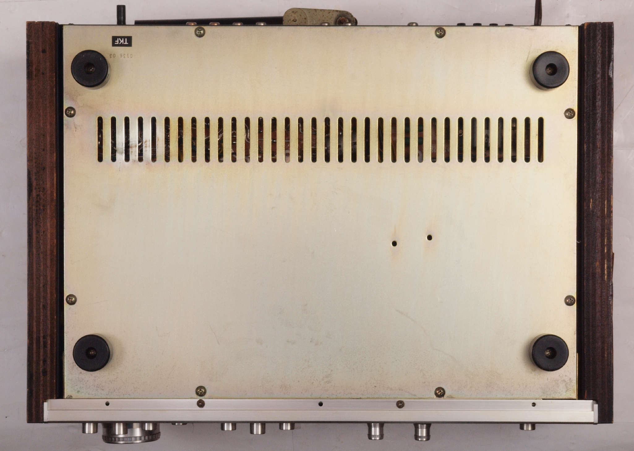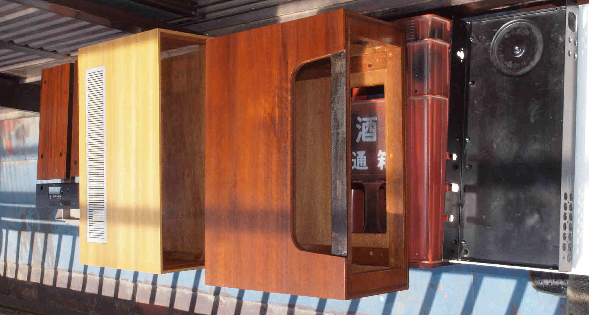 K52. 修理中 反りに注意しながら、天日乾燥中。左手前の黒いパネルはLUXMAN T−50A
