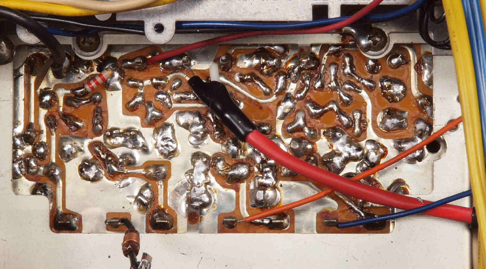 C36. 修理前 MPX基板裏ラッピング、半田を浸みこませる