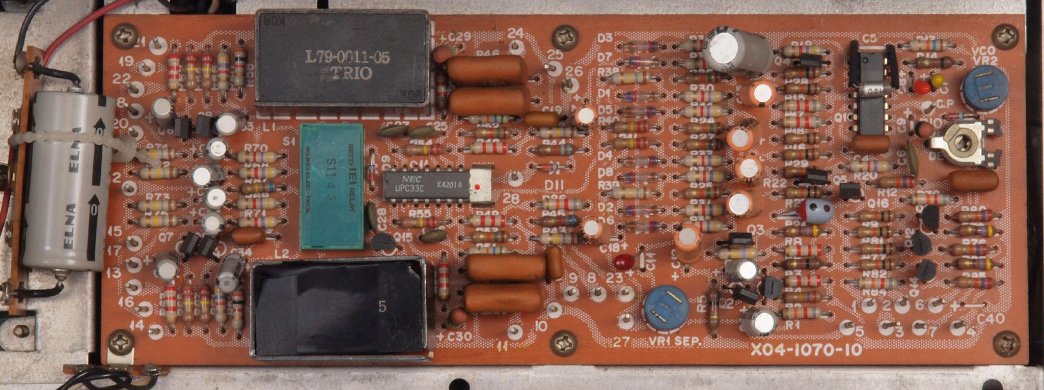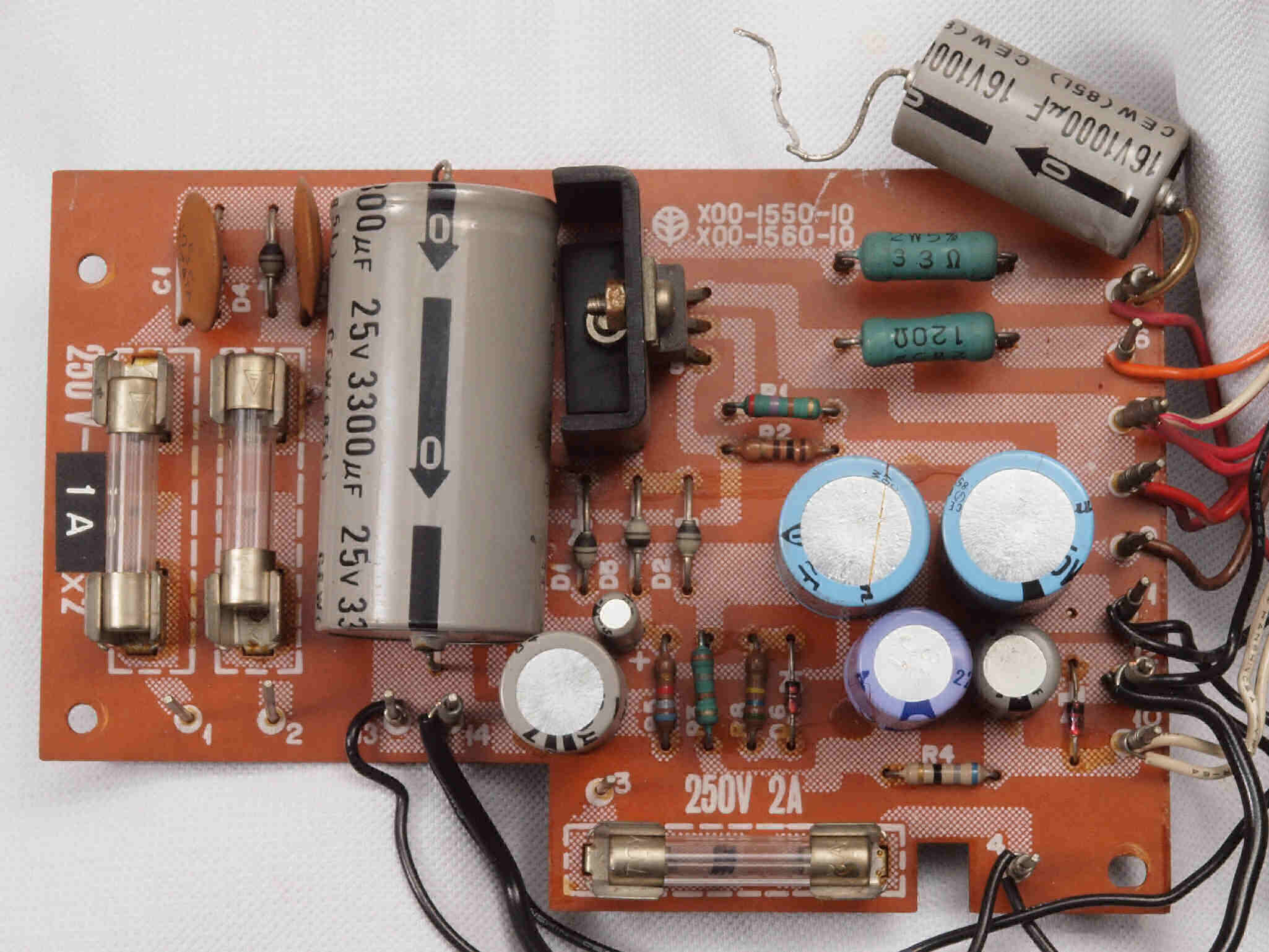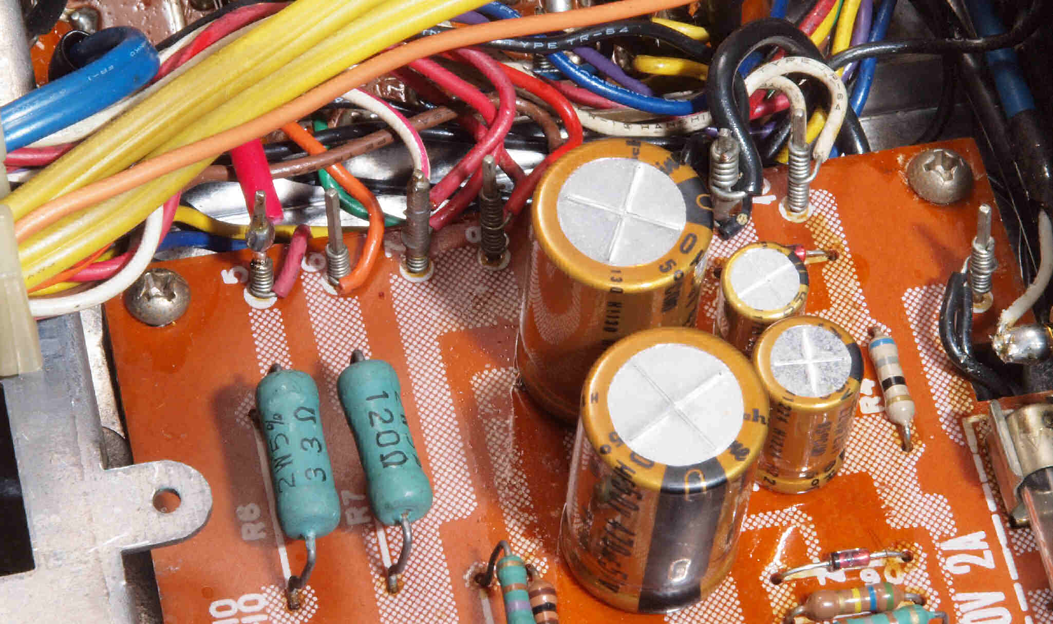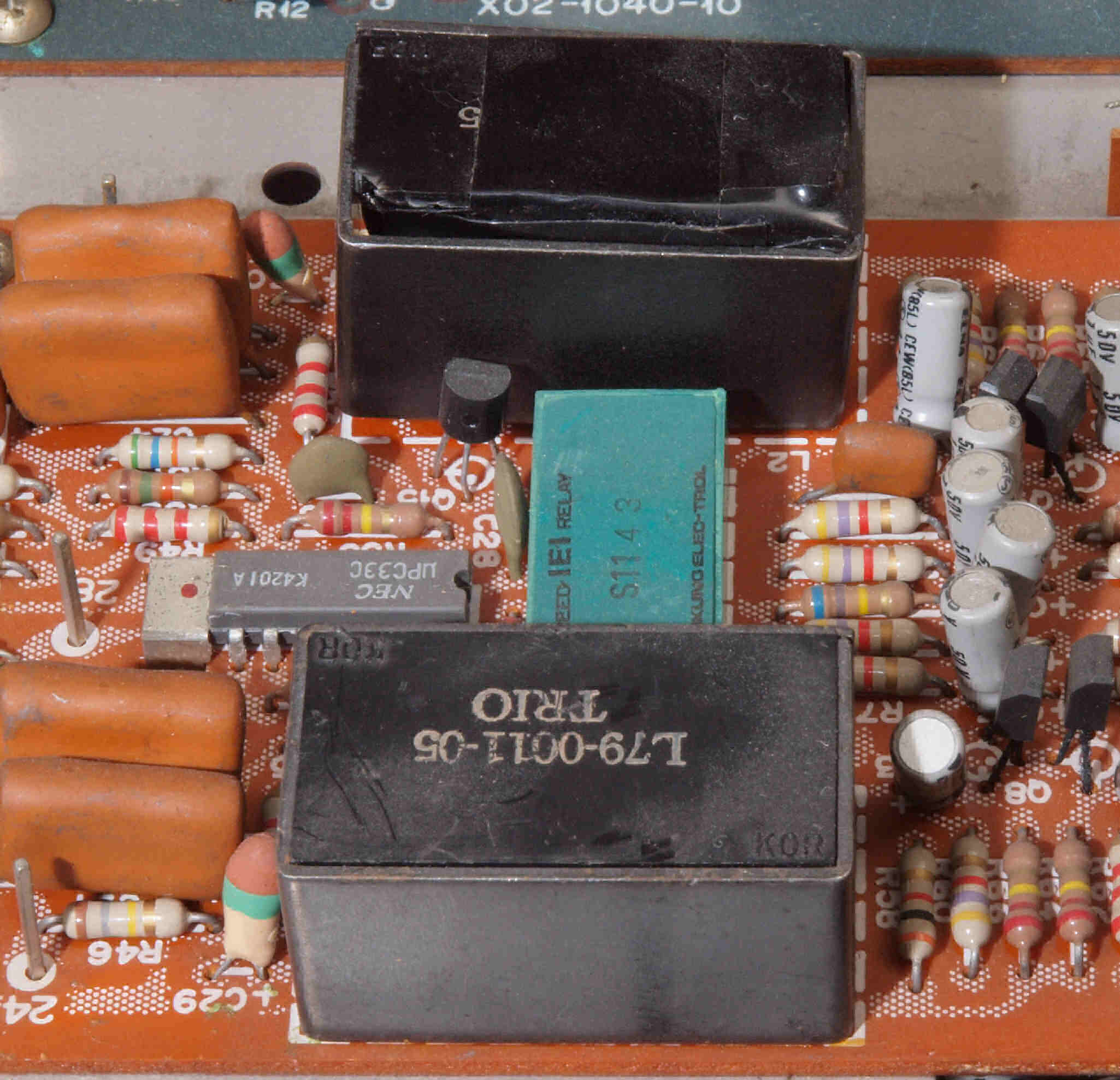 C32. 修理後 MPX基板 足黒TR(トランジスター)10個、電解コンデンサー18個、半固定VR3個交換