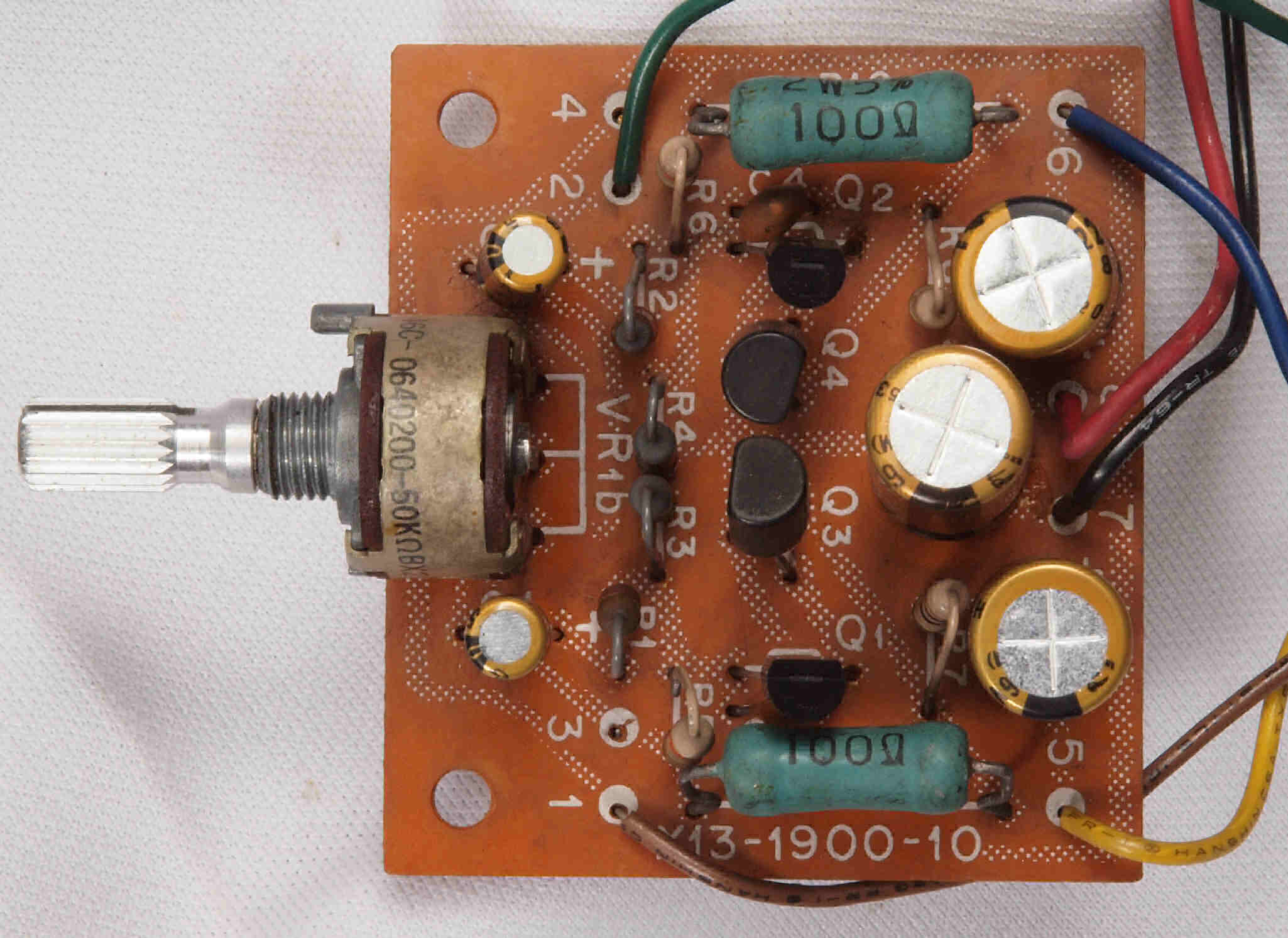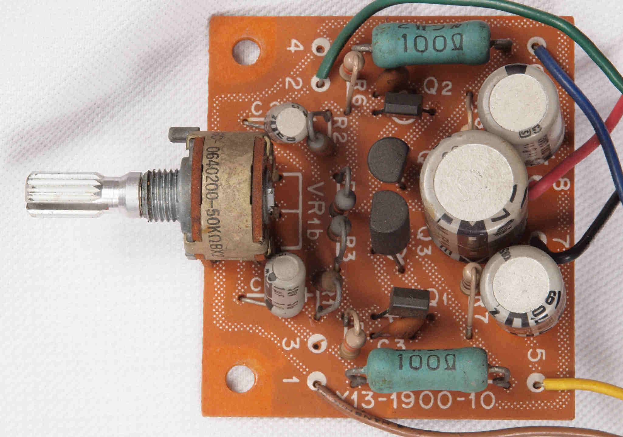 C52. 修理後 ヘッドホーンAMP基板 足黒TR(トランジスター)2個、電解コンデンサー5個交換