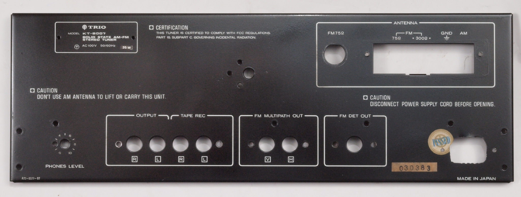 C91. 修理前 Multi pass/FM DET出力RCA端子。
