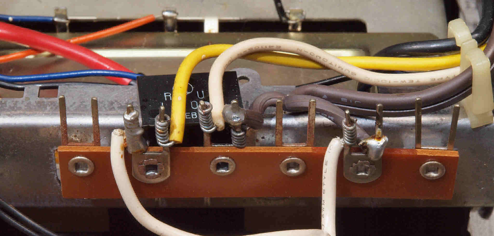 C6C. 修理前 電源配線端子ラッピング、半田を浸みこませる