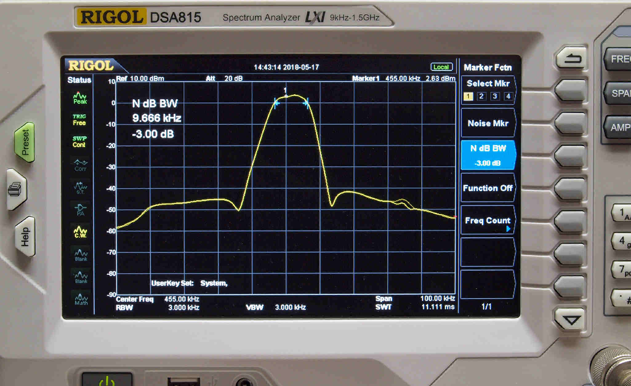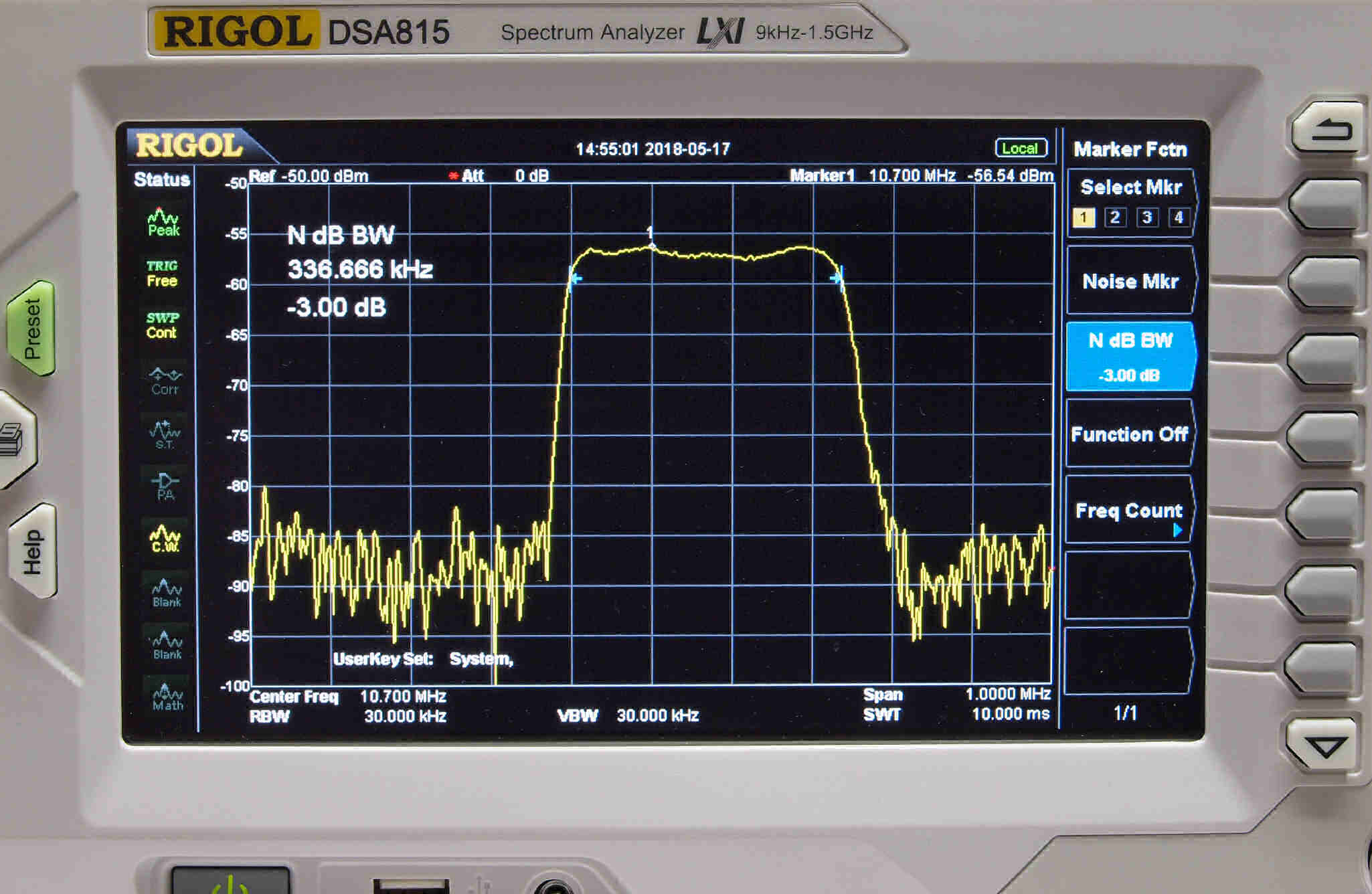 E41. 帯域測定。 Spectrum analyzer RIGOL DS815で測定。
