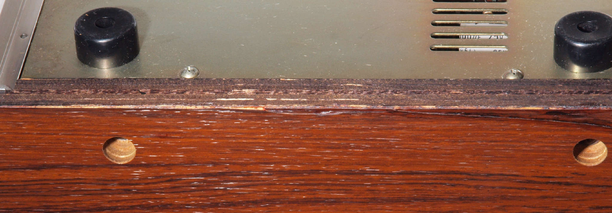K45. 修理前 左側サイドパネル裏、前上。 全体にボンドを染みこませる