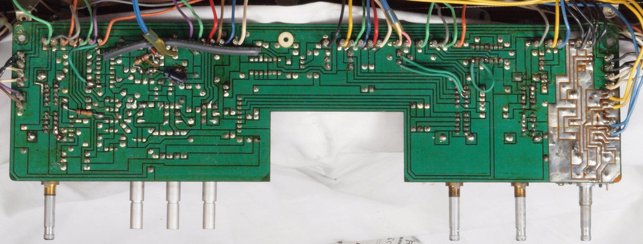 A62. 点検中 MPX基板の足黒IC−2、左上は磨いてある。磨くより交換の方が安心確実。