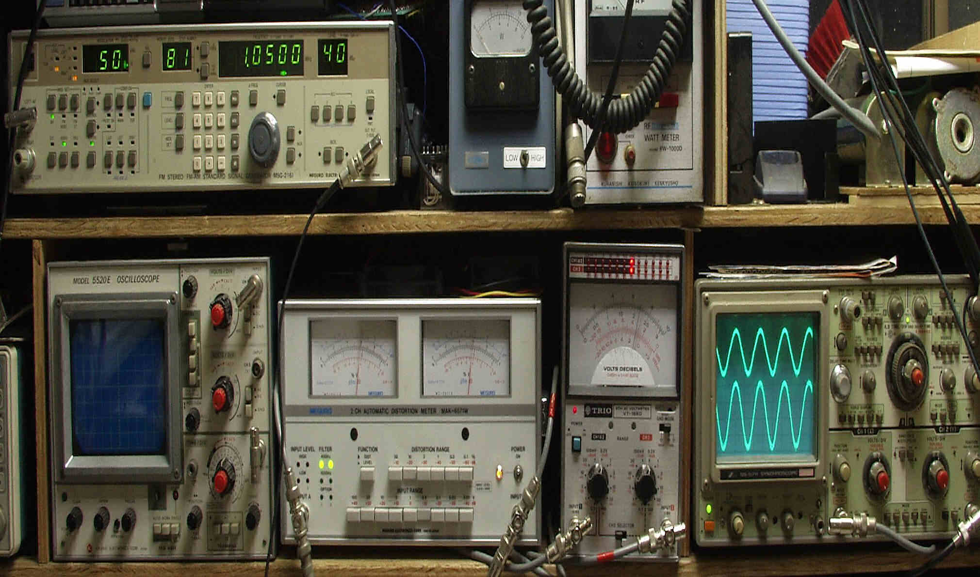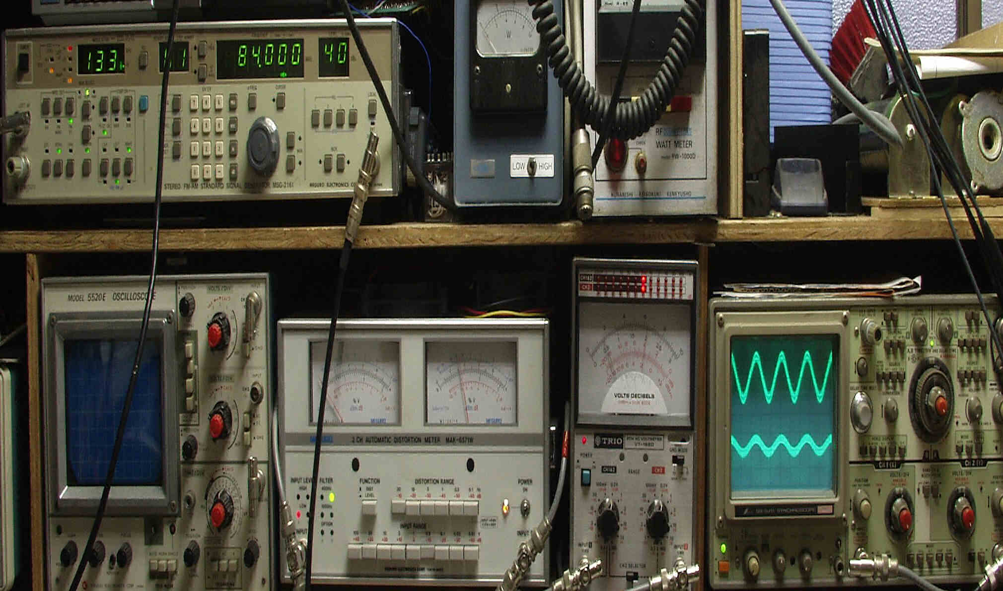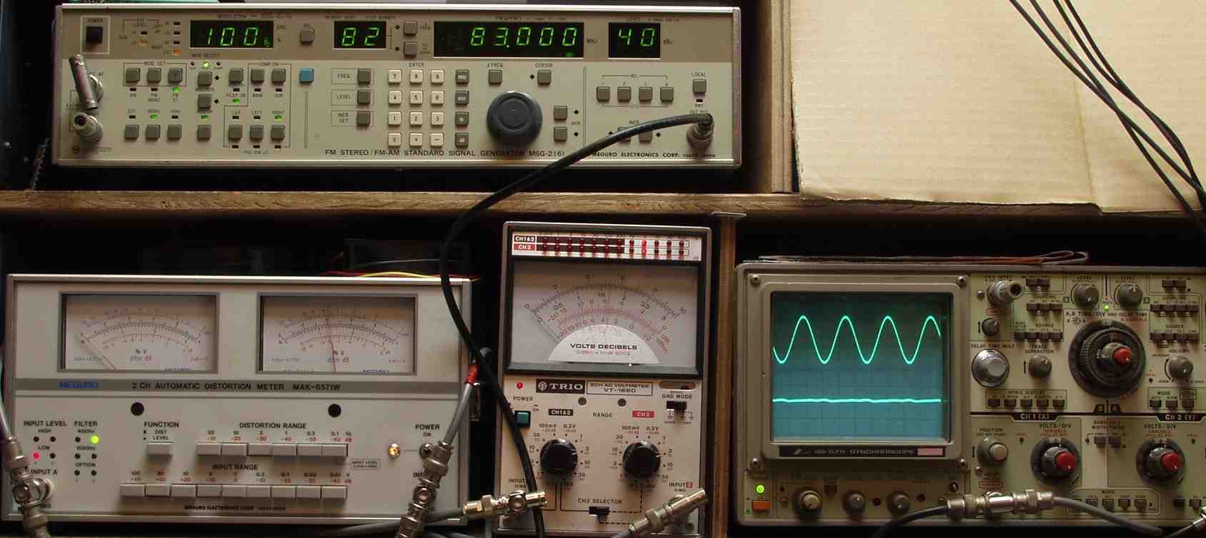 下左側の歪み率計=4%、左メータ=L出力、右メータ=R出力(最大10%レンジ)