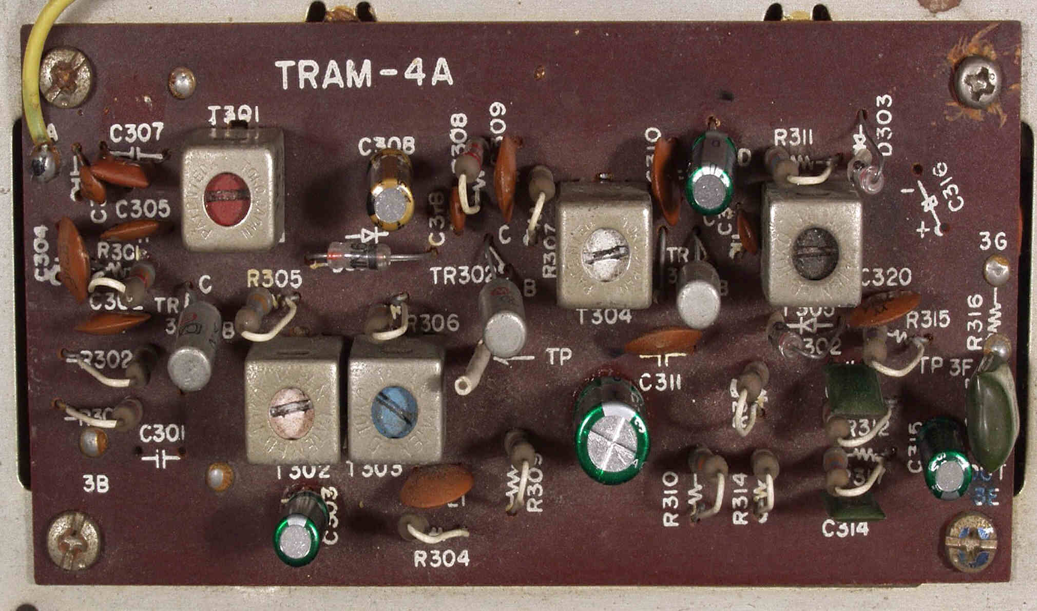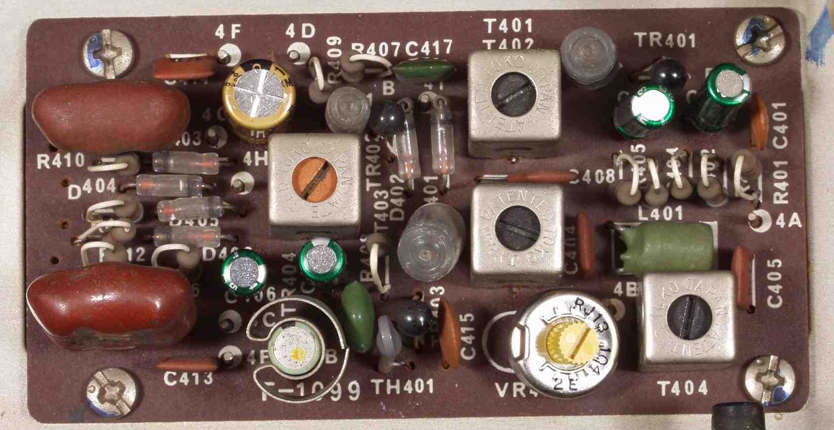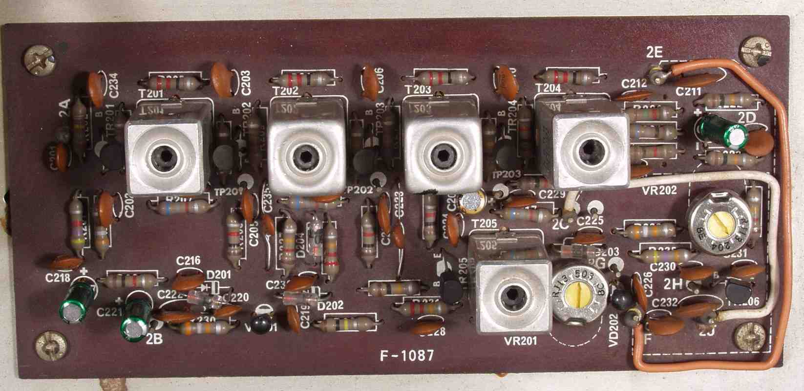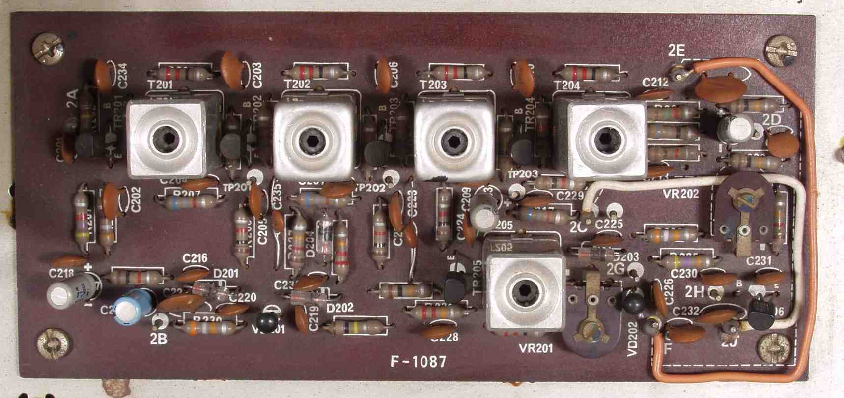 C2B. 修理後 FM−IFー基盤 電解コンデンサー4個交換、半固定VR2個、TR(トランジスタ−)2個交換