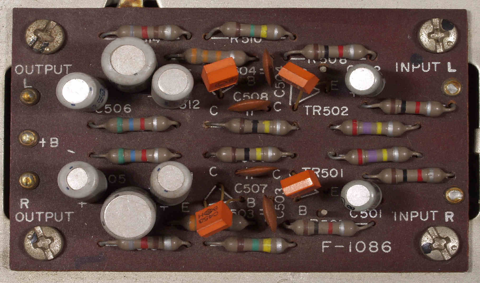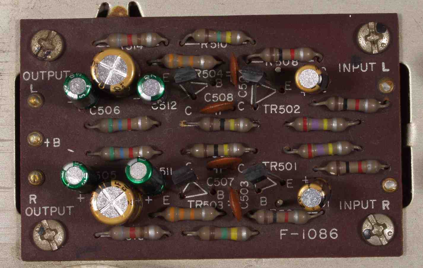 C5B. 修理後 バッファーAMP基板 電解コンデンサー8個、TR(トランジスタ−)4個交換