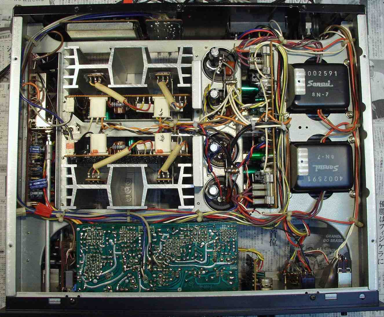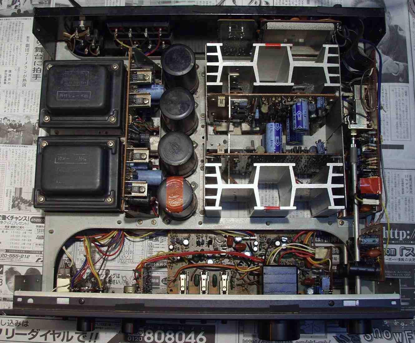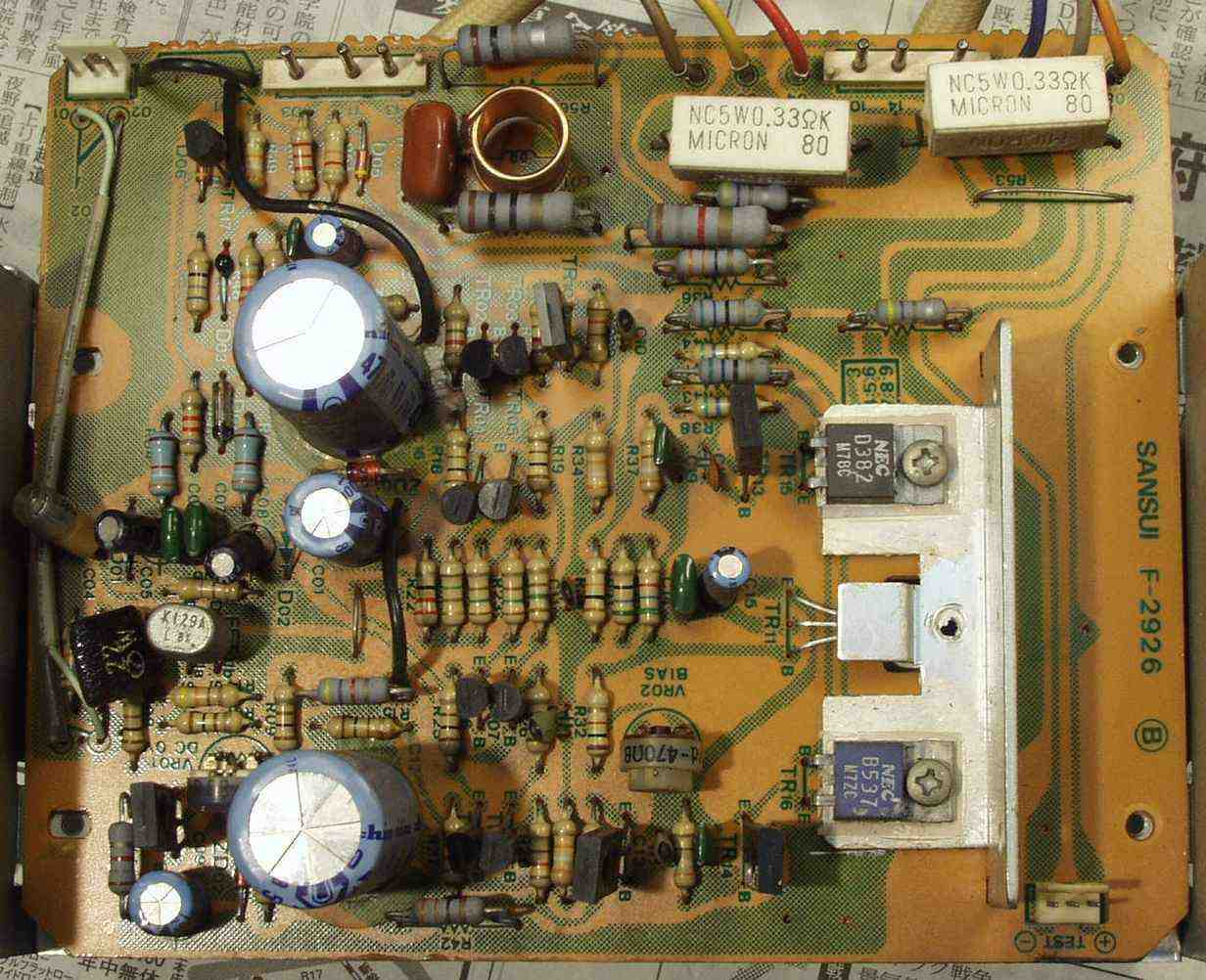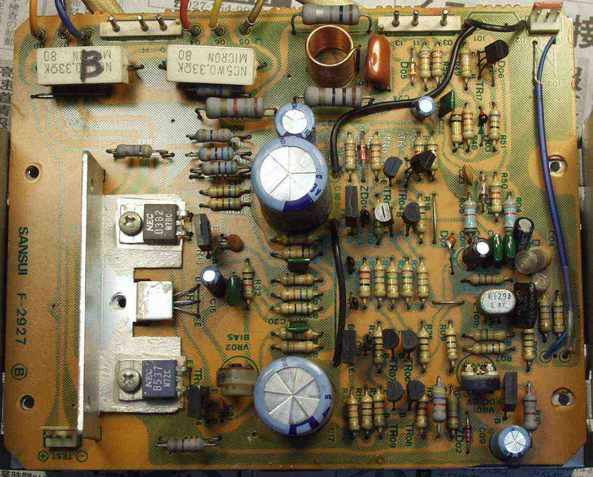 寸評 差し込み式SP端子を持つ初期タイプは基本回路自体は同じですが、使用されている電解コンデンサーの値が大きい