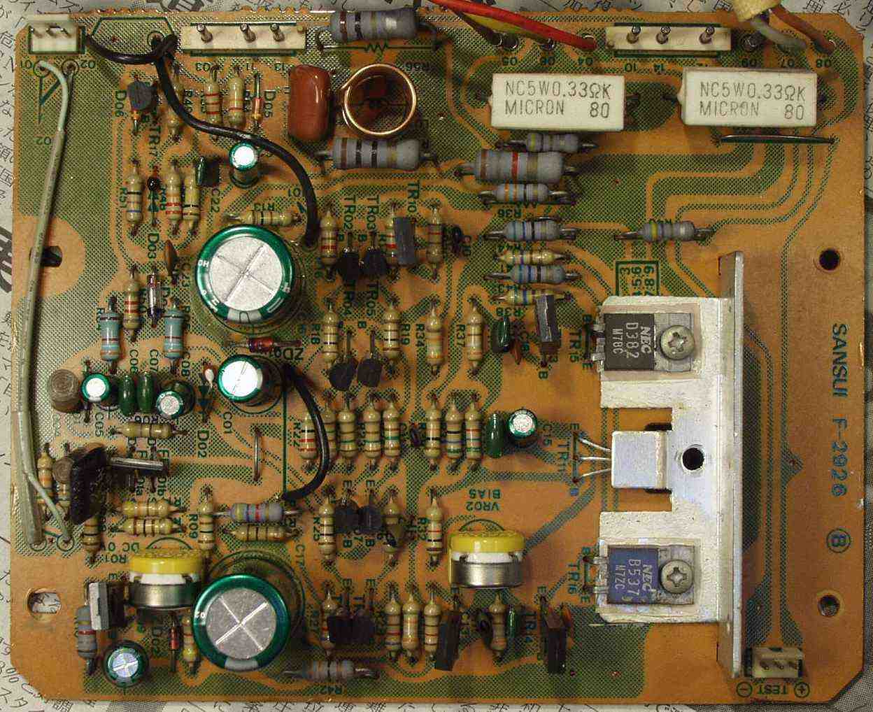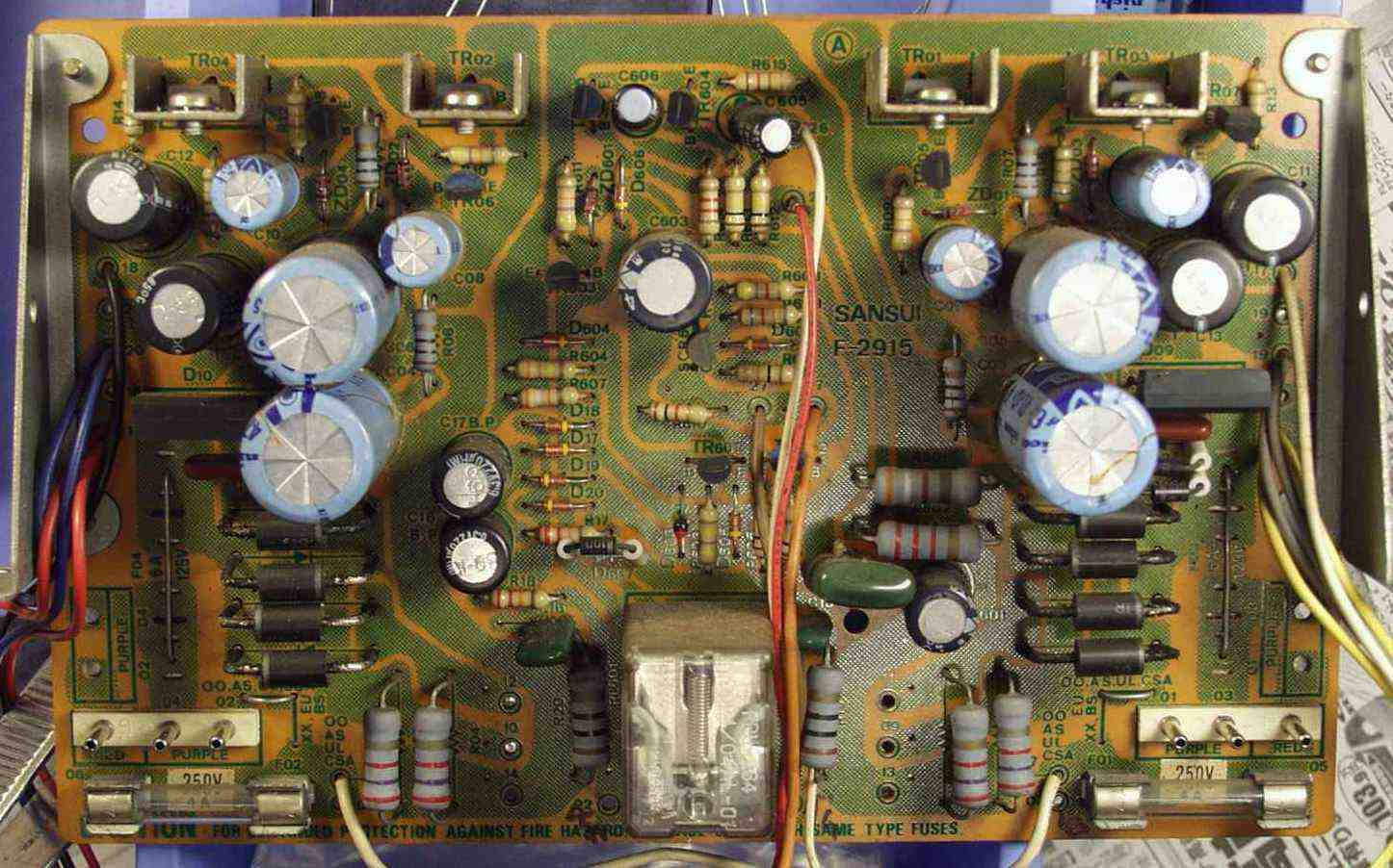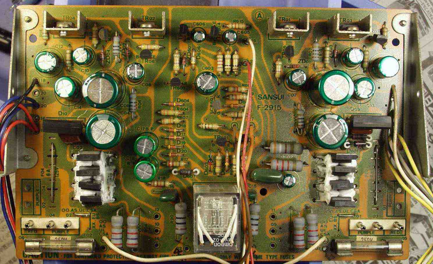 C−3B. 修理後 電源整流+プロテクト基盤 ダイオード8個 電解コンデンサー18個 SP接続リレー交換