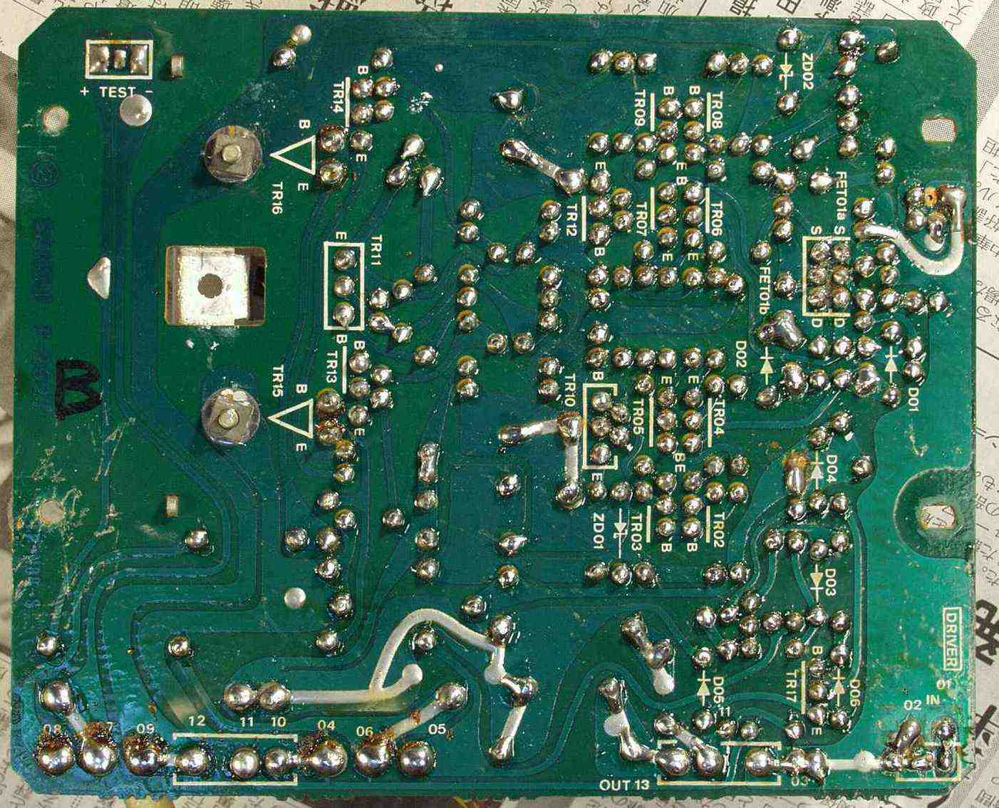 C−1H. 修理(半田補正)後 Lドライブ基盤裏 全ての半田をやり直す