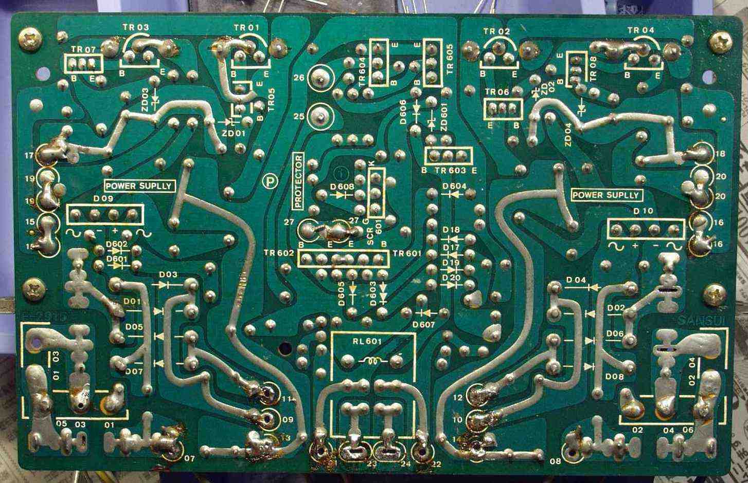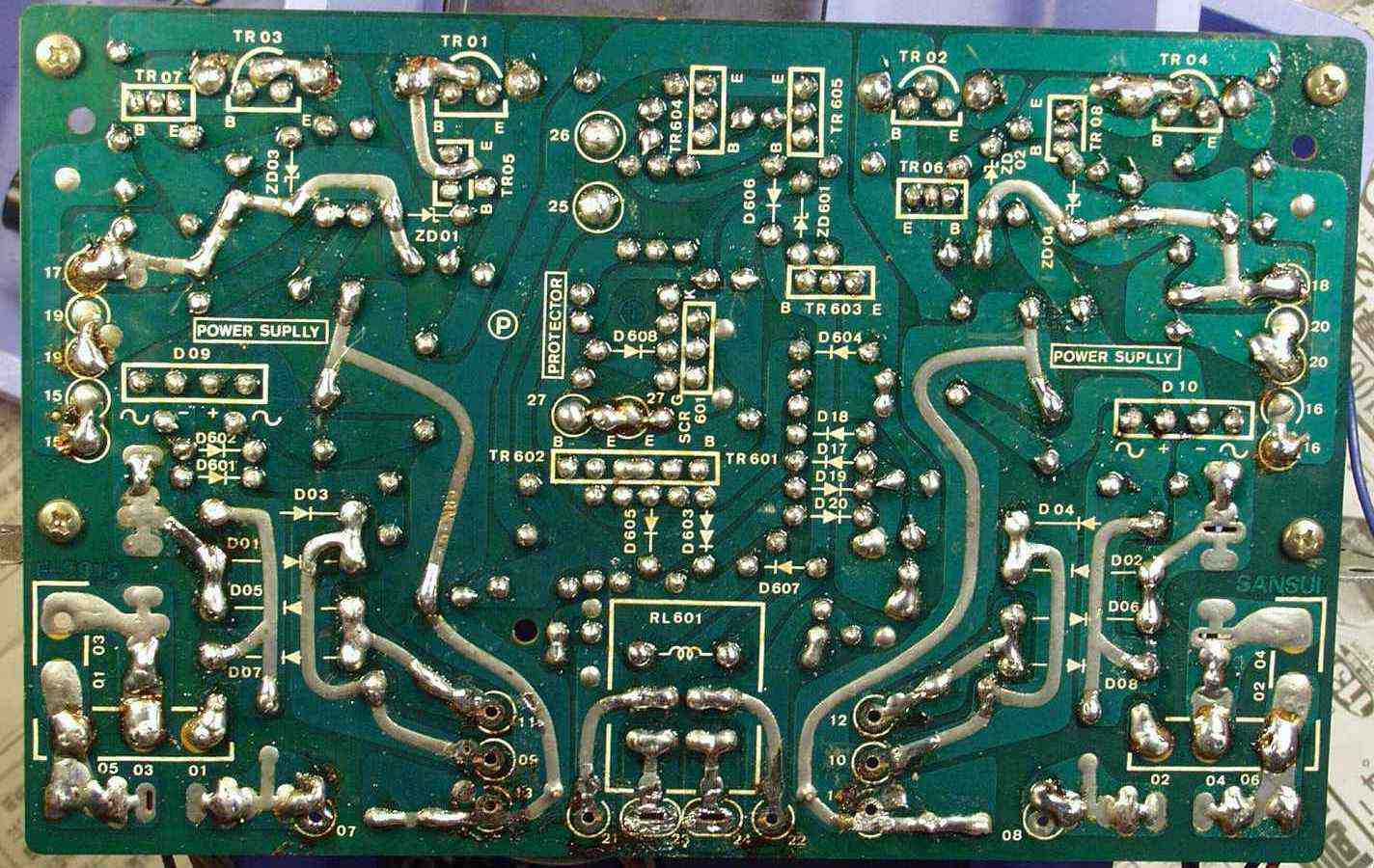C−3D. 修理(半田補正)後 電源整流+プロテクト基盤裏