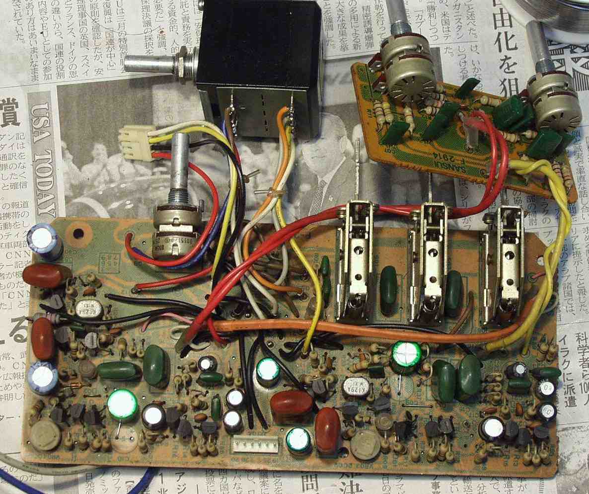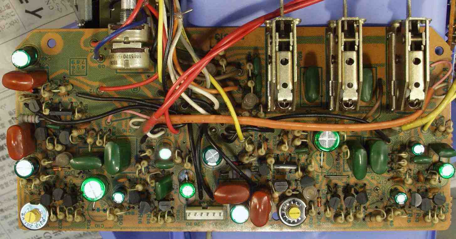 C−2B. 修理後 コントロールAMP基盤 初段FET(電界効果トランジスター)2個、半固定VR2個、電解コンデンサー12個交換