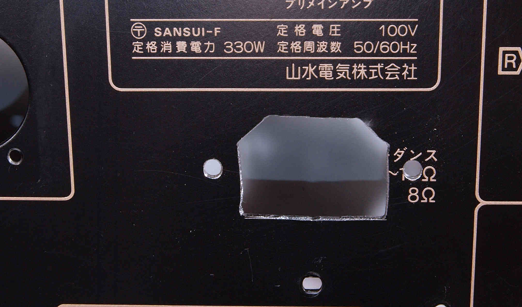 C97. 修理後、 電源コード穴を塞ぎ、RCA端子を取り付け完成。