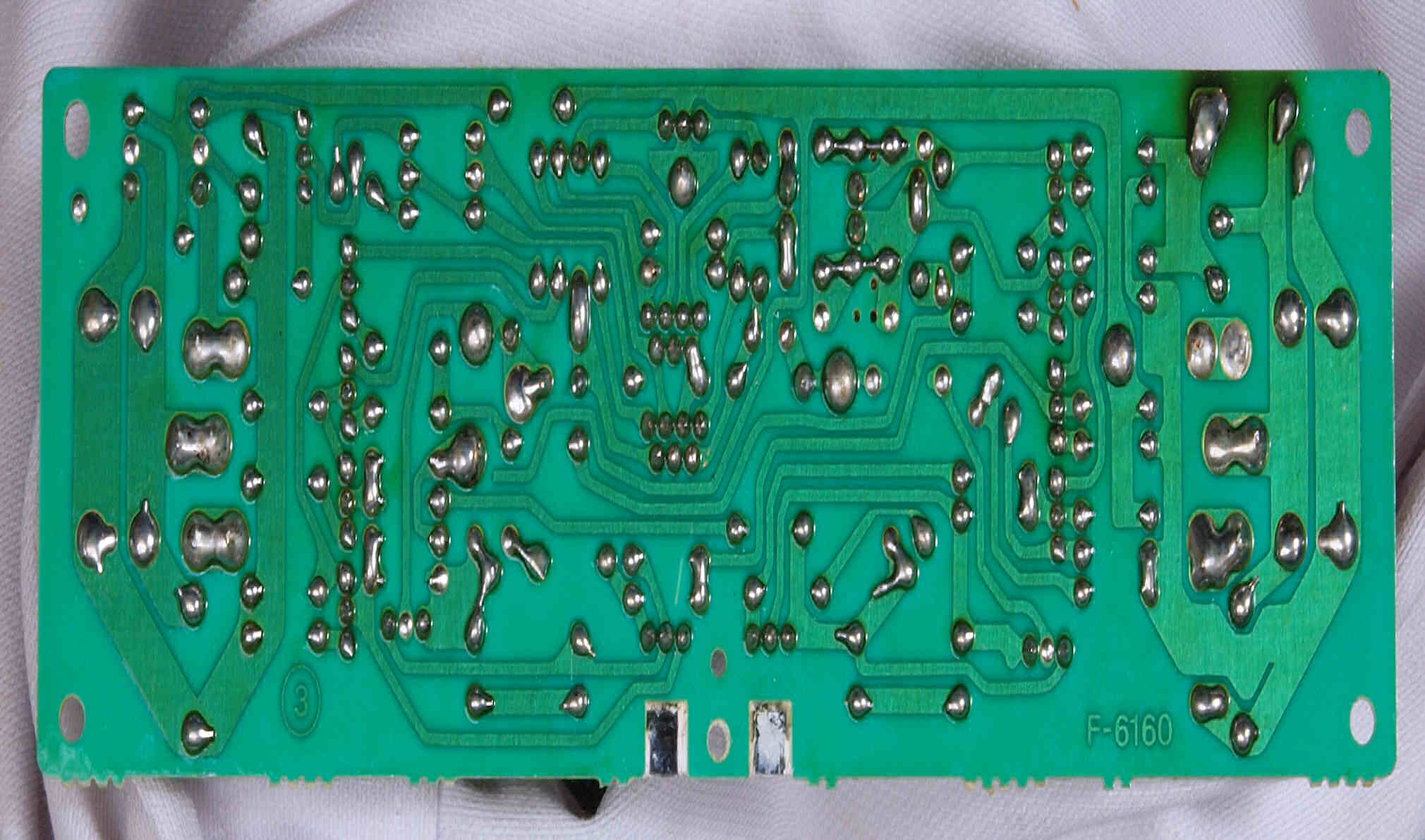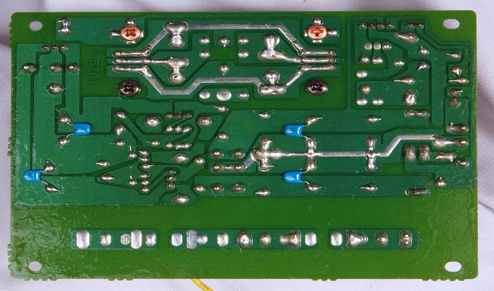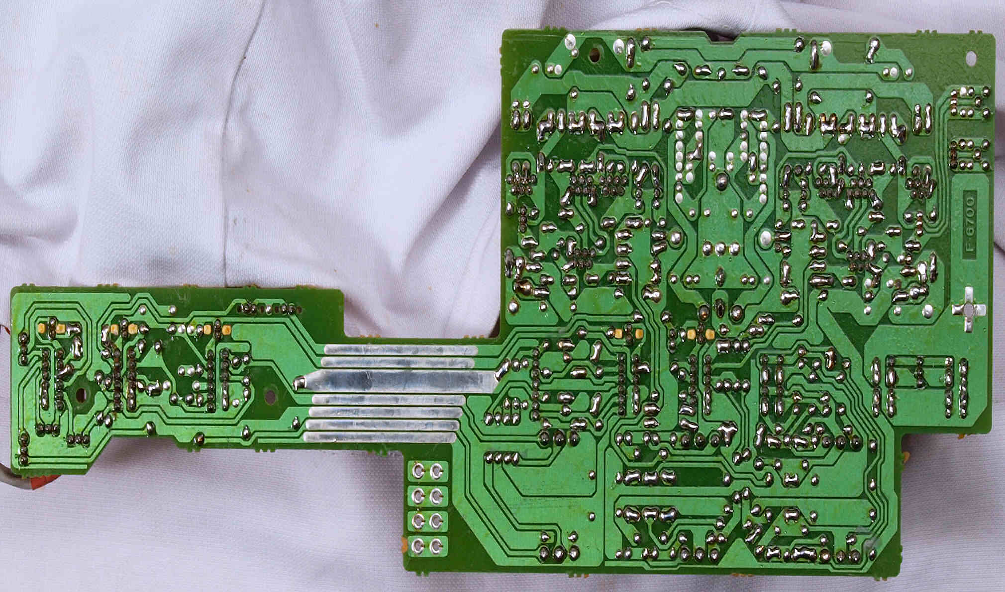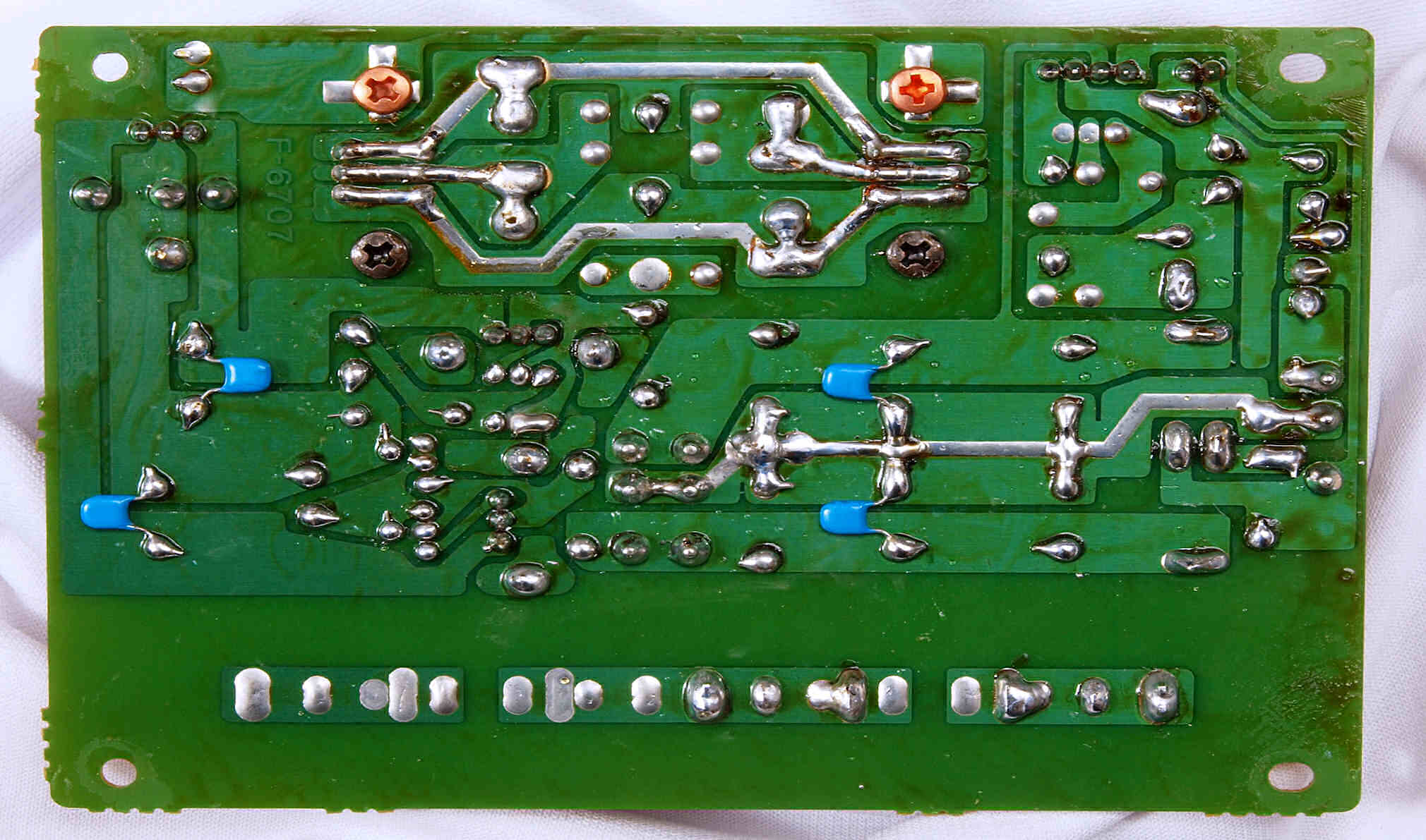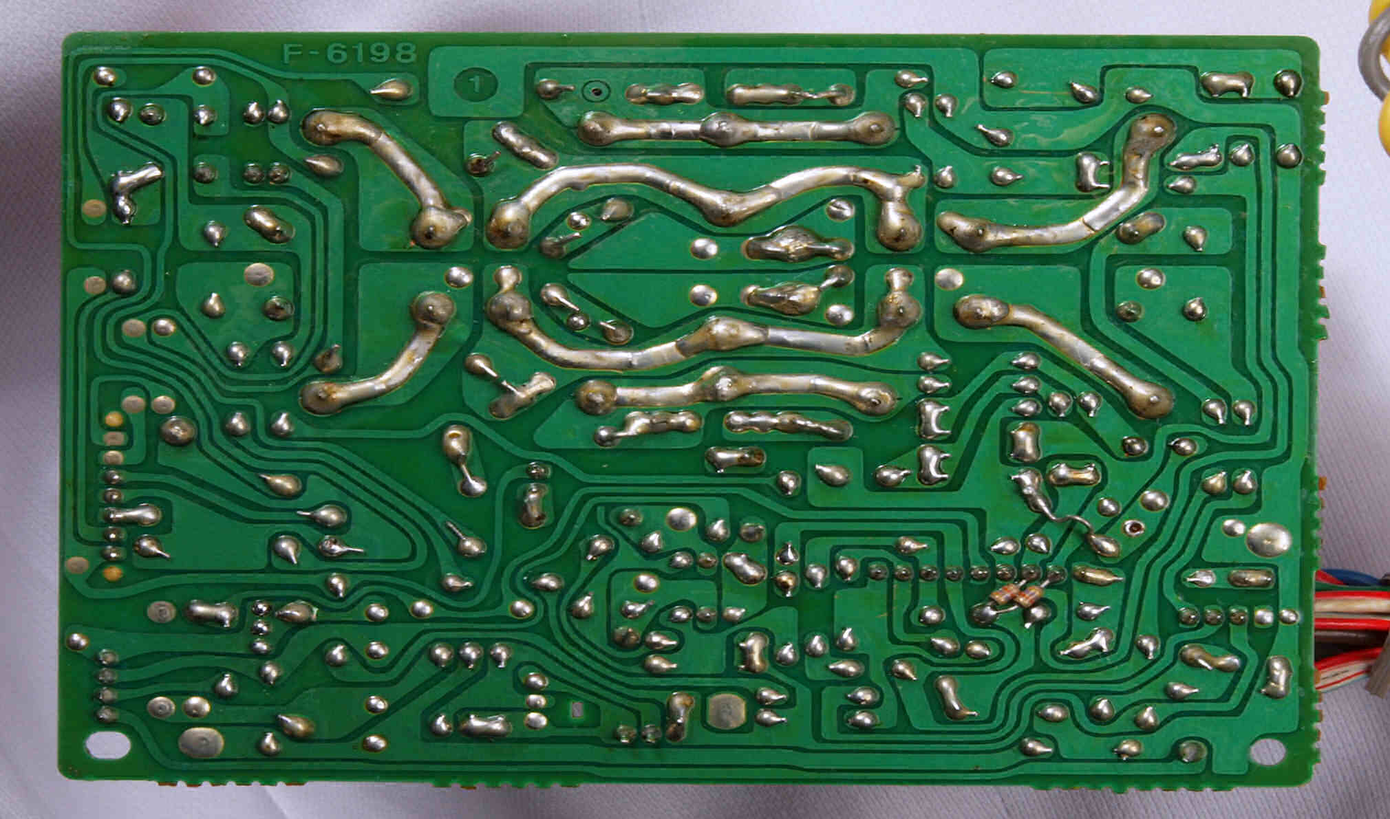 C15. 修理(半田補正)後 Protector(SP接続リレー)基板裏、 全半田やり直し。