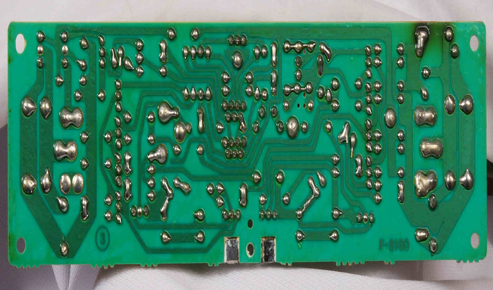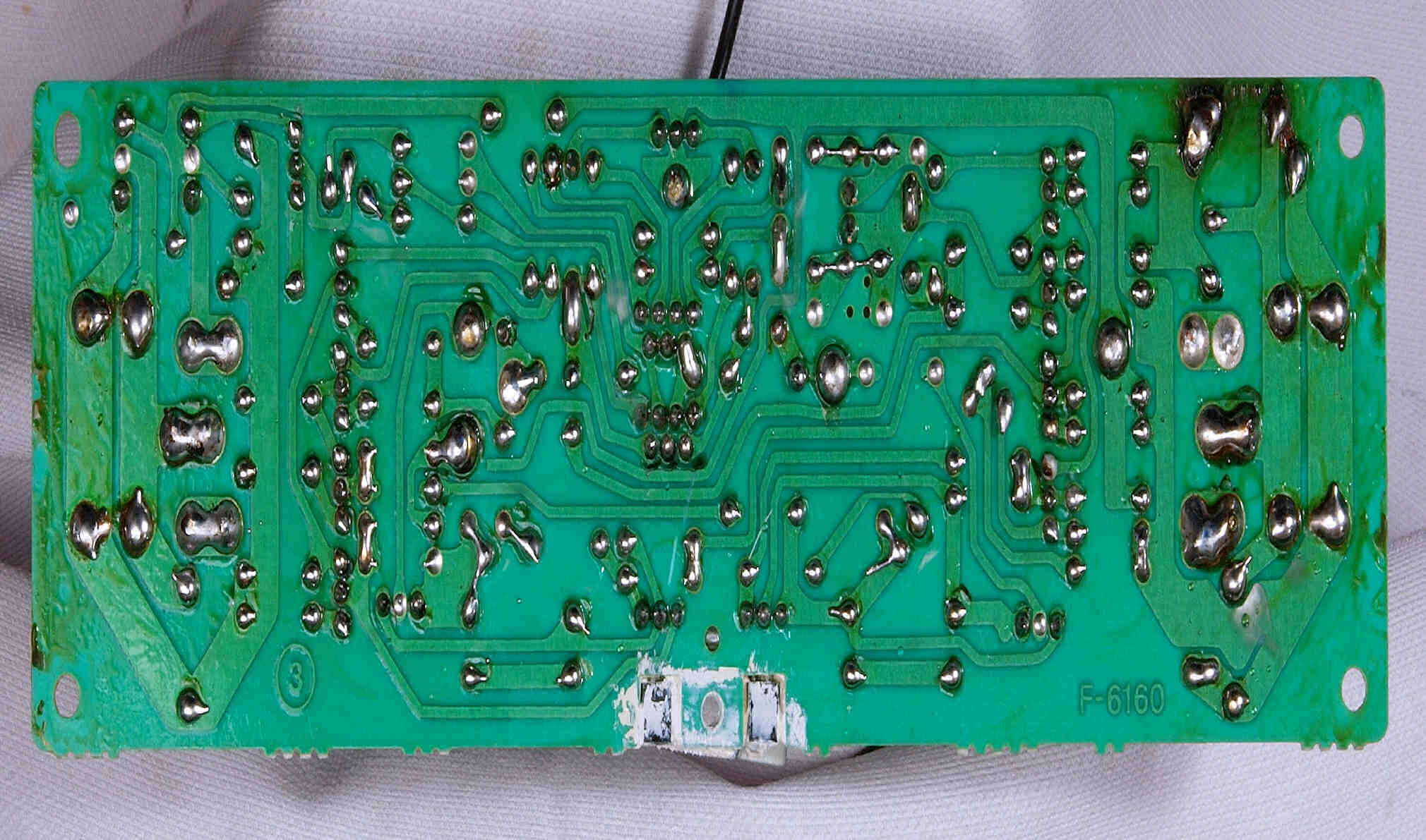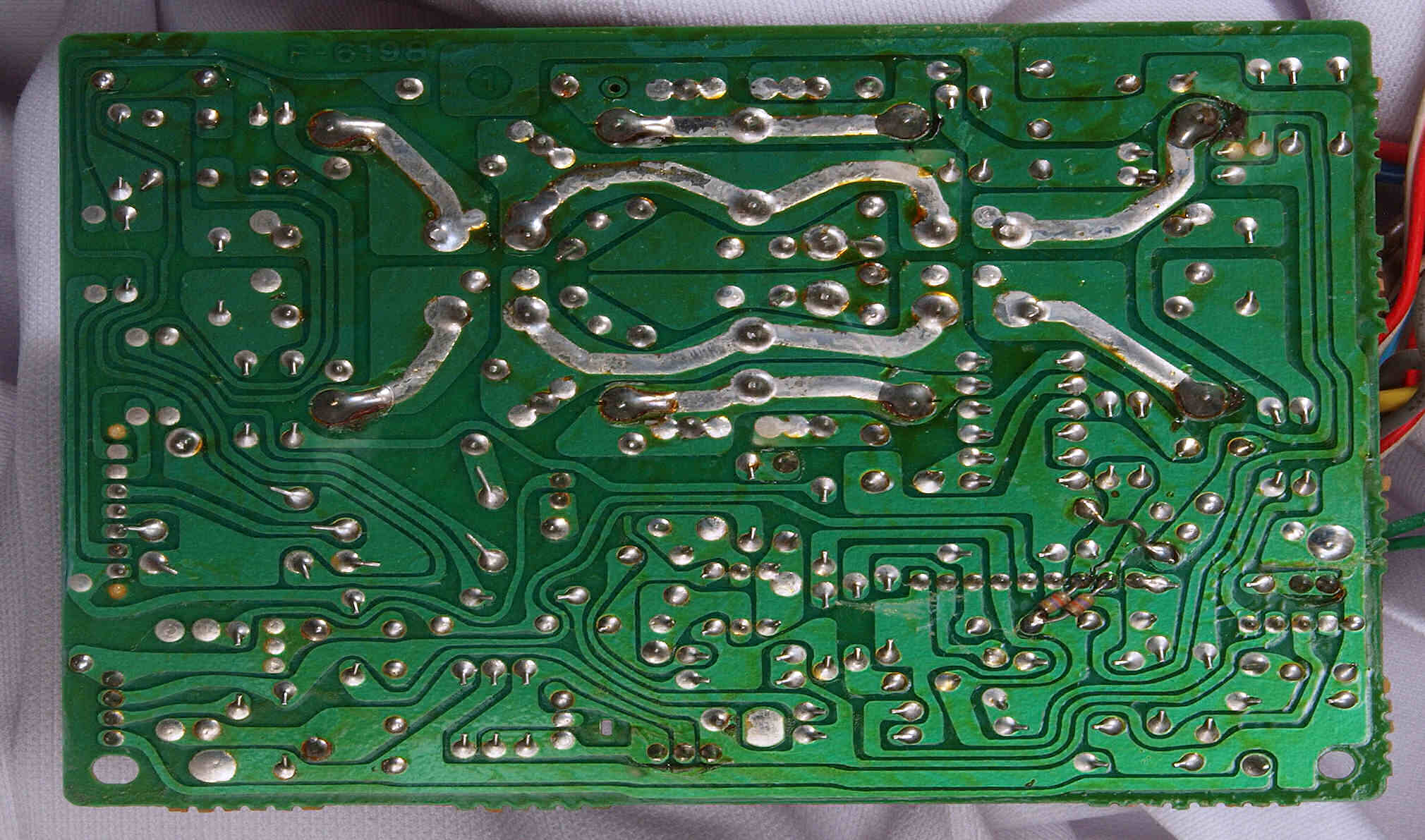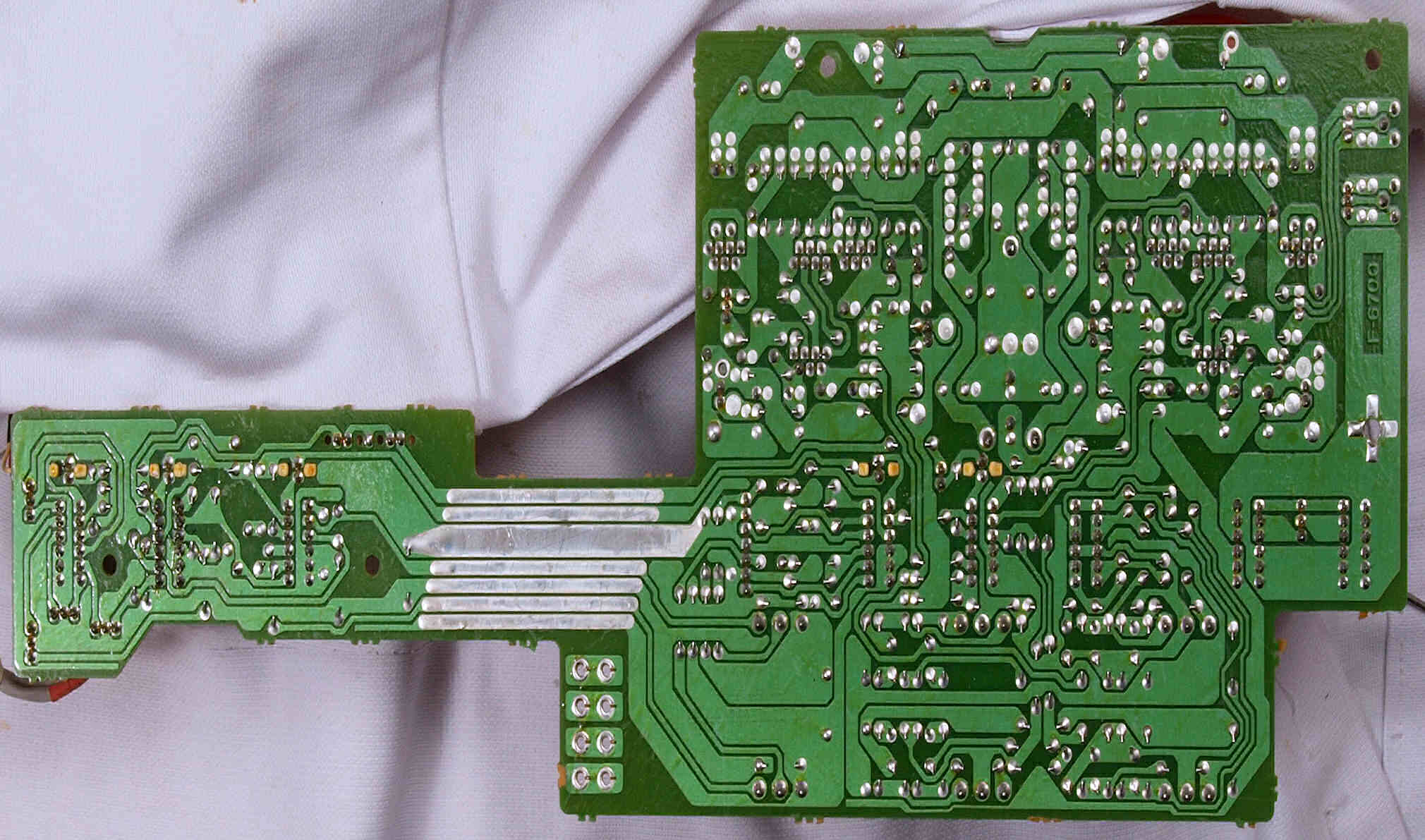 C15. 修理(半田補正)後 Protector(SP接続リレー)基板裏、 全半田やり直し。