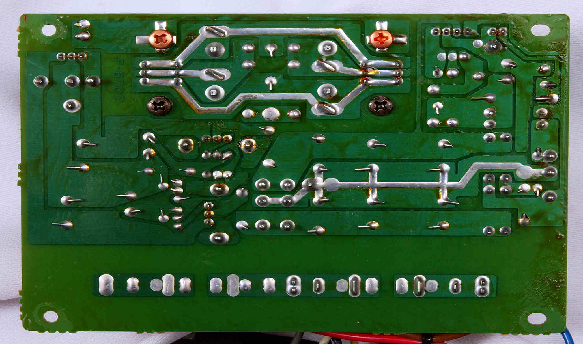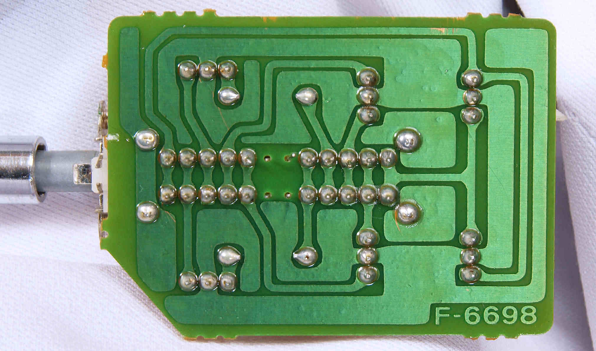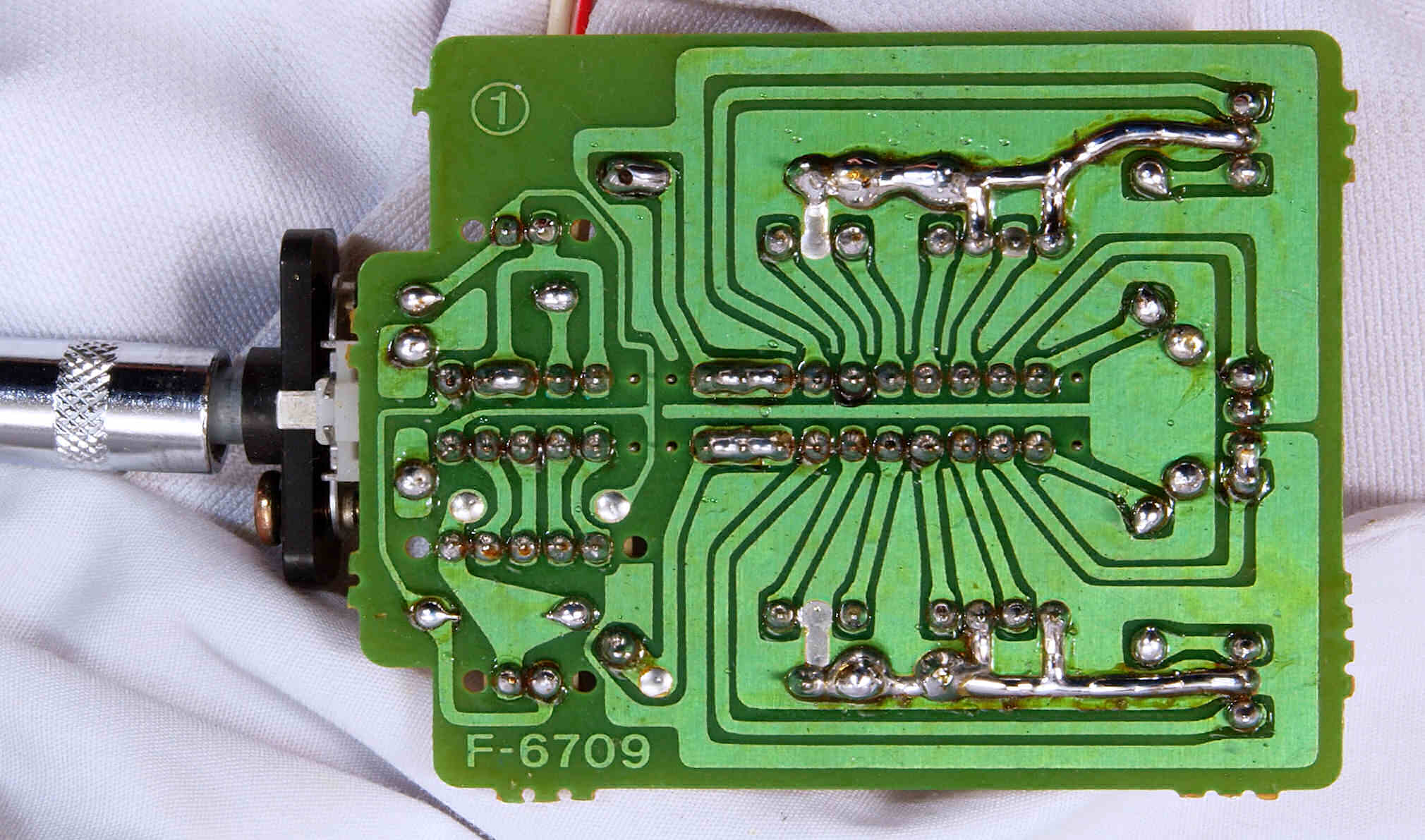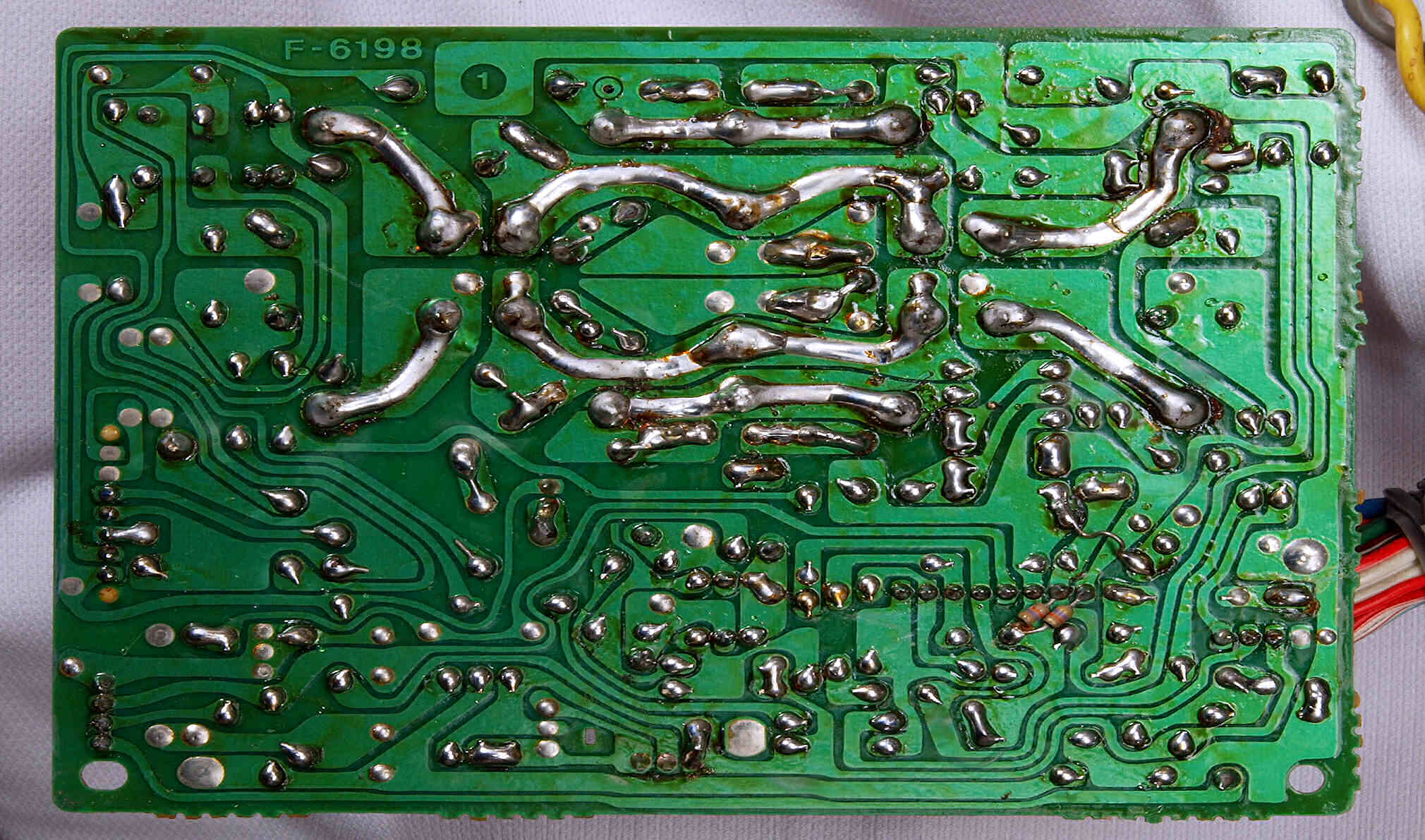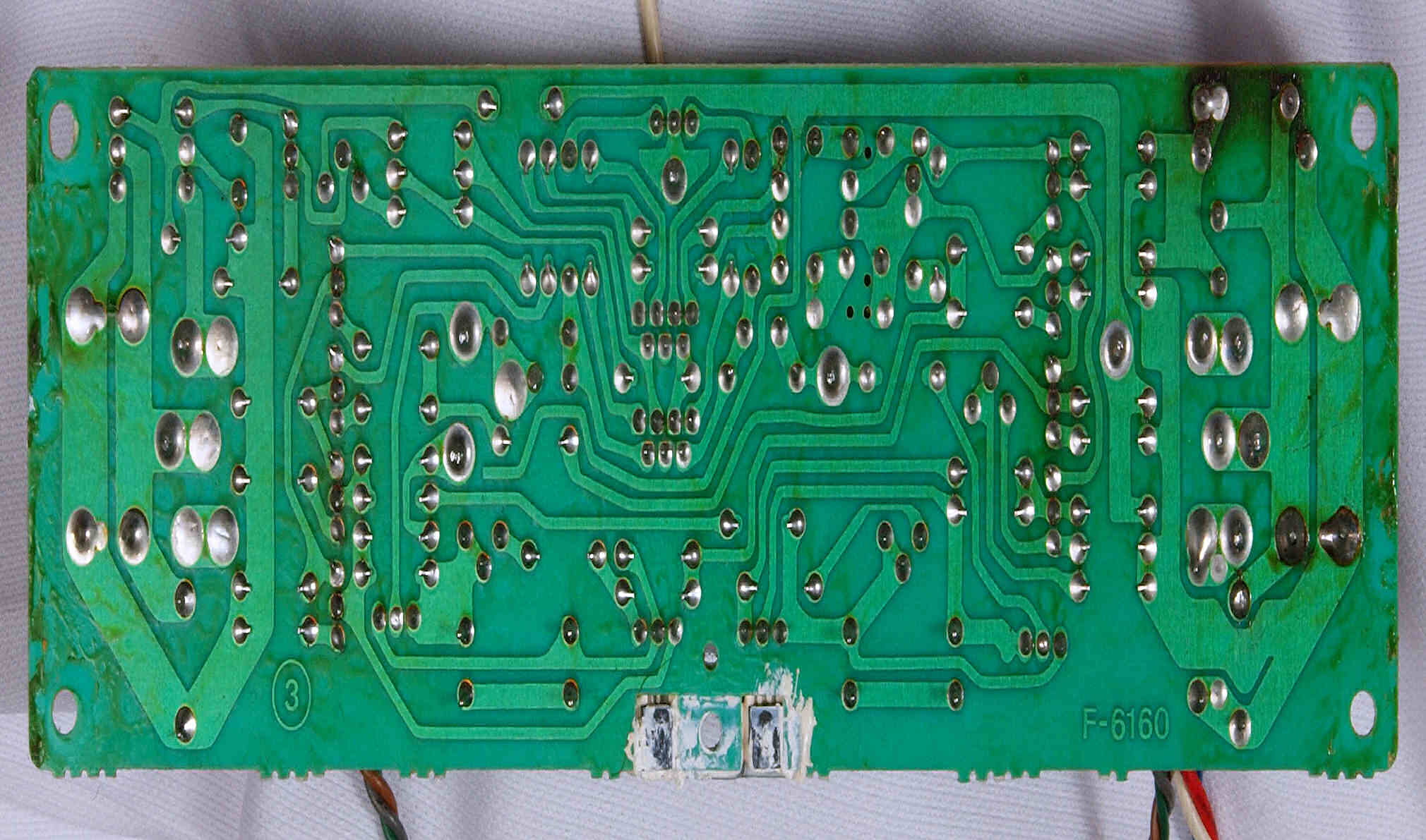 C15. 修理(半田補正)後 Protector(SP接続リレー)基板裏、 全半田やり直し。