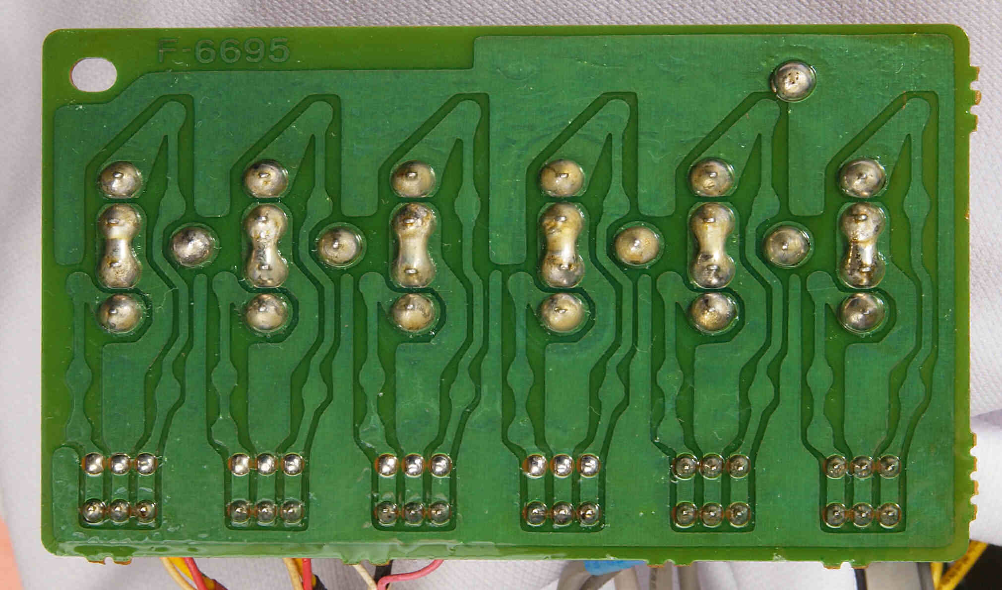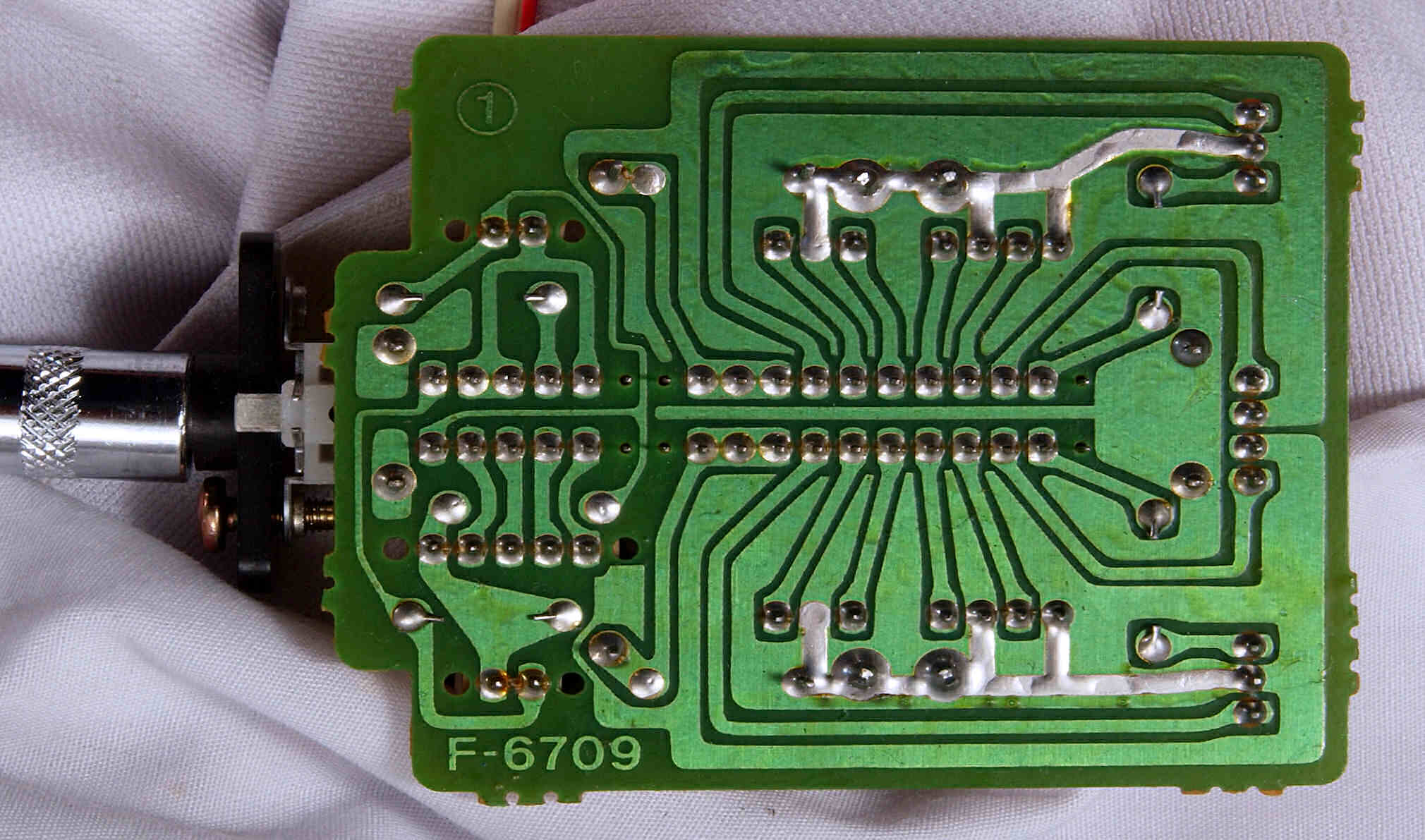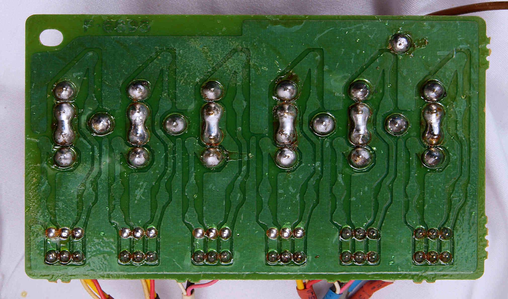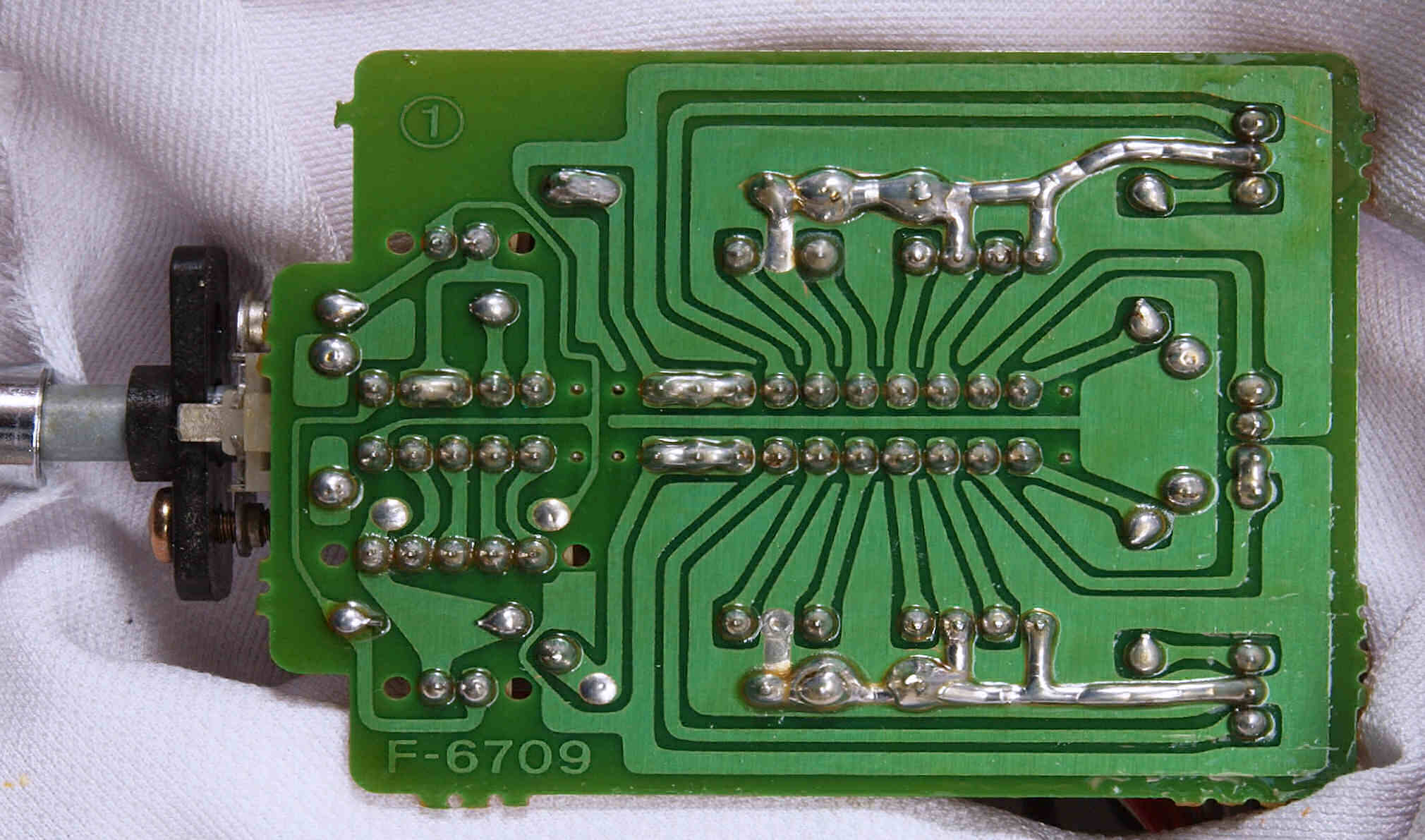 C15. 修理(半田補正)後 Protector(SP接続リレー)基板裏、 全半田やり直し。