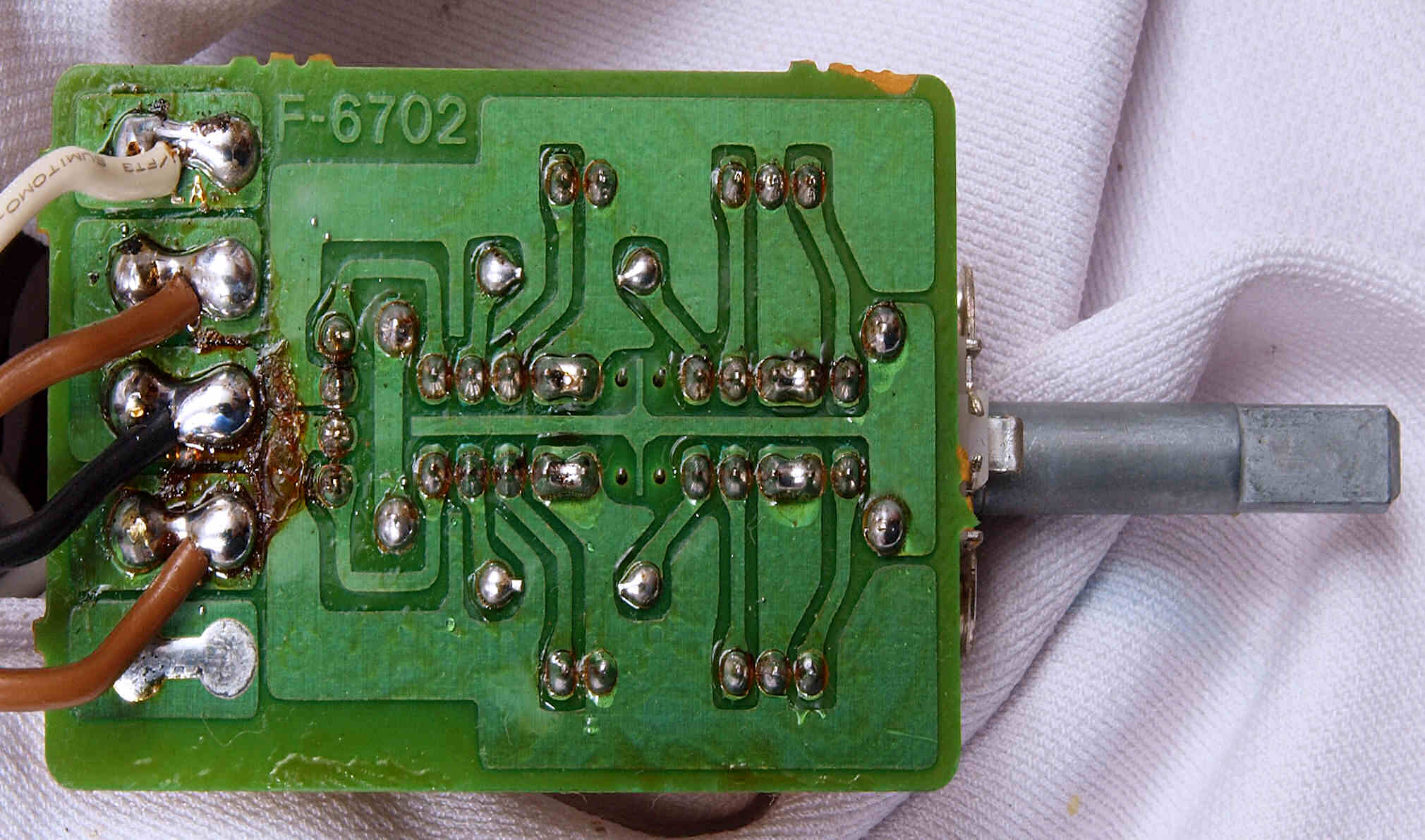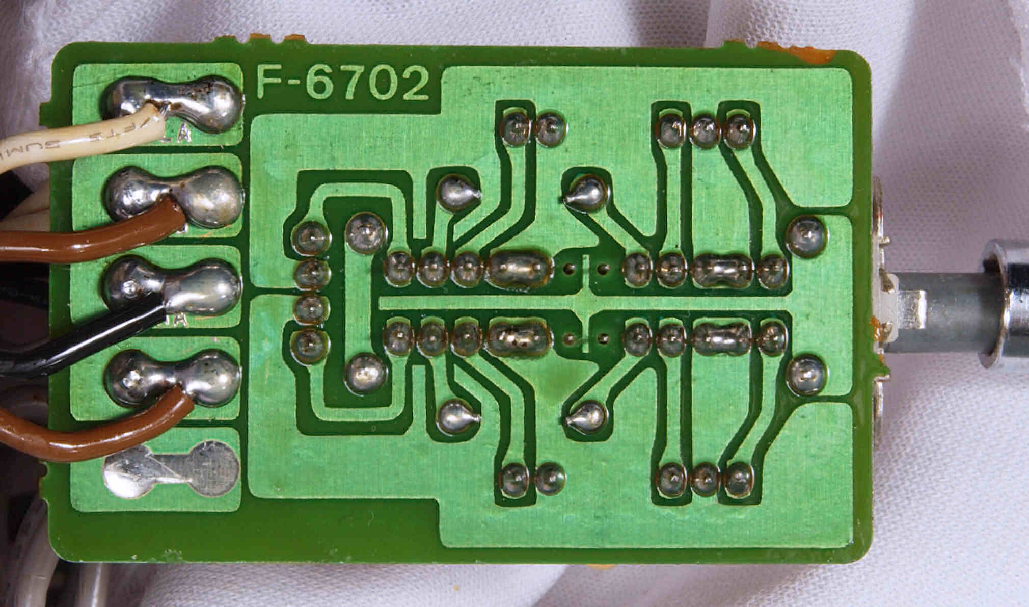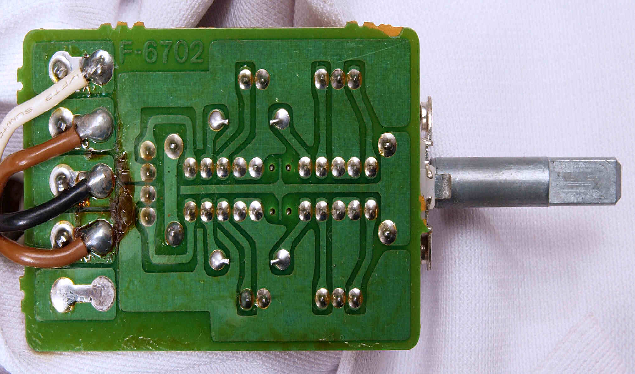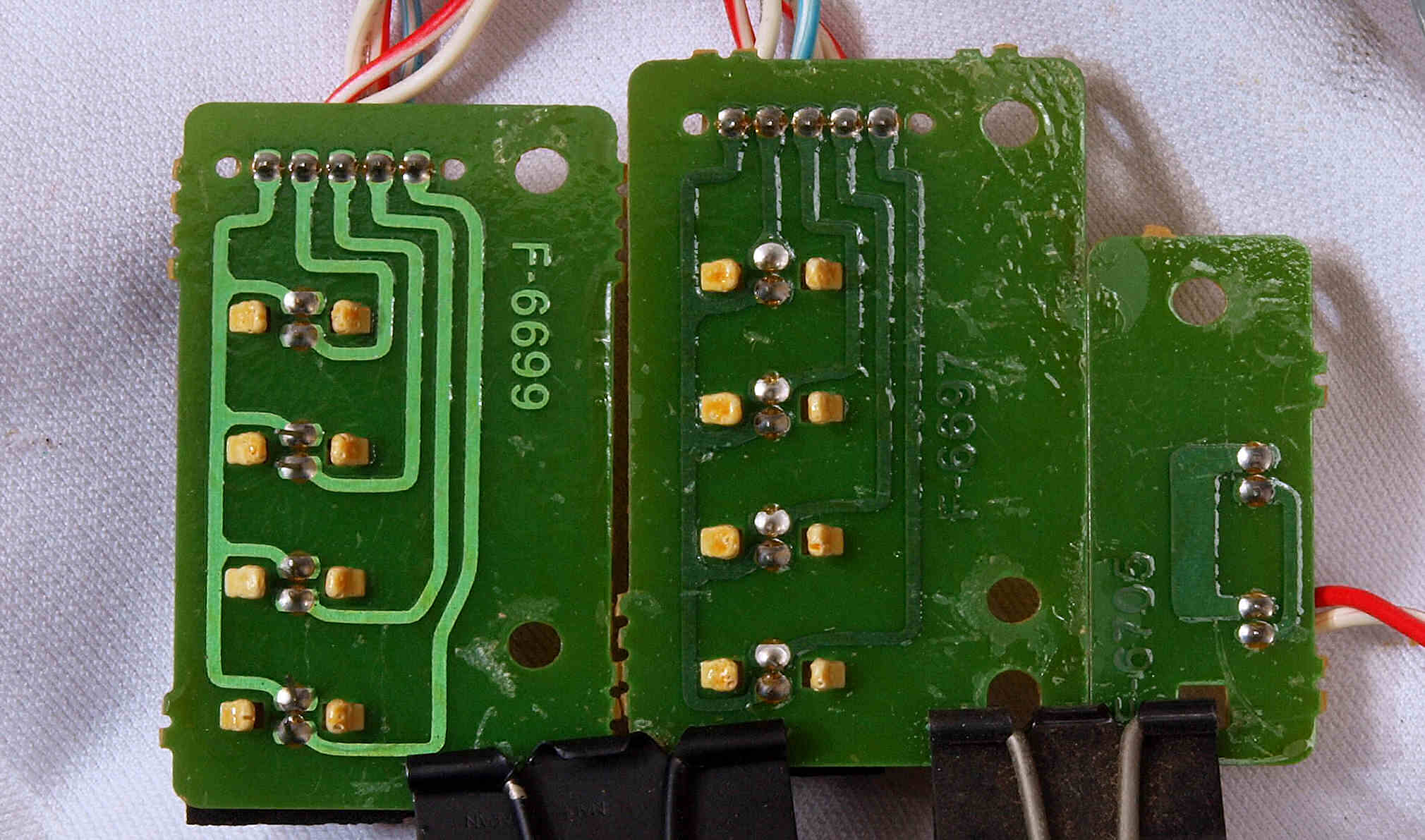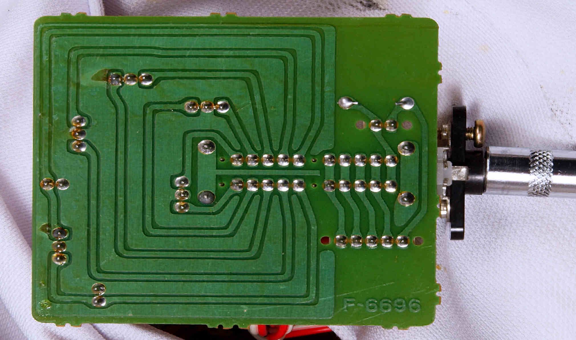 C15. 修理(半田補正)後 Protector(SP接続リレー)基板裏、 全半田やり直し。