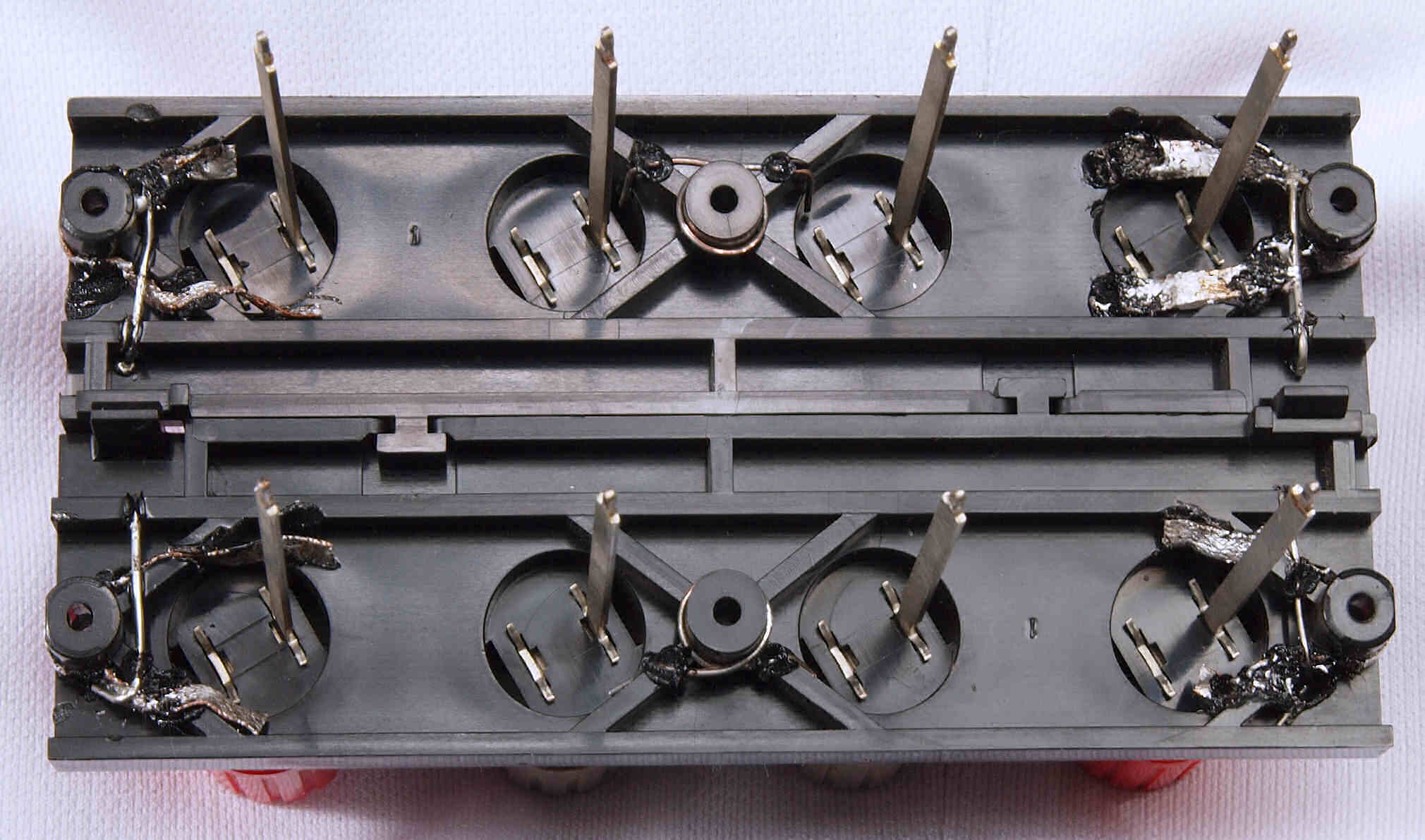 C24. 修理(半田補正)後 R側・ドライブ終段TR(トランジスター)基板裏、 全半田やり直し。