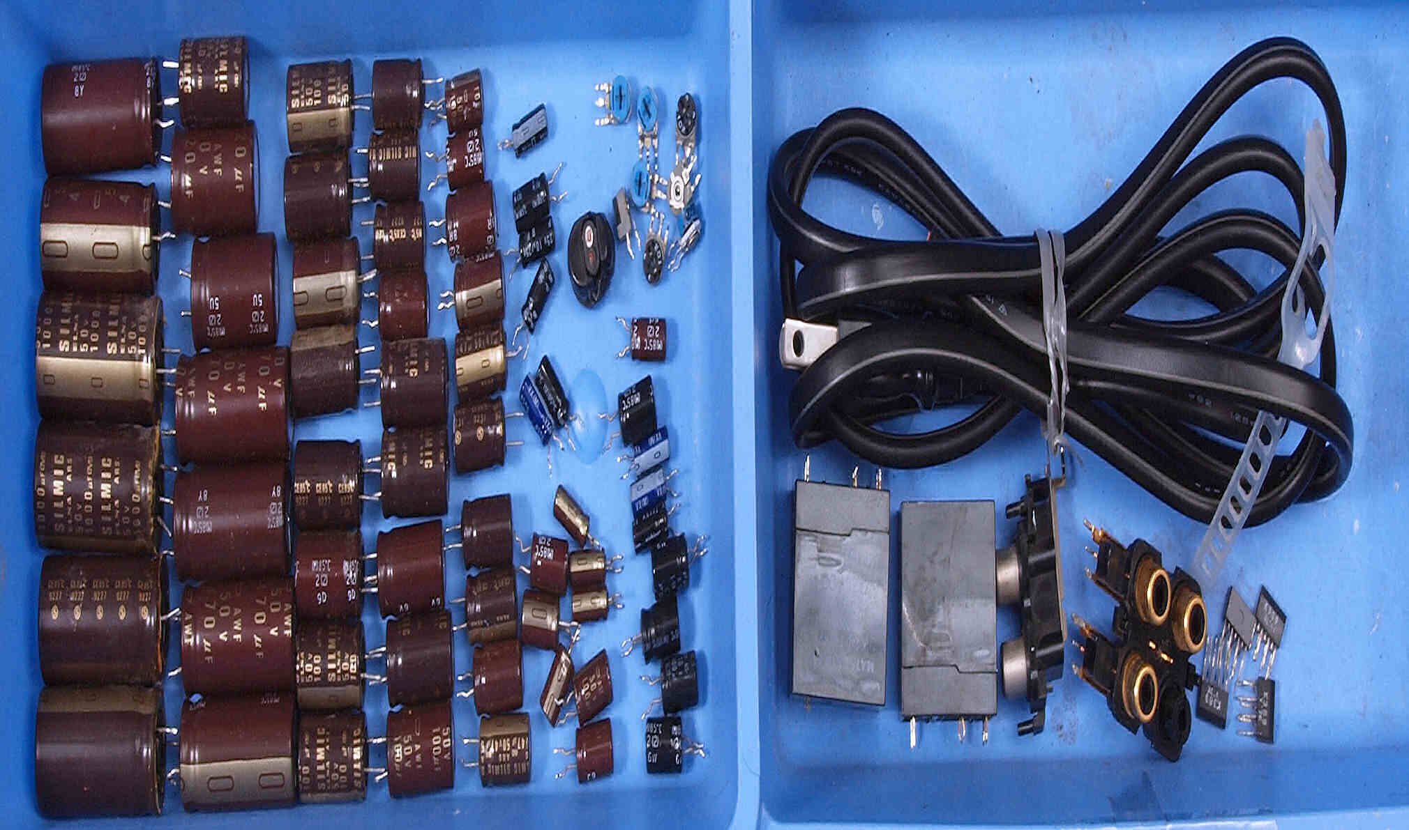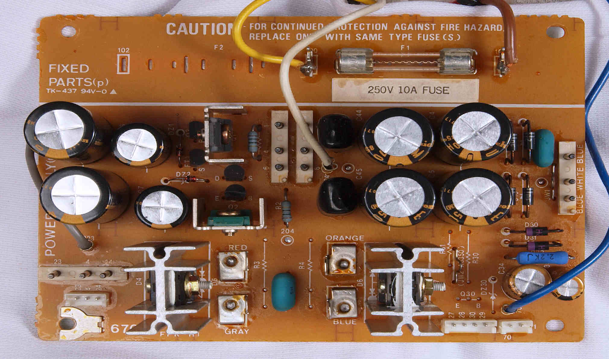 C13. 修理後 Protector(SP接続リレー)基板。 接続リレー2個、電解コンデンサー10個交換