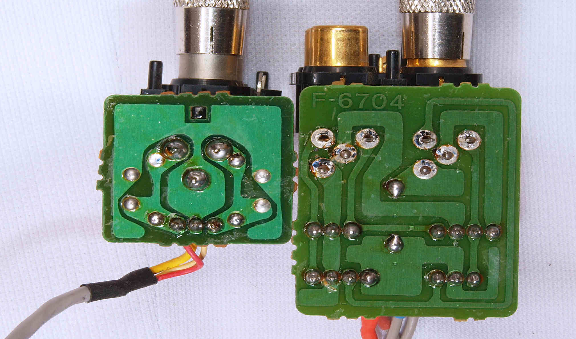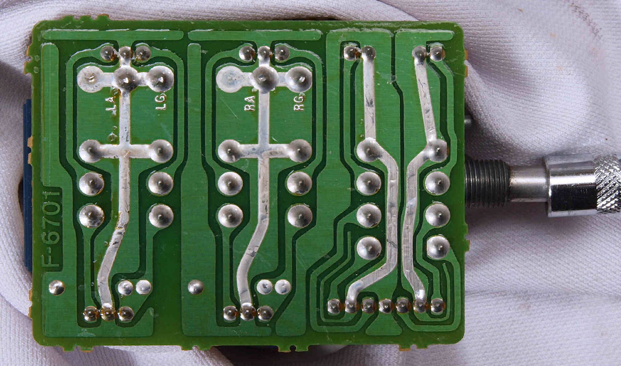 C87. 修理(半田補正)後 Prosessor Return RCA端子基板裏、 Power AMP Direct RCA端子基板裏。 全半田やり直し。