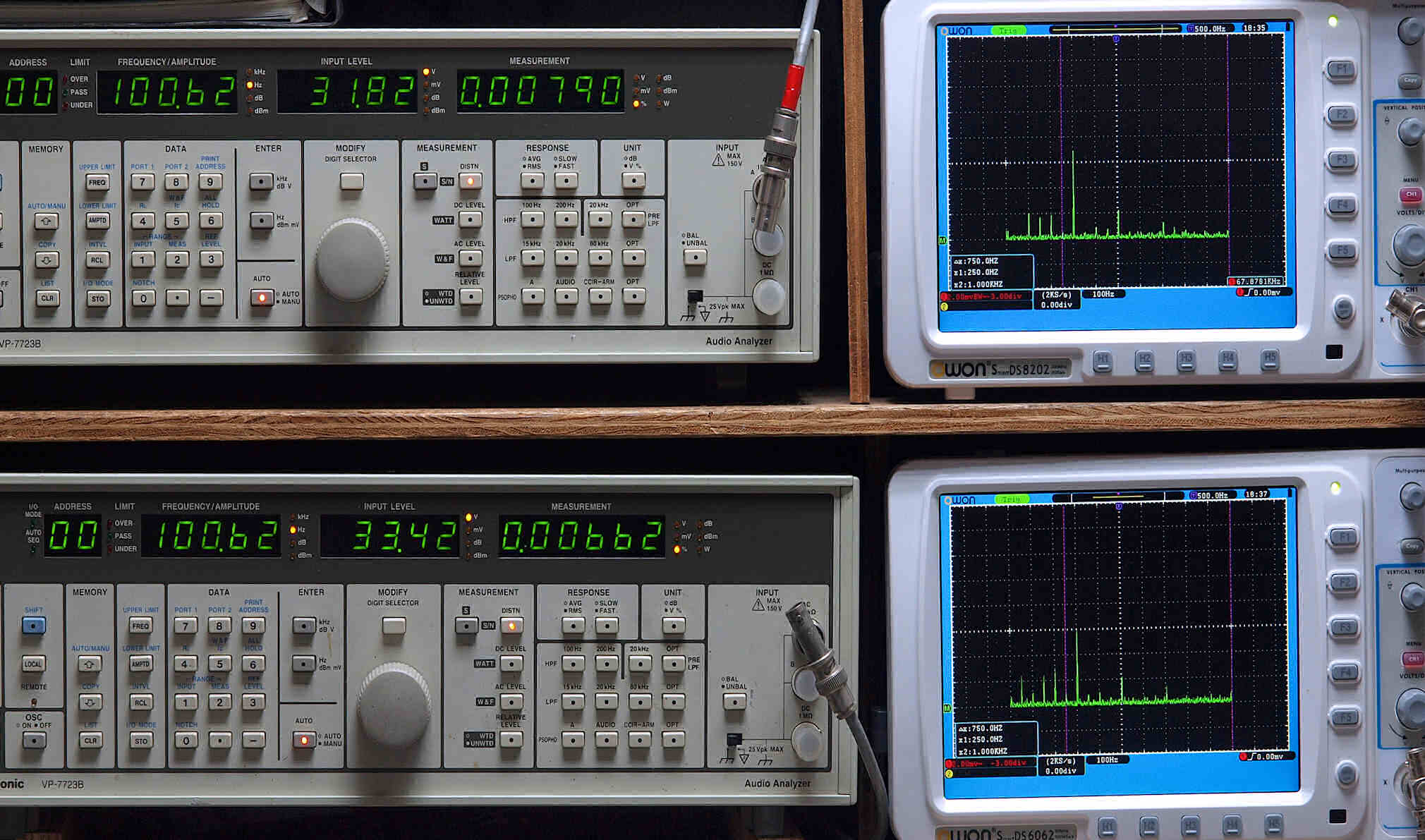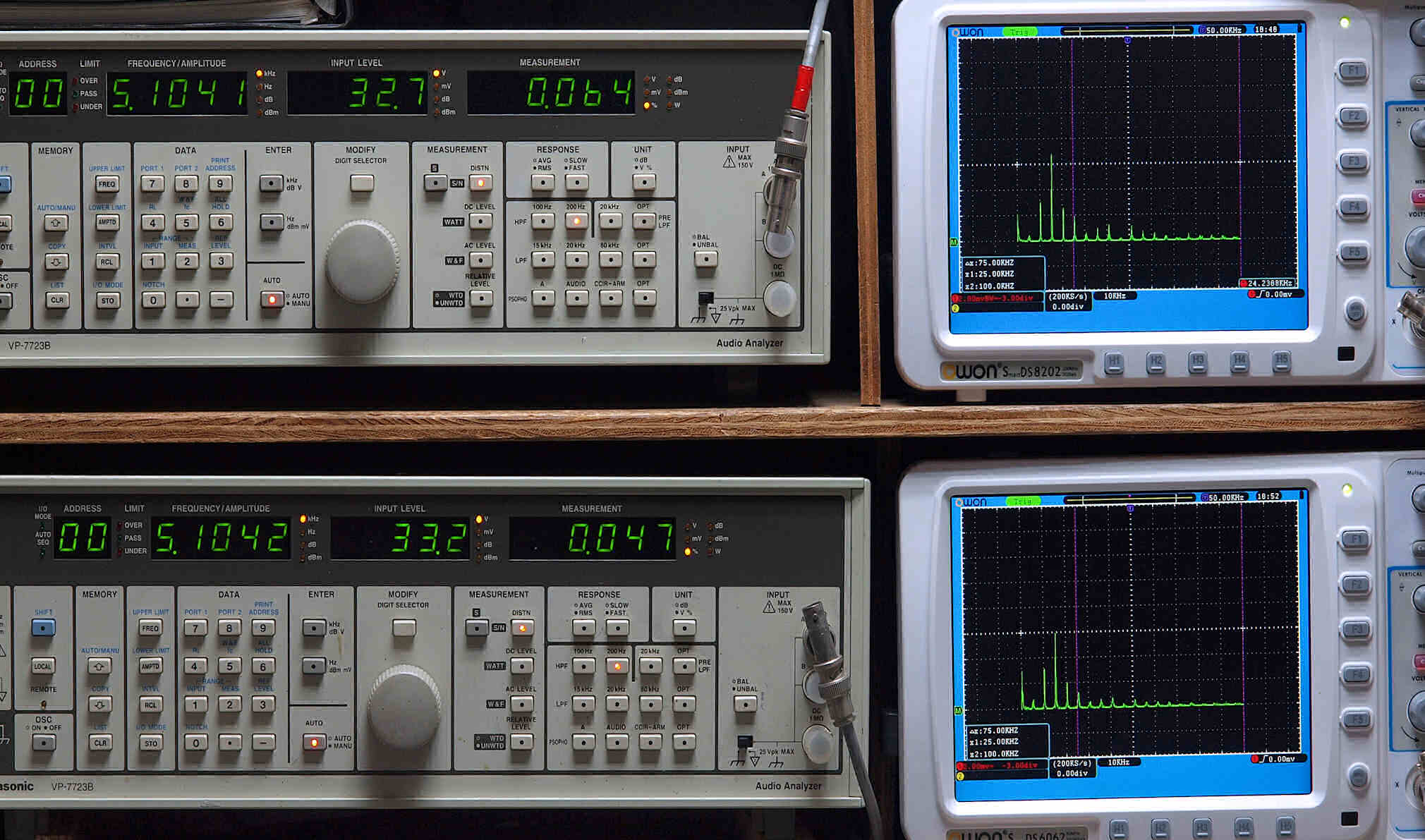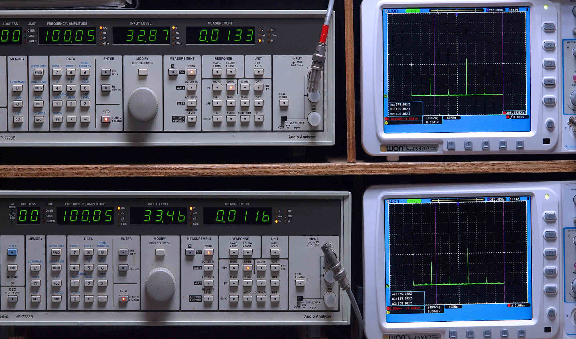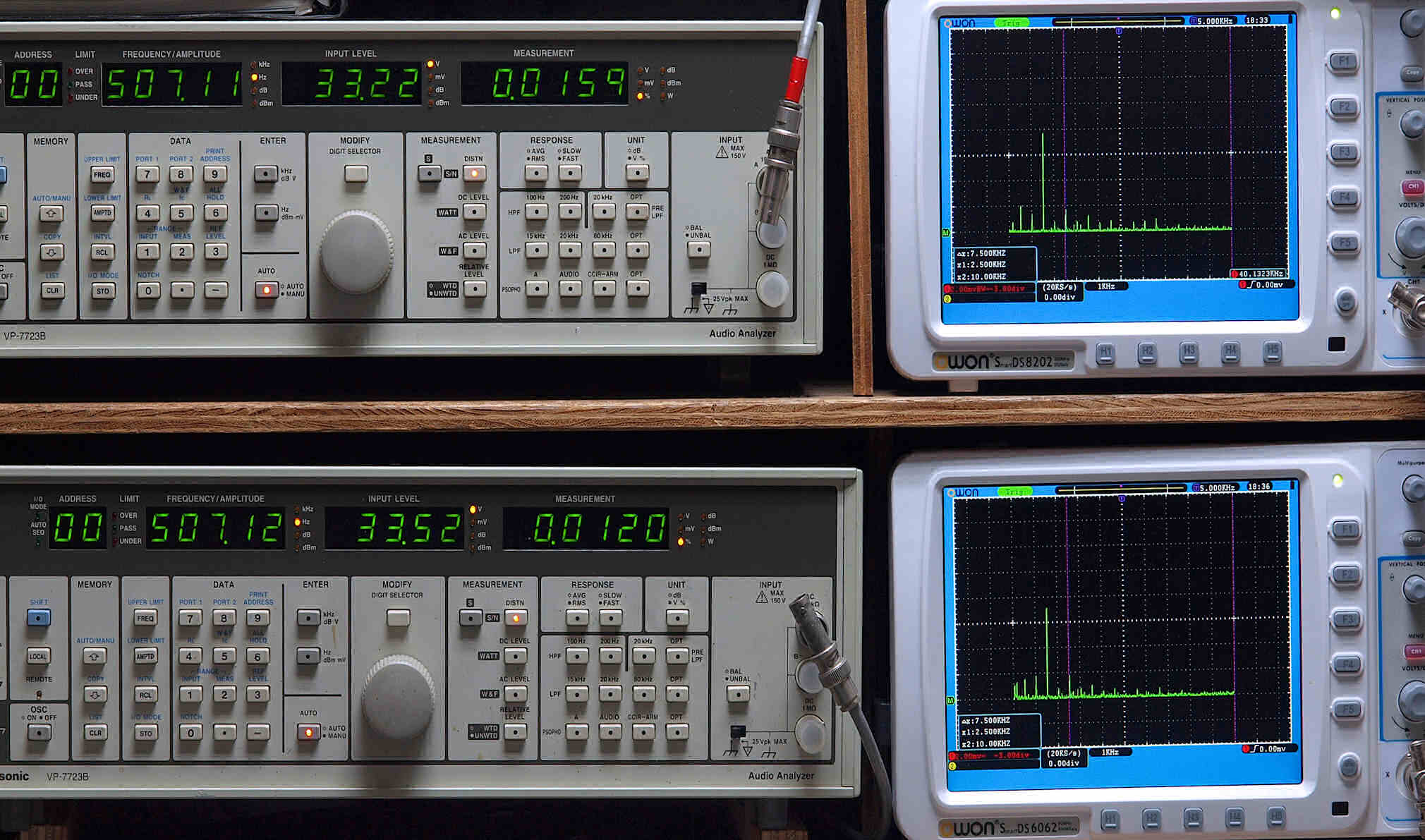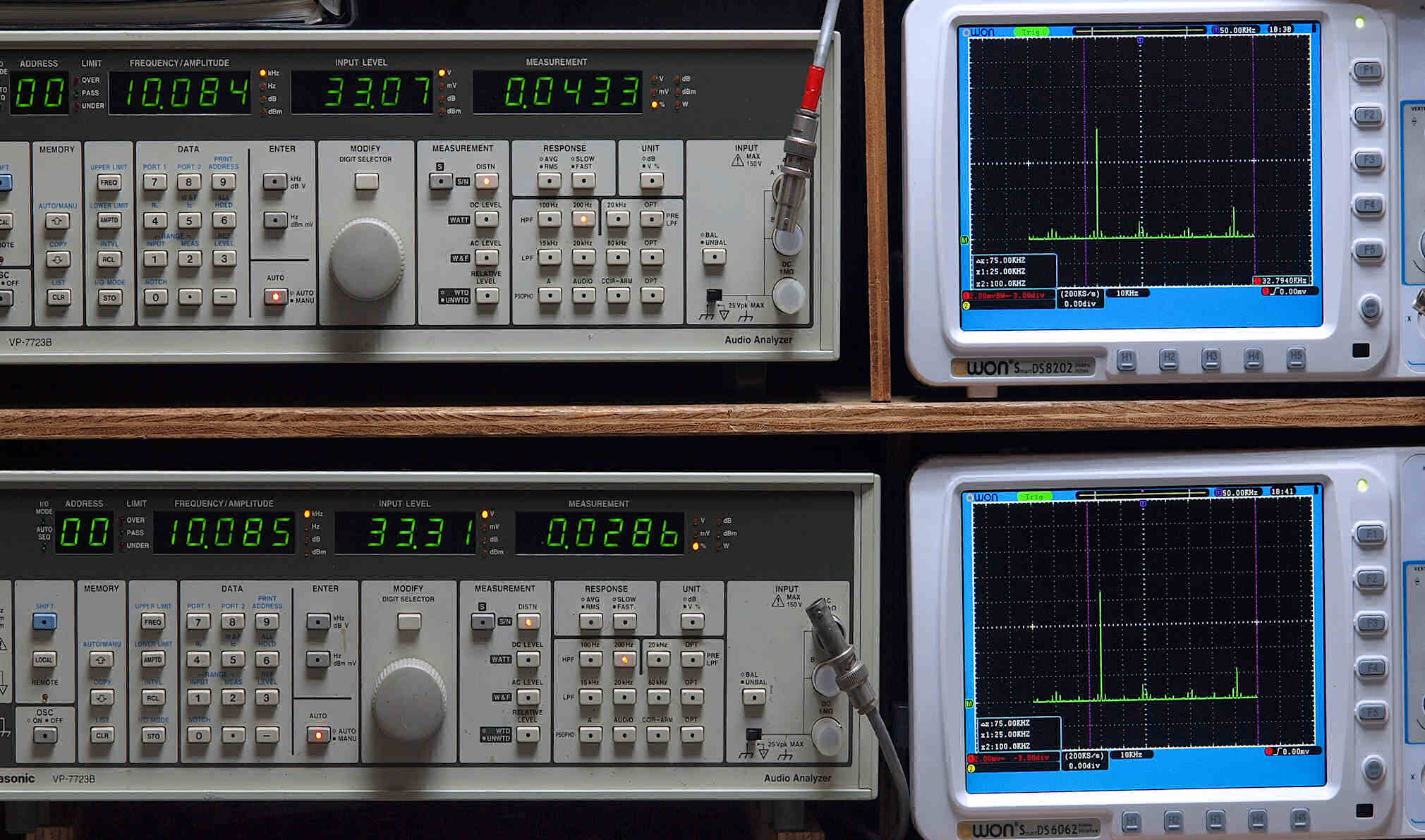 よって、ダイアル設定出力レベルより低くなります。測定機器の仕様や整備の様子はこちら、「VP−7723B」「VP−7201A」。 FFT画面の見方はこちら。