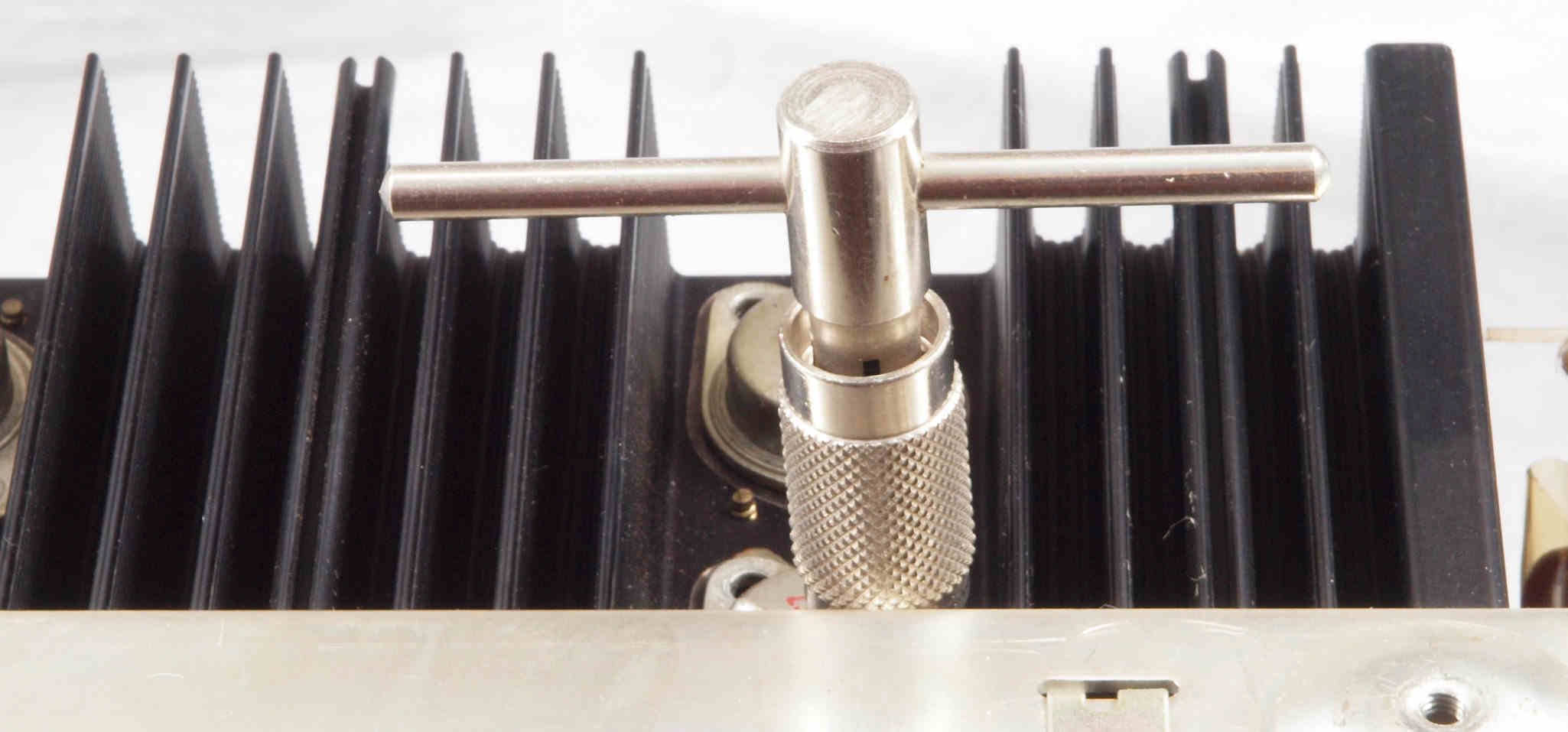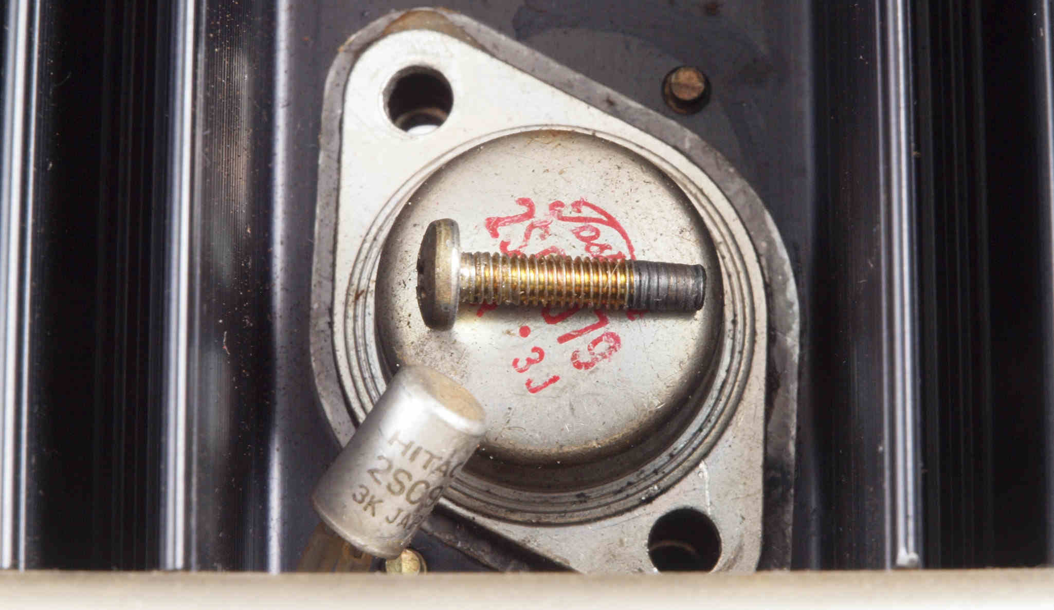 | C143. 修理中 L側 終段終段トランジスター。止めビスは交換し、ネジ山はタップで補正する。 | ||||||||||||||||||||||||||||||||||||||||||
