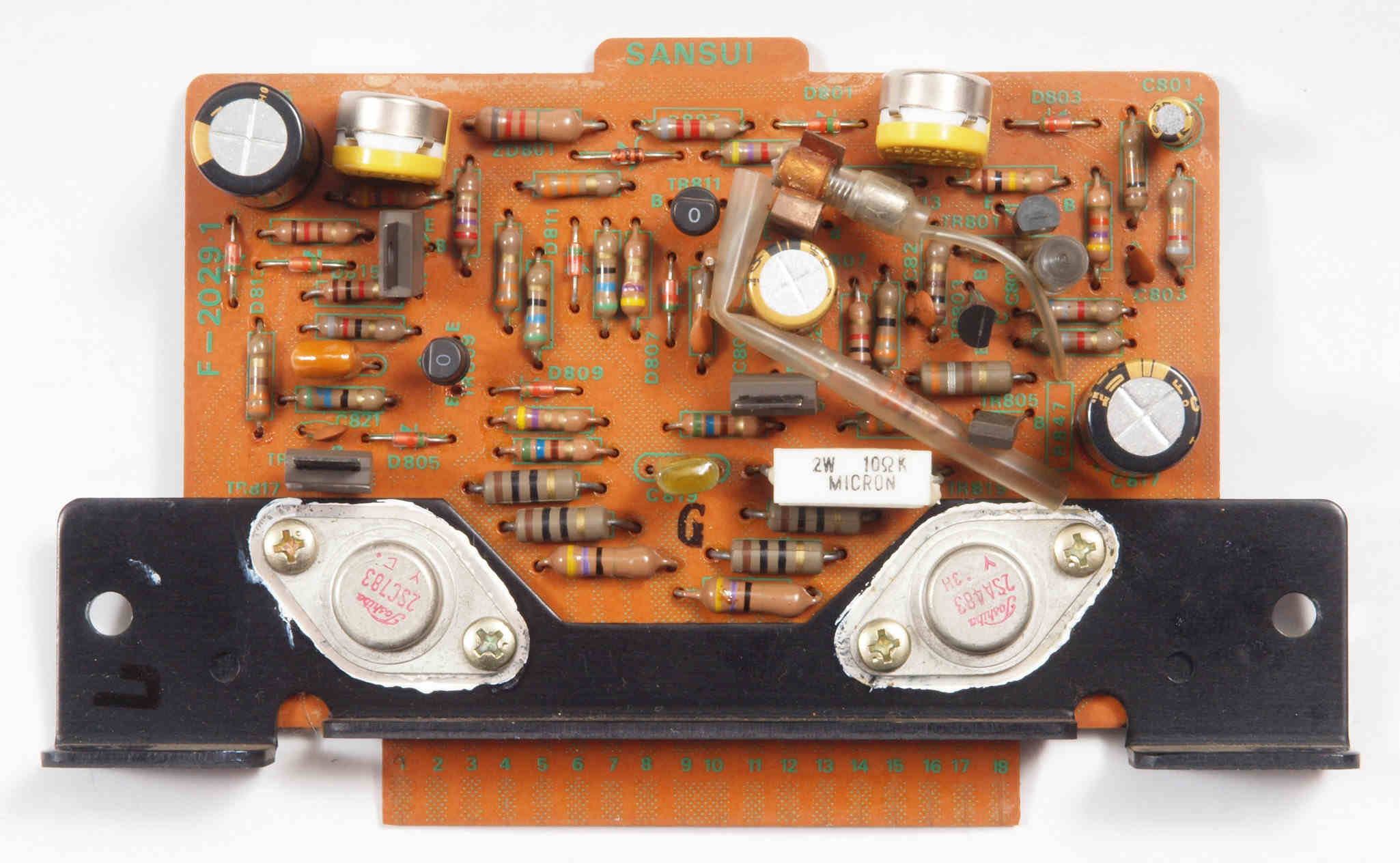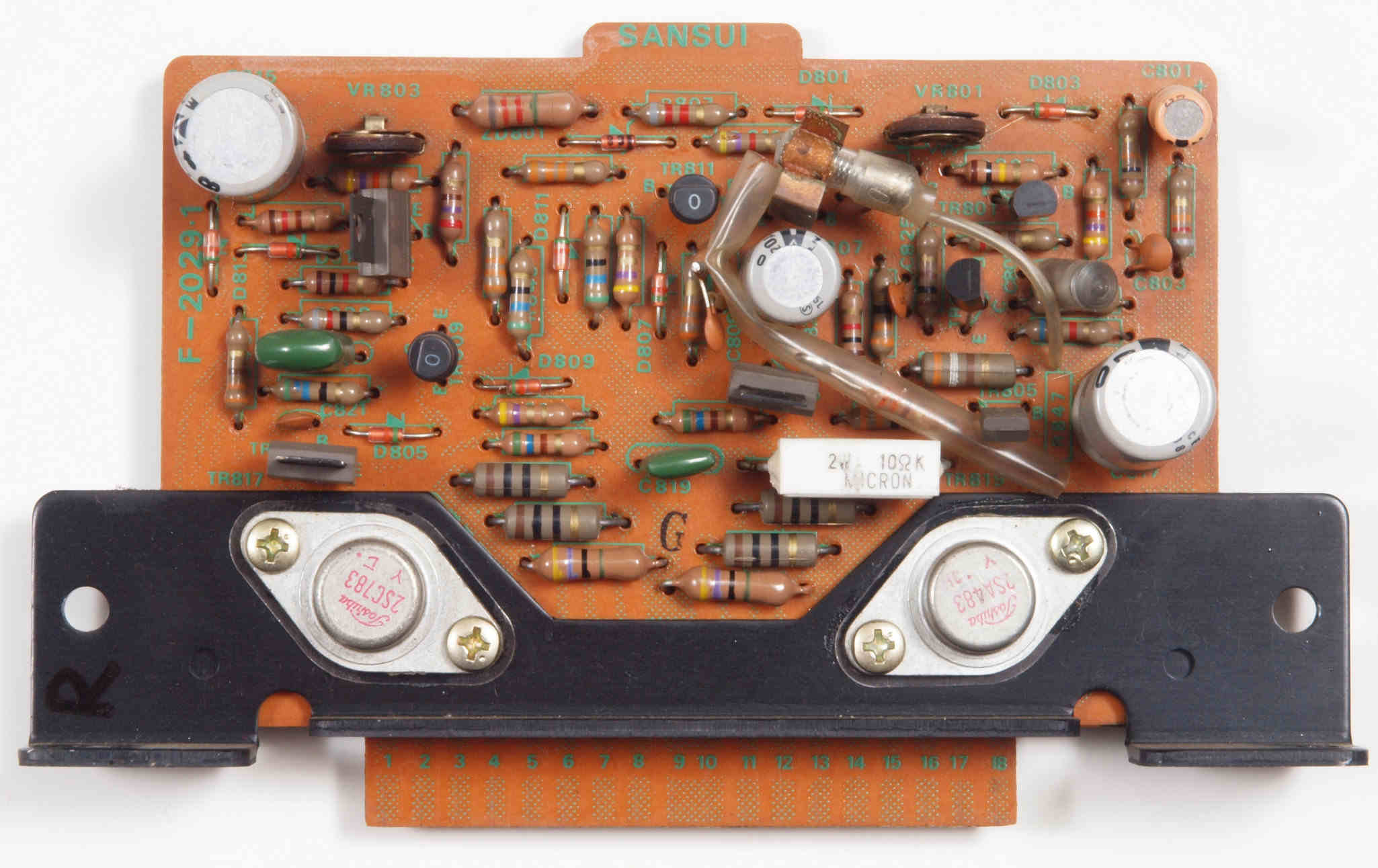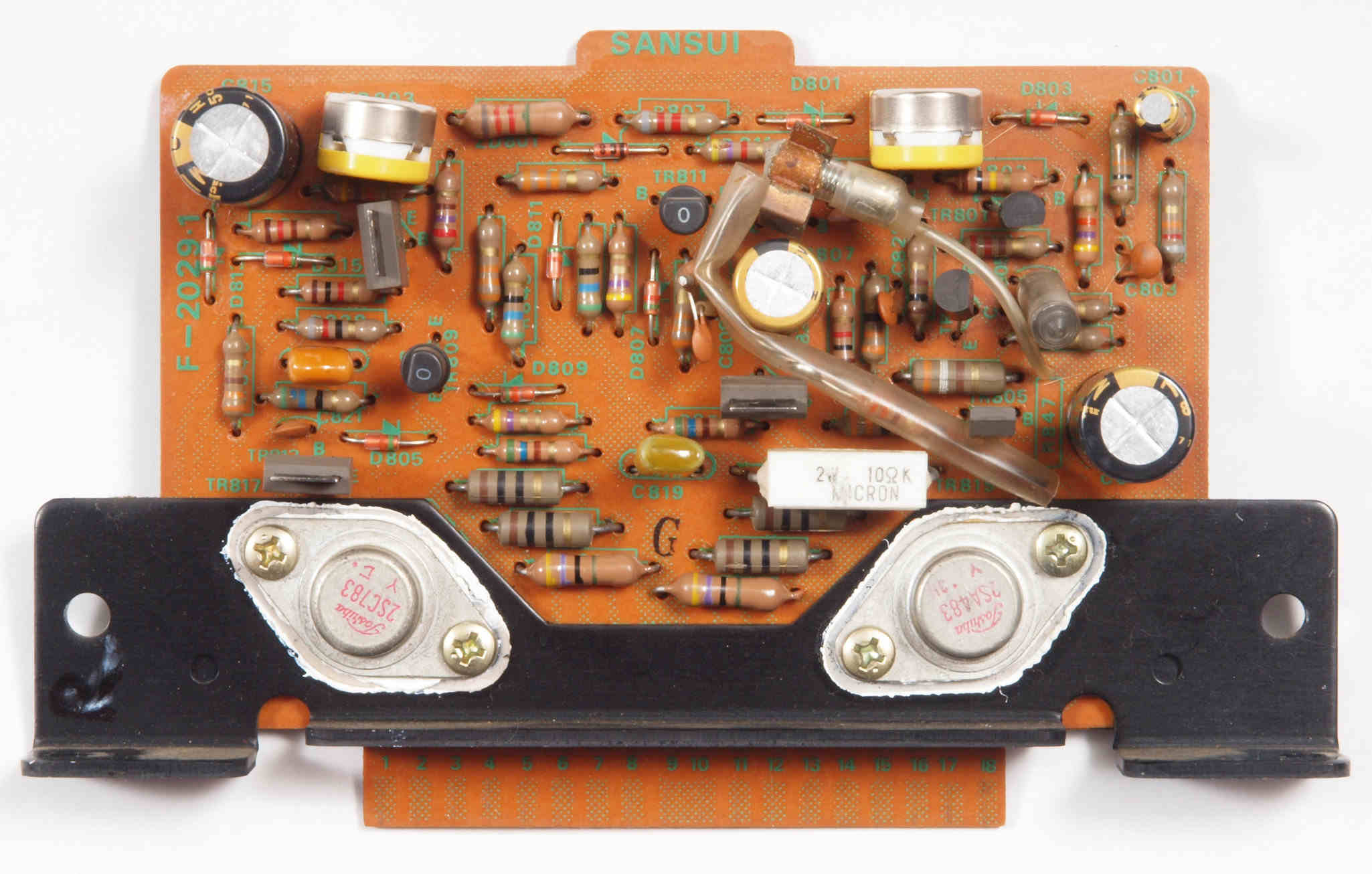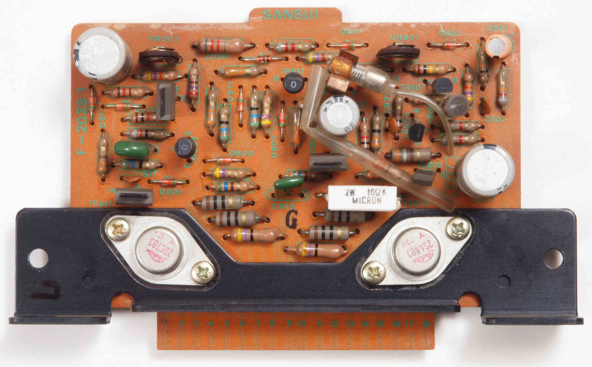 | C15. 修理中 L側 終段トランジスター。 熱でシリコングリスが流れ出し殆ど無い、テフロンシートに交換する。 | ||||||||||||||||||||||||||||||||||||||||||