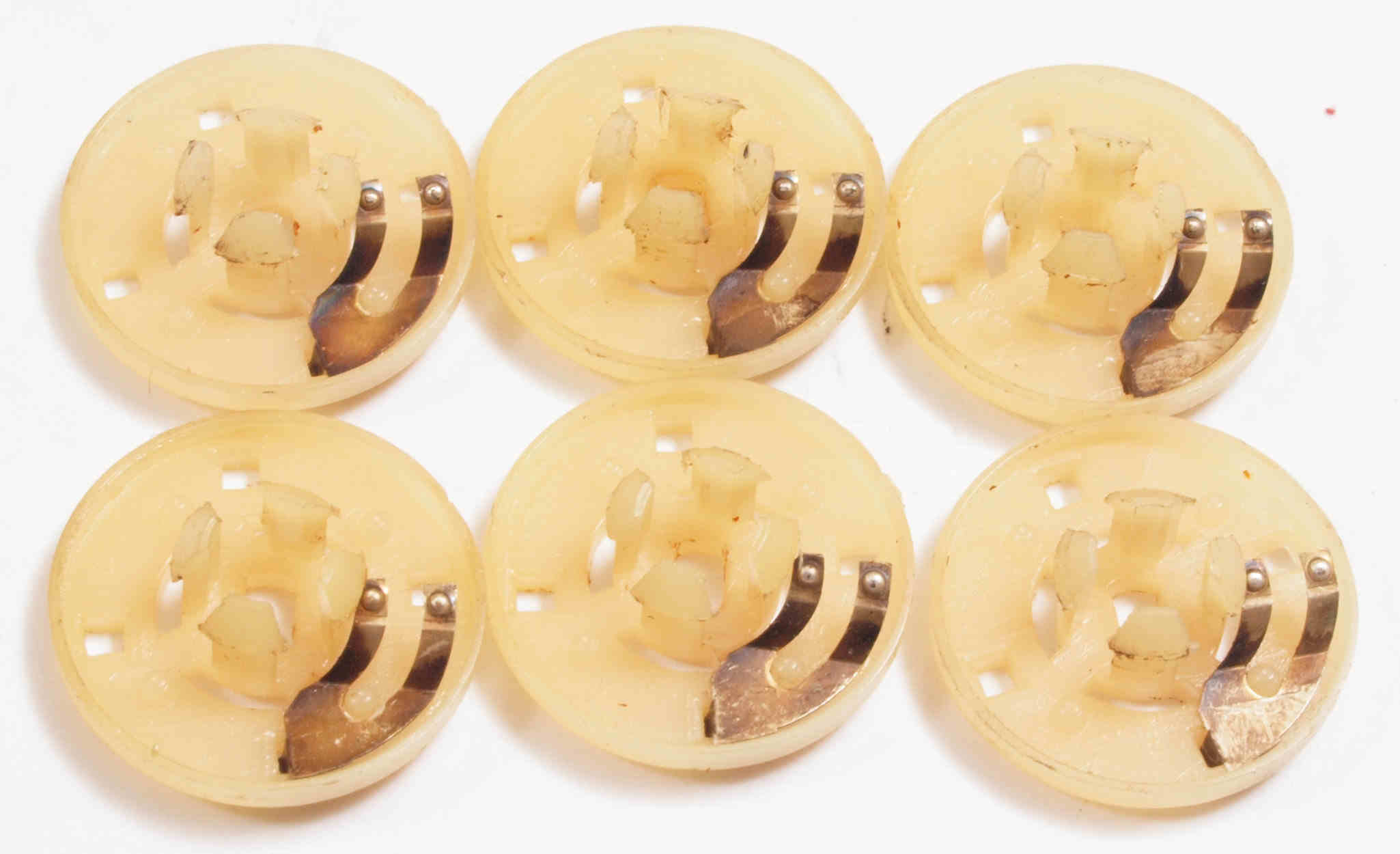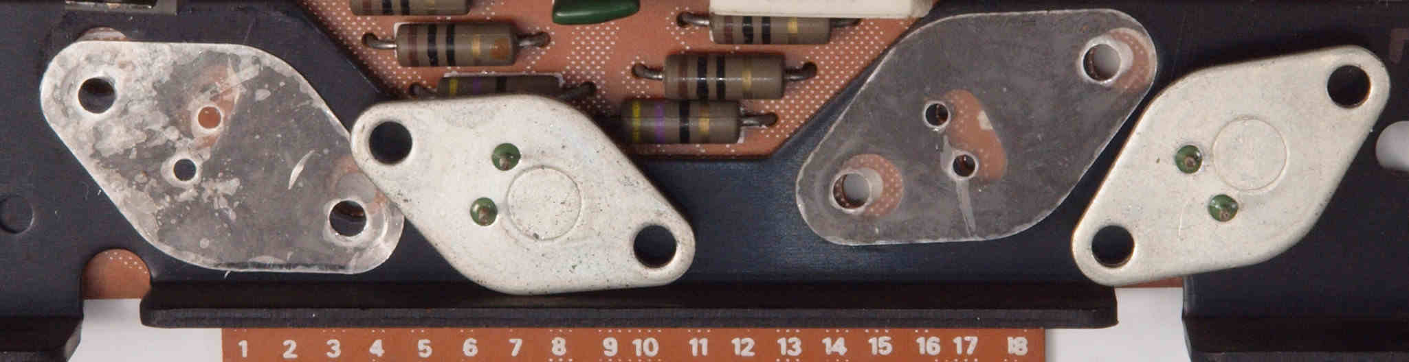 | CA2. 修理後 Mode−SWの接点。 一般的な接点復活材ではこの程度です。但し、強いのは基板を犯す物が有るので注意! 粗い研磨材でキズを付けると、接触面積が減るので注意する。 |