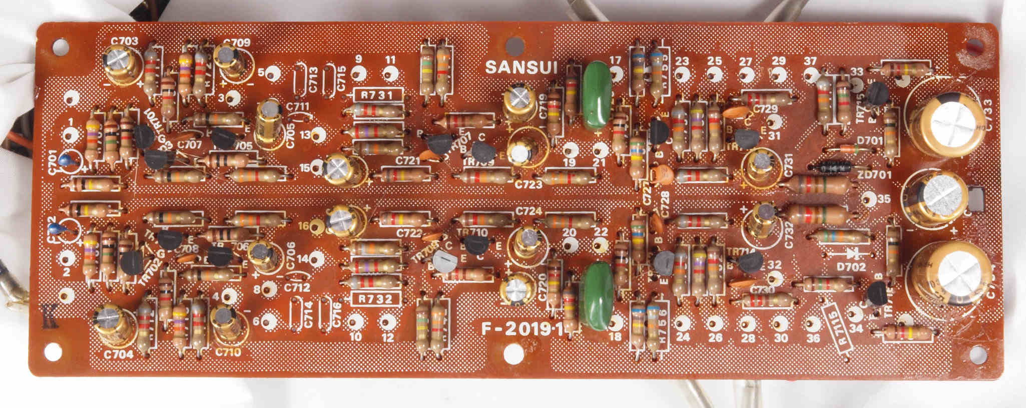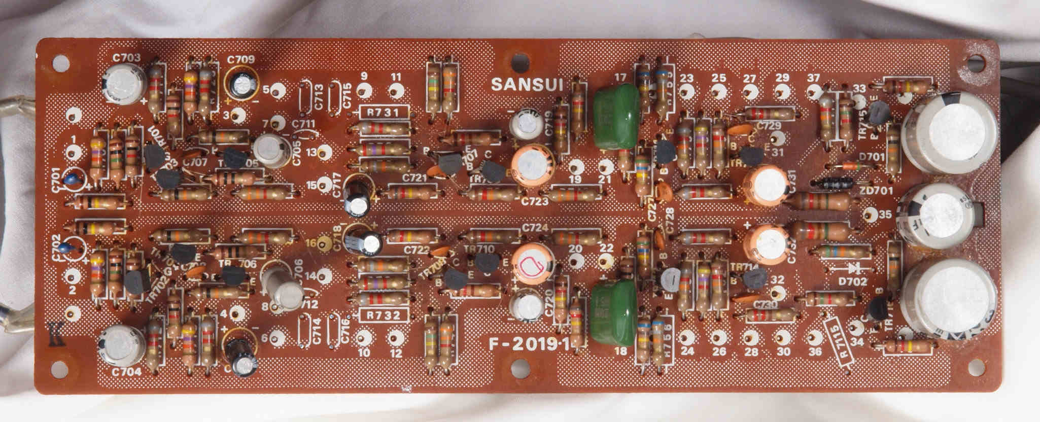 | C62. 修理後 EQ−AMP基板 TR(トランジスター)4個、電解コンデンサー12個交換 | ||||||||||||||||||||||||||||||||||||||||||