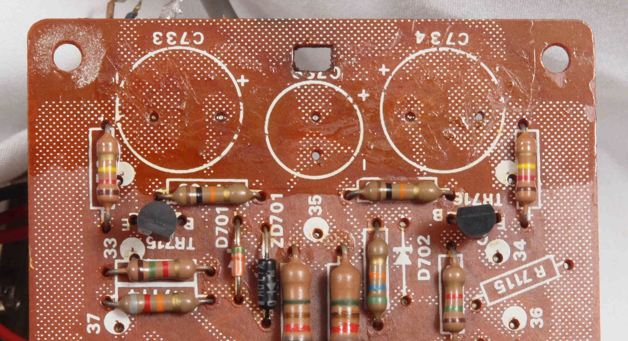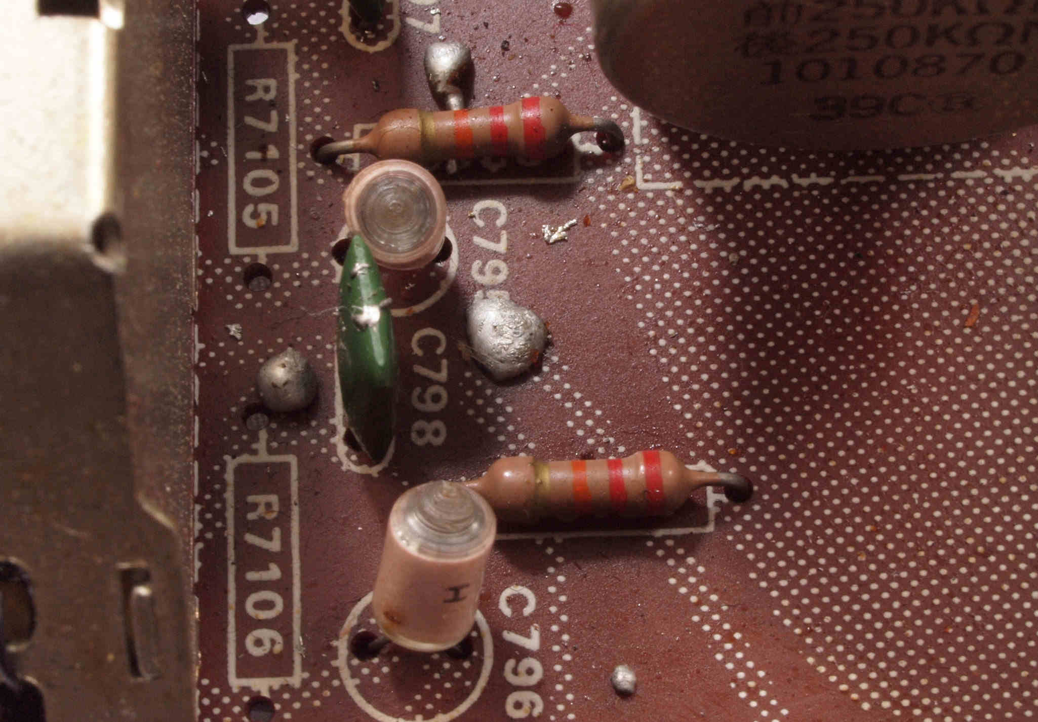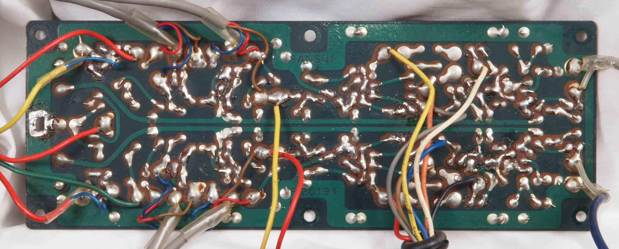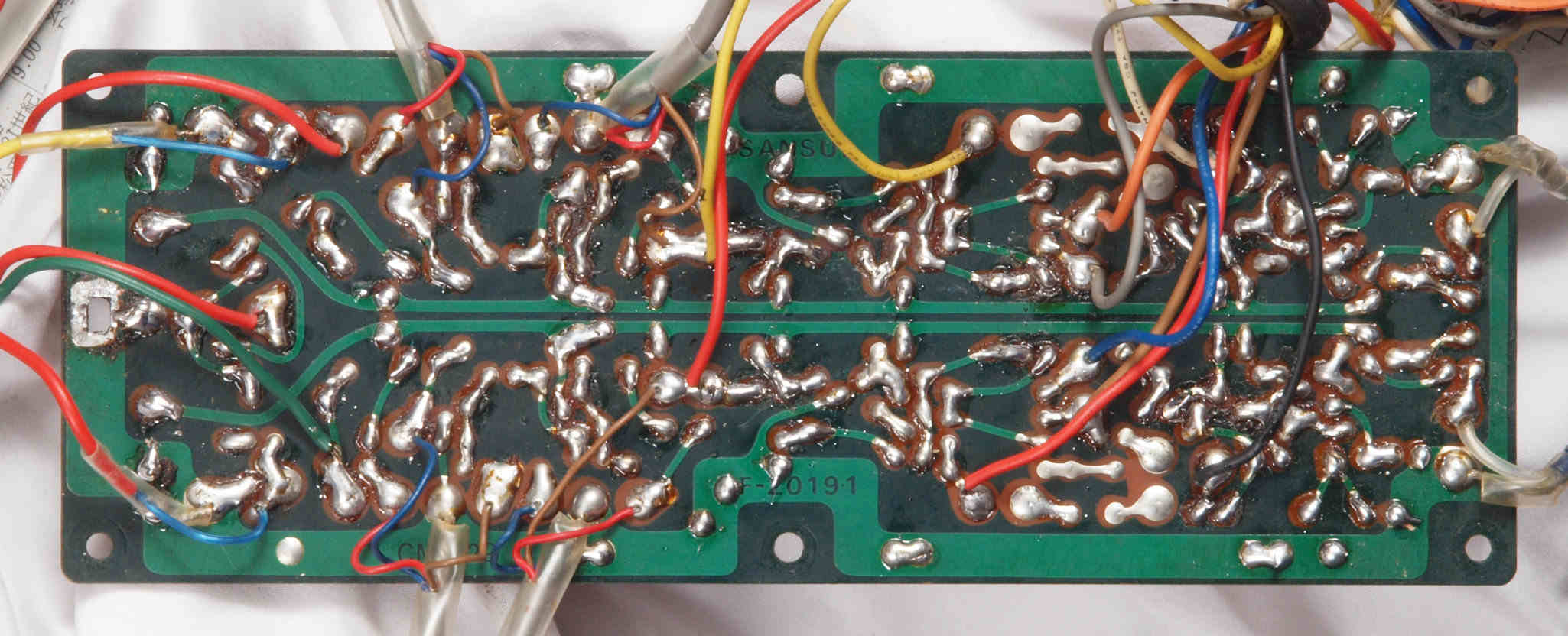 | C82. 修理前 SW基板裏、手付けなので劣化は非常に少ない | ||||||||||||||||||||||||||||||||||||||||||