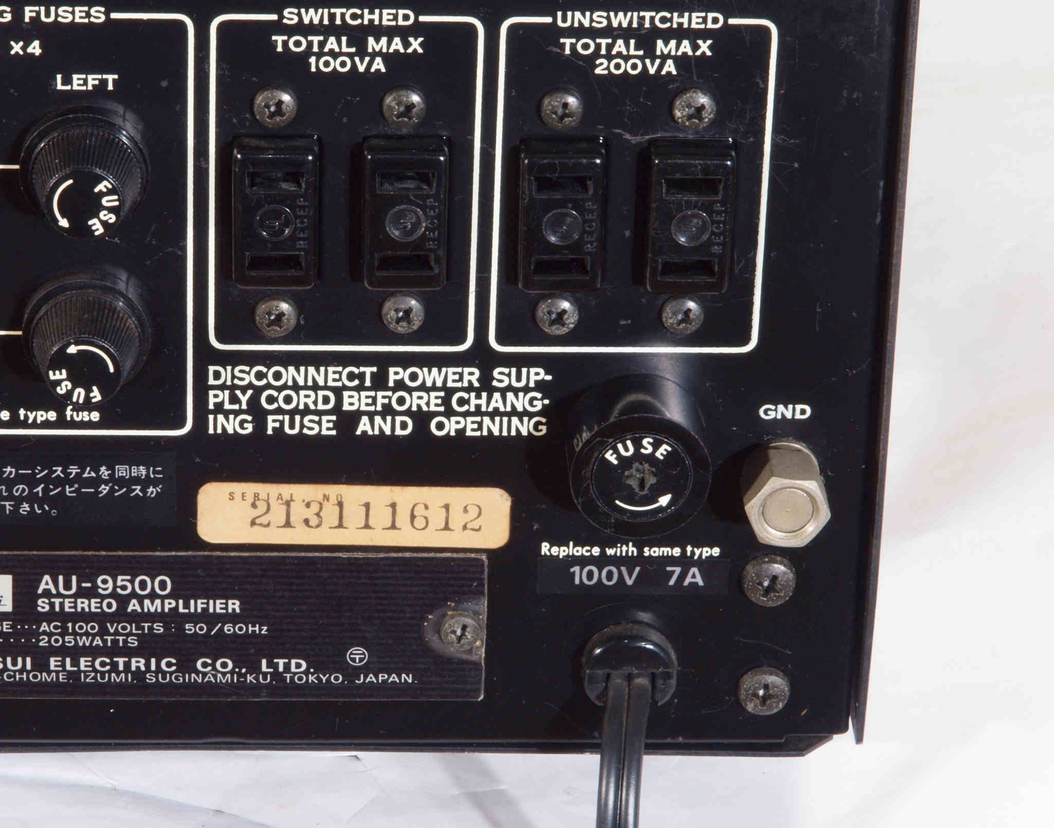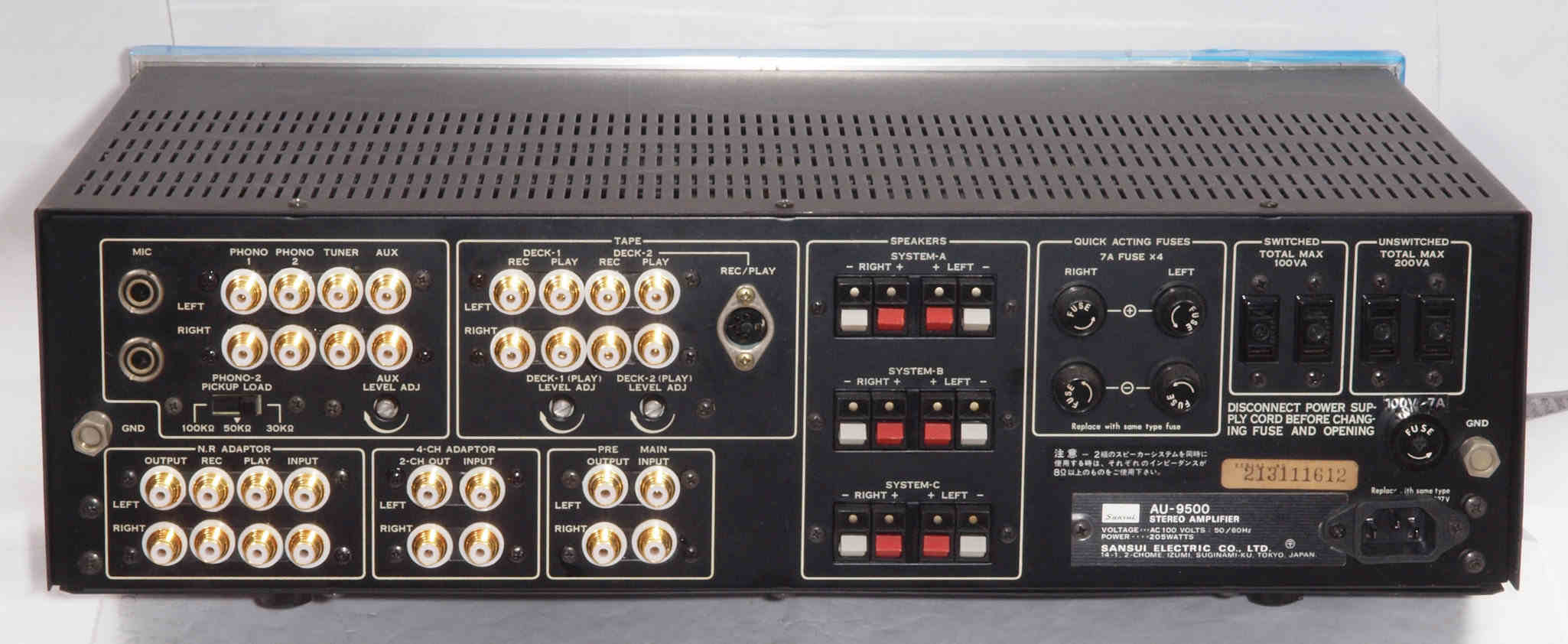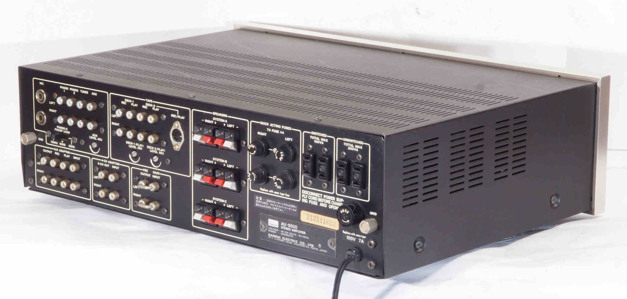 E. 調整・測定 F. 修理費 130,000円 オーバーホール修理。 Y. ユーザー宅の設置状況 S. SANSUI AU−9500 の仕様(マニアル・カタログより) |