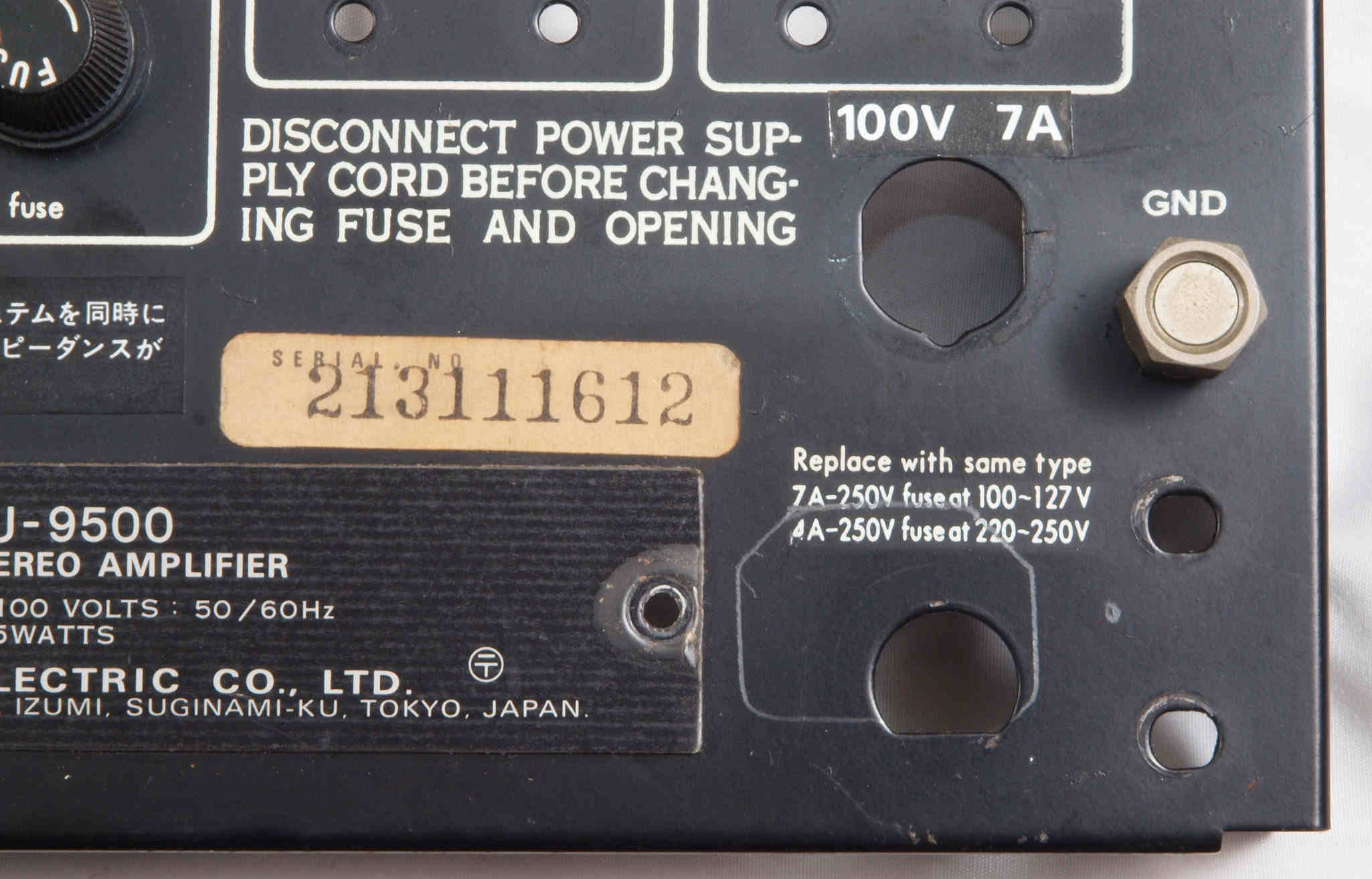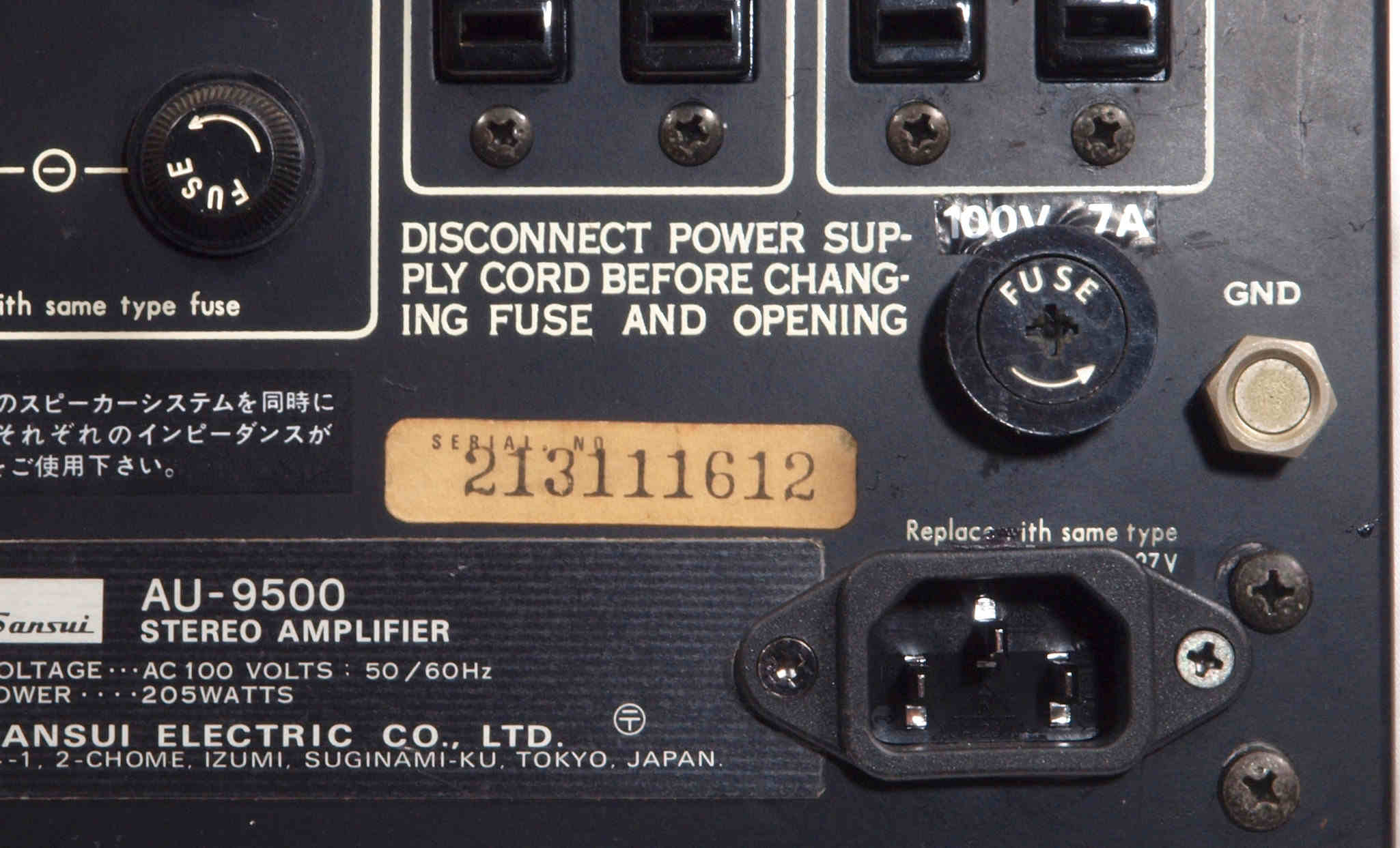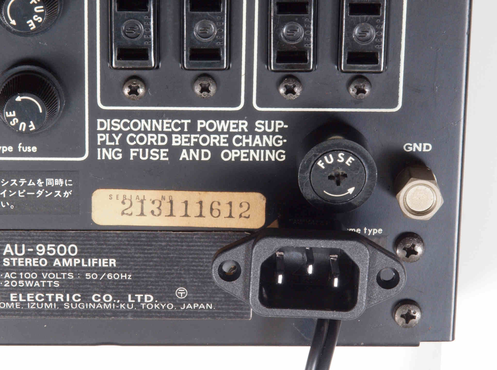 E. 調整・測定 F. 修理費 130,000円 オーバーホール修理。 Y. ユーザー宅の設置状況 S. SANSUI AU−9500 の仕様(マニアル・カタログより) |