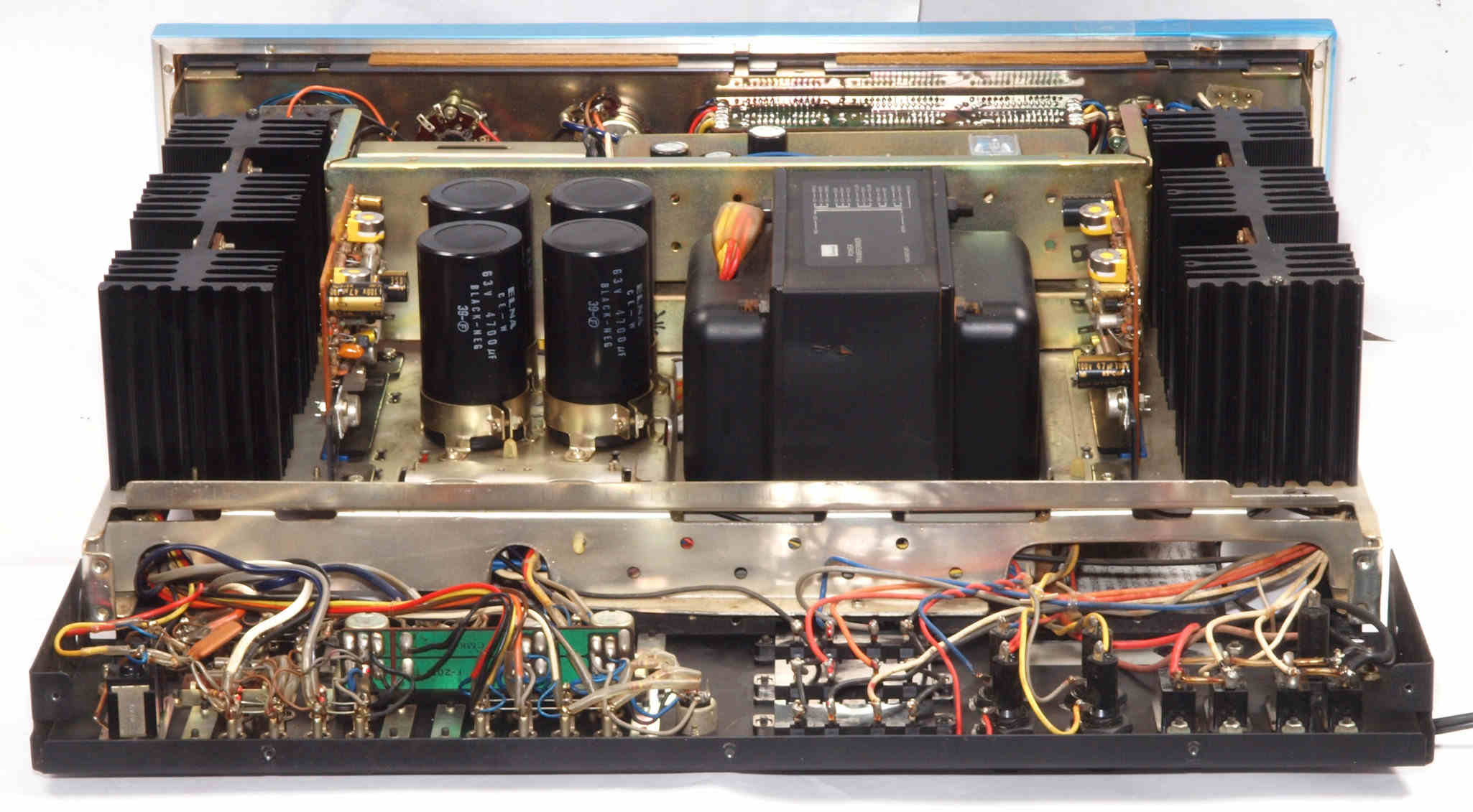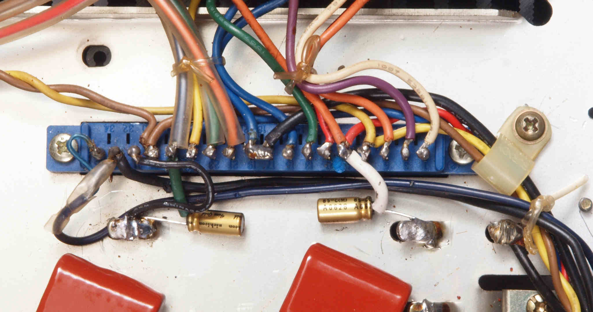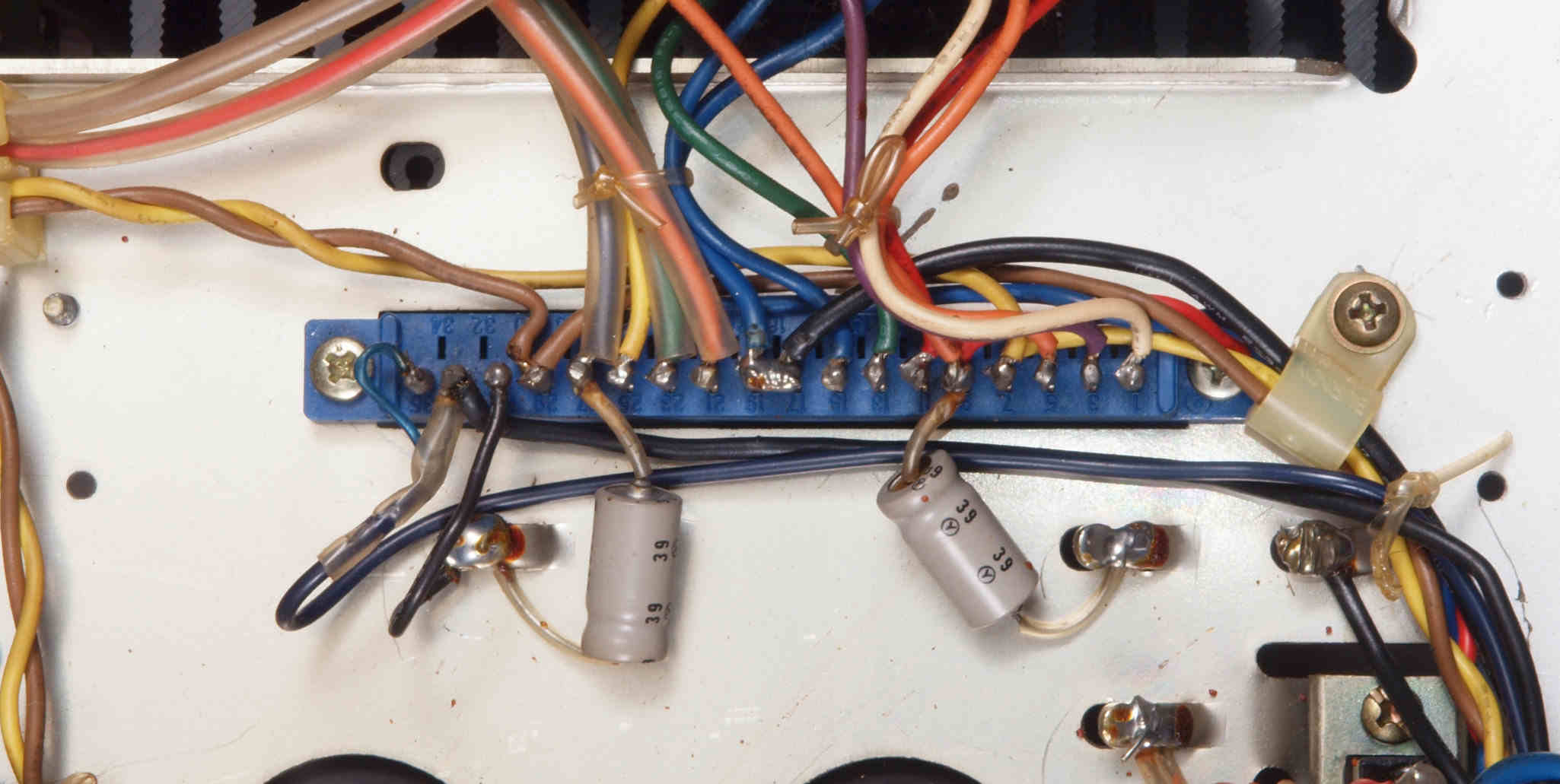 | CH2. 修理後 R側終段基板コネクタ下電解コンデンサー。電解コンデンサー2個交換。 | ||||||||||||||||||||||||||||||||||||||||||