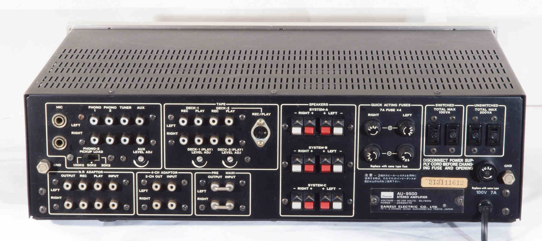 | S. SANSUI AU−9500 の仕様(マニアル・カタログより) | ||||||||||||||||||||||||||||||||||||||||||