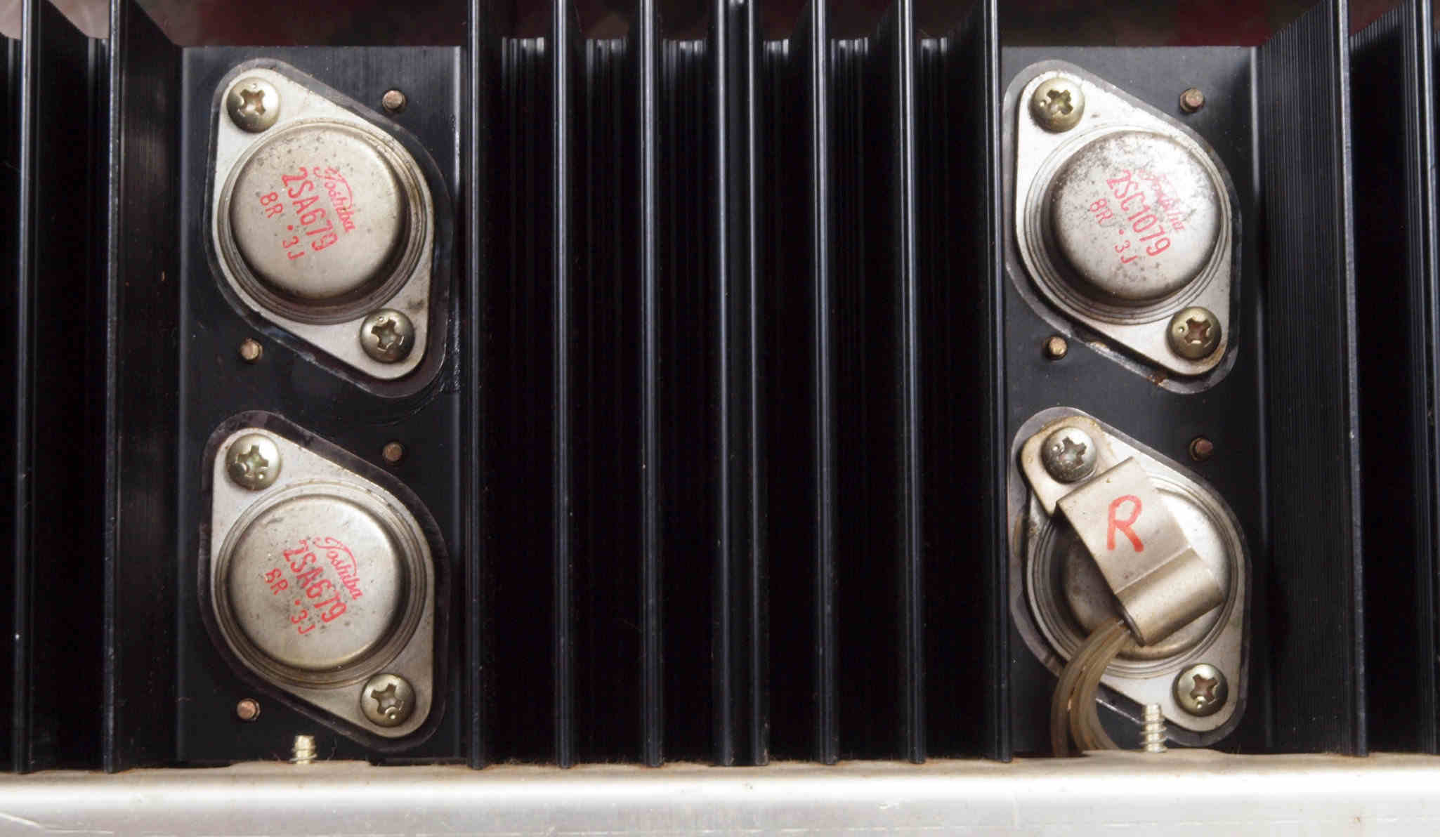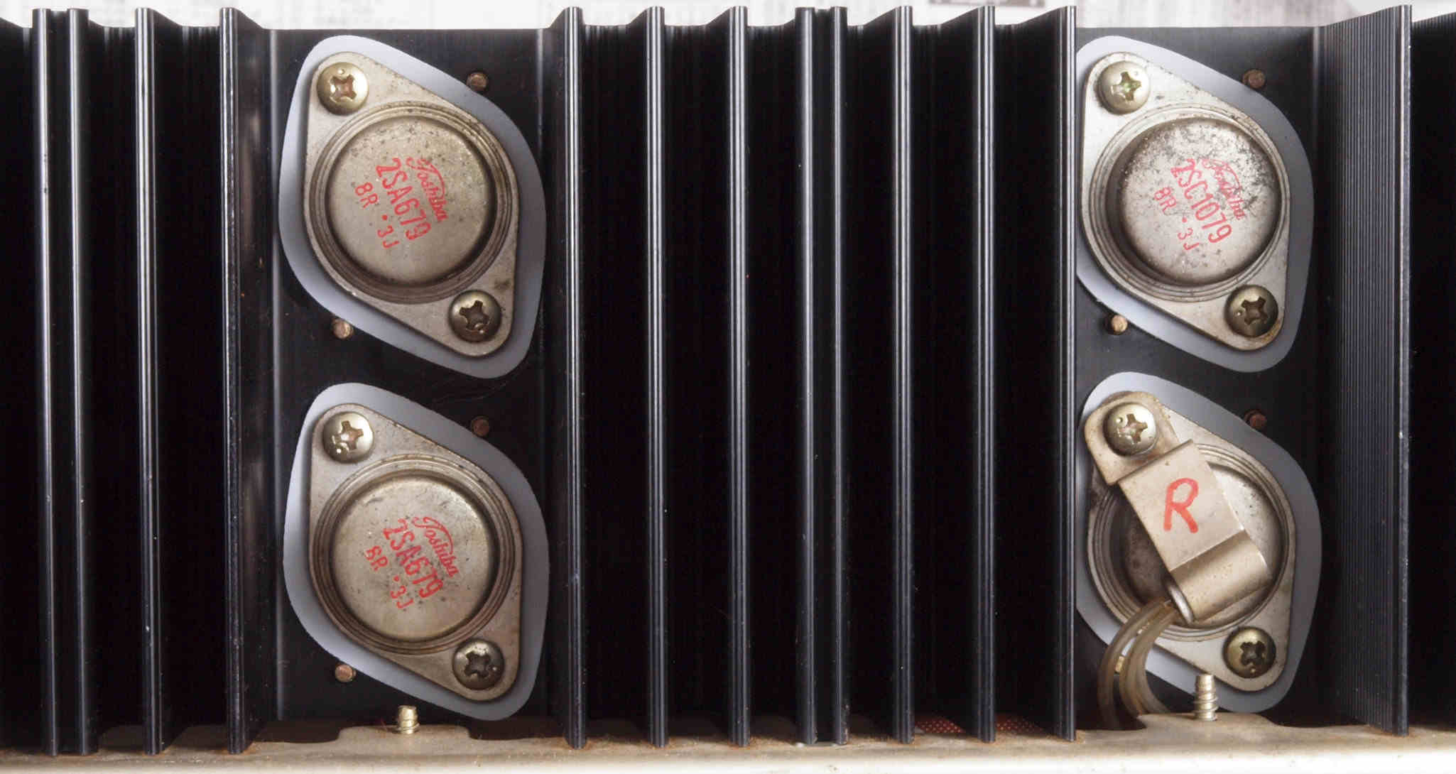 | C. 修理状況。 画像をクリックすると、大きく(横幅2050ドット)表示されます。 C11. 修理前 R側 終段トランジスター。 |