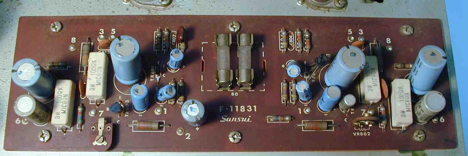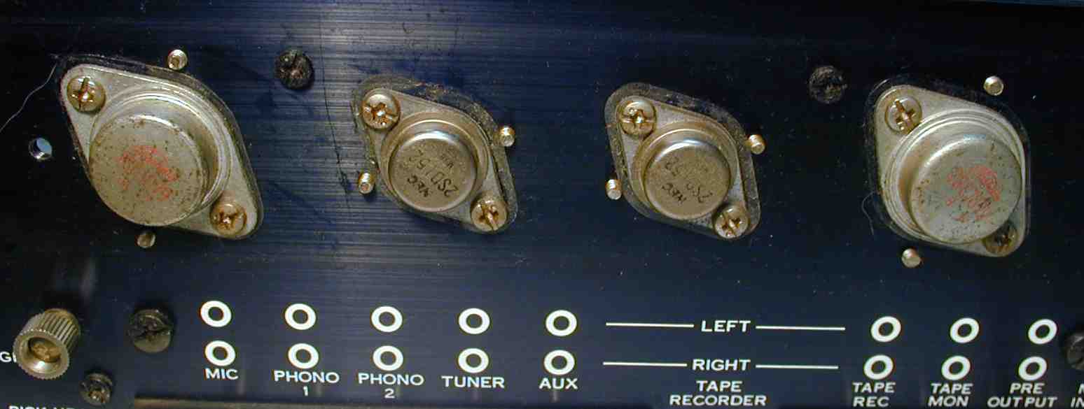 2. 右−終段TR(トランジスター)、交換してある、熱で溶けだし、シリコングリスも無い
