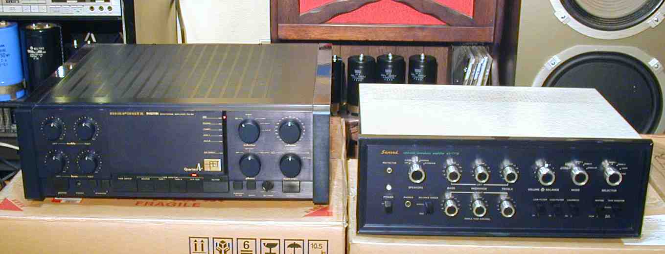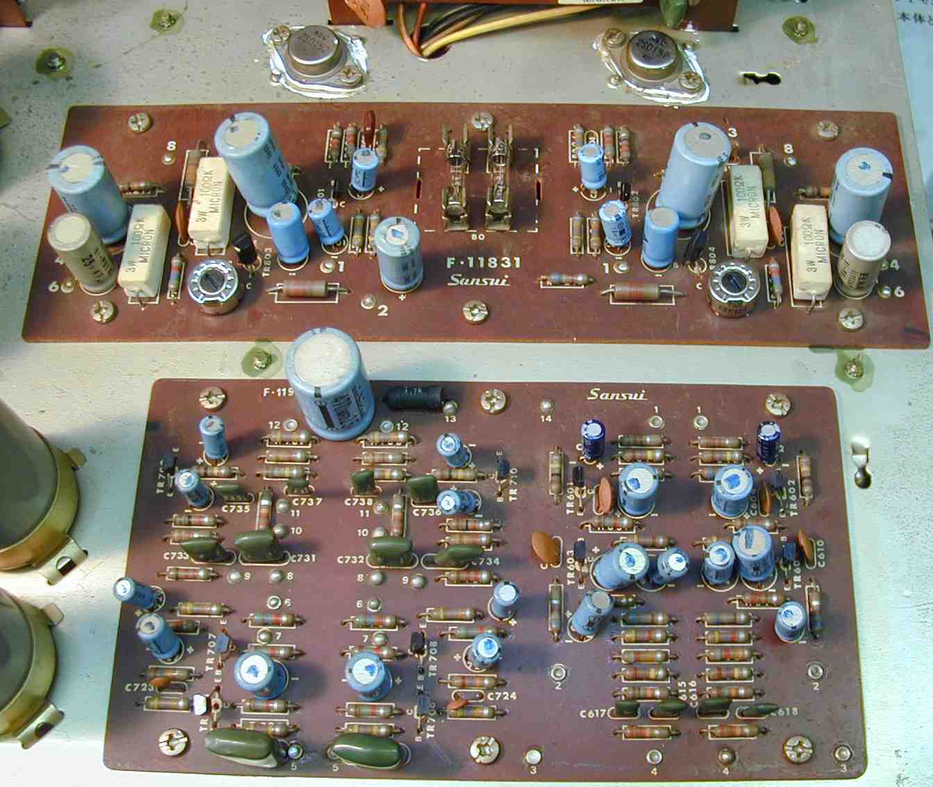 8.  修理完了した、プリドライブ基板=上、フラットAMP+EQ−AMP基板=下