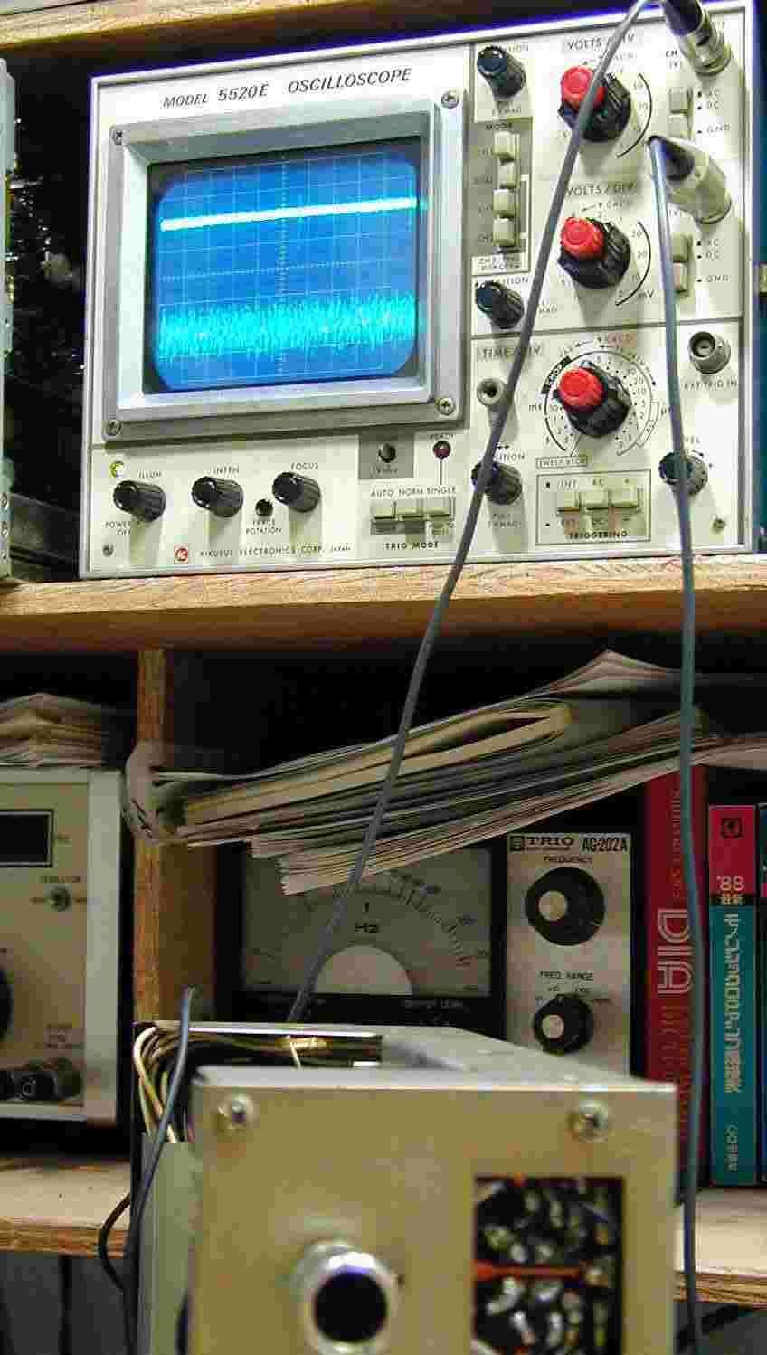 | 13. 入出力波形、出力はSP端子で測定、縦目盛り、出力=10V/Cm 入力=0.5V/Cm | ||||||||||||||||||||||||||||||||||||||||||||||||||||||||||||||||||||||