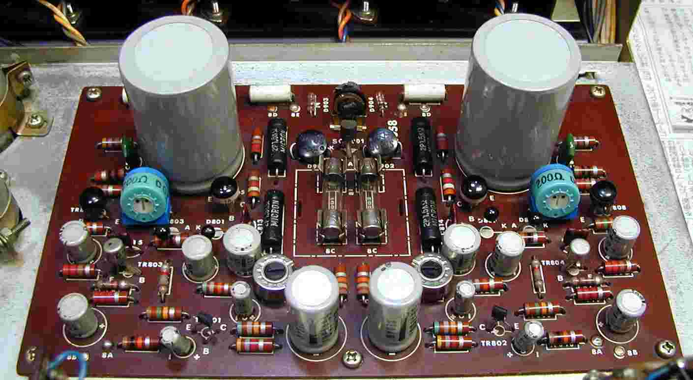 音を出さないで、ボリュームをあげるとノイズが出ます。 アンプが熱くなります。 B. 原因 メインAMPのTR(トランジスター)劣化 フラットAMP、イコライザーAMPのTR(トランジスター)の劣化 C. 修理状況 終段TR(トランジスタ−)4個交換 メインAMPのTR(トランジスター)4個交換 フラットAMPのTR(トランジスター)10個交換、 イコライザーAMPのTR(トランジスター)4個交換 配線手直し、補強 経年劣化による各部ハンダ補正 D. 使用部品 バランス、バイアス調整用 半固定VR 4個 フラットAMP、イコライザーAMP TR(トランジスター) 18個 コンデンサー 4個 終段TR(トランジスター)4個 E. 修理費 15400円 通常修理 S. Sansui AU−555 の仕様(マニアル・カタログより) |