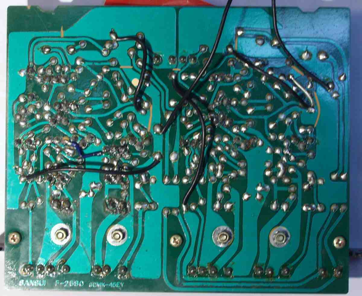 | C4B. 修理(半田補正)後 コントロール(低音+高音)基盤裏 不良半田やり直す | ||||||||||||||||||||||||||||||||||||||||||