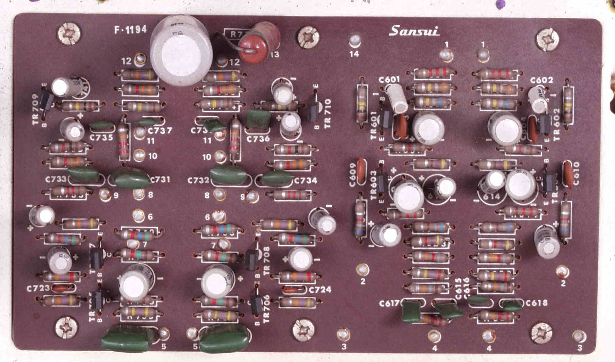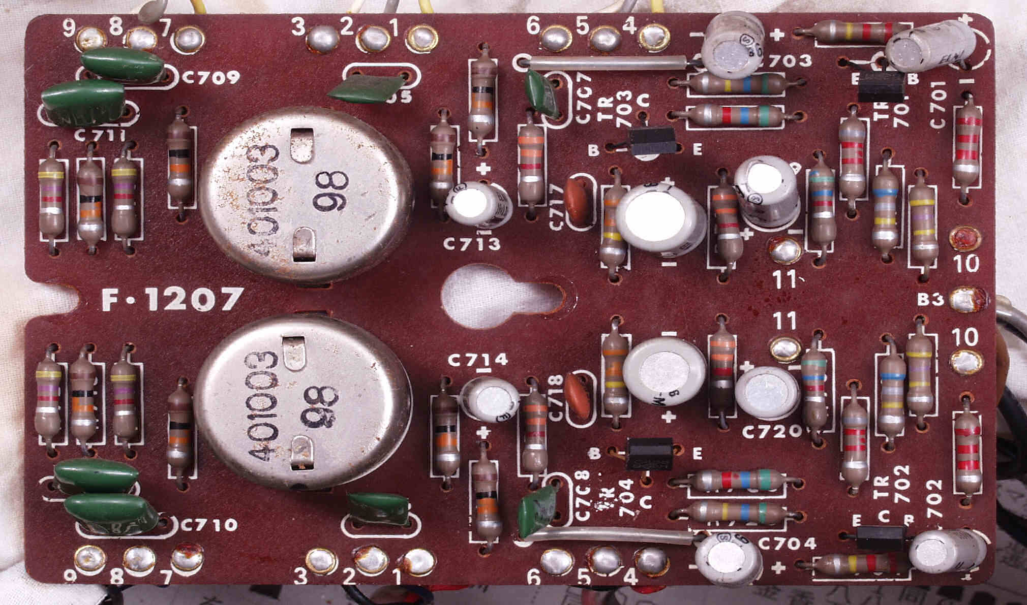 | C−8B. 修理後 EQ基板 電解コンデンサー21個 フイルムコンデンサー4個 TR(トランジスター)10個交換 | ||||||||||||||||||||||||||||||||||||||||||||||||||||||||||